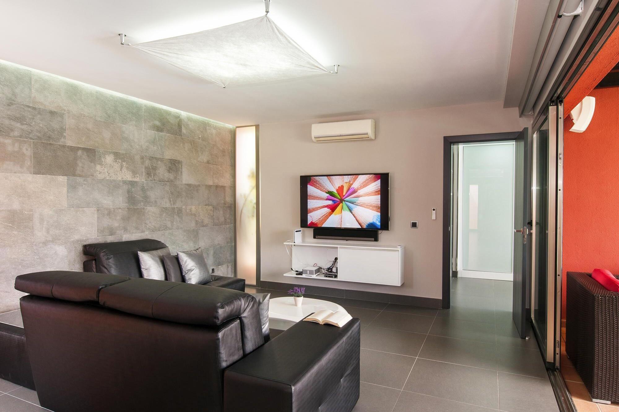 Wohnzimmer(TV(Satellit), DVD-Spieler, Stereoanlage), offene Küche(Esstisch, Toaster, Kochherd, Kaffeemaschine, Backofen, Spülmaschine, Kühlschrank), Schlafzimmer(Doppelbett), Schlafzimmer(Einzelbett, Einzelbett), Badezimmer(Dusche, Toilette, Bidet, Föhn), Badezimmer(Dusche, Toilette, Föhn), Trockner, Dusche(im Garten), Waschmaschine, Klimaanlage, Terrasse(überdacht), Gartenmöbel, Liegen, Grill, Parkplatz, Pool(alleinige Nutzung, im Garten, beheizbar), Hochstuhl, Babybett (kostenlos)