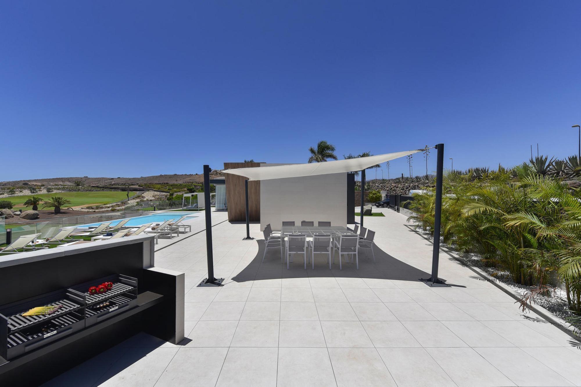 Atemberaubende Villa mit Außenpool und Sonnenliegen, sechs Schlafzimmern, einem großen Privatgarten und einem Freizeitbereich im Untergeschoss. Die Unterkunft bietet genügend Platz für bis zu 12 Personen und lädt zum Entspannen ein. Genießen Sie die exklusive Lage und lassen Sie sich zum Beispiel mit dem Brötchenservice verwöhnen. Der Wohnkomplex mit mehreren Villen ist in die Berglandschaft von Maspalomas eingebettet. Für den täglichen Bedarf können Sie sich im nahen kleinen Supermarkt versorgen. Die Touristenzentren Maspalomas und Playa del Inglés erreichen Sie mit dem Auto in knapp 10 Minuten. Highlights : WLAN Bettwäsche, Handtücher, Endreinigung 15% Greenfee-Ermäßigung Begrüßungspaket Aktivitäten in der Nähe : Golf (gegen Gebühr): Die Golfplätze Süd und Nord mit jeweils 18 Löcher sind ein Golferparadies. Gäste der Villen erhalten eine Greenfee-Ermäßigung. Die Insel bietet neben herrlichen Stränden und alten Pinienwäldern auch wüstenartige Landschaften und Bergkrater. Nicht geeignet für Personen mit eingeschränkter Mobilität WICHTIGER HINWEIS: Bis Juni 2022 montags bis freitags 8-17 leichte Lärmbelästigungen durch an- und abfahrende Lastwagen vom Nachbargrundstück