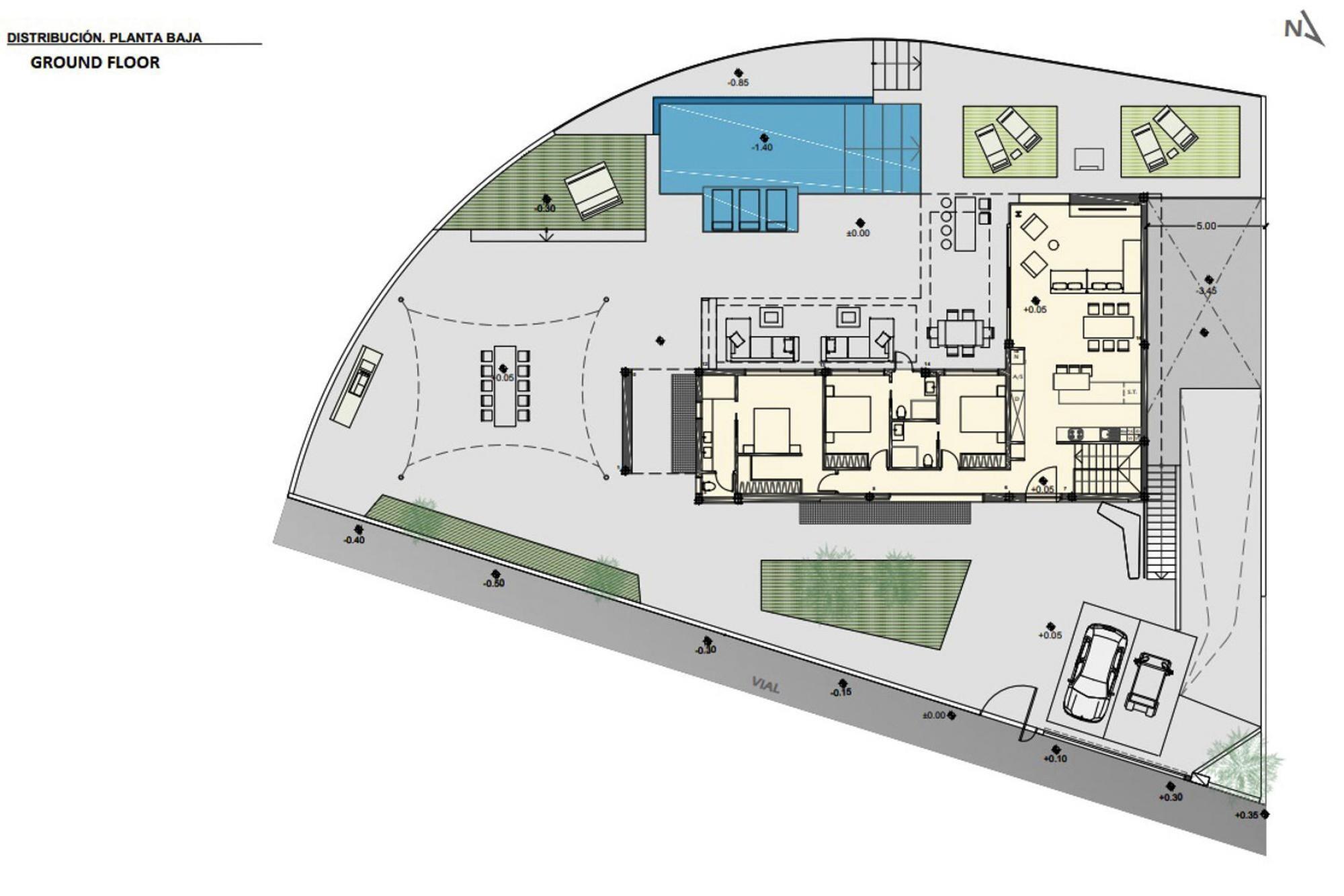 Parterre: (offene Küche(Esstisch, Toaster, Kochherd, Kaffeemaschine, Backofen, Mikrowelle, Spülmaschine, Kühlschrank, Tiefkühlschrank), Wohn/Esszimmer(TV, Stereoanlage), Schlafzimmer mit Badezimmer(Doppelbett, Dusche, Toilette, Föhn), Schlafzimmer mit Badezimmer(Doppelbett, Dusche, Toilette, Föhn), Schlafzimmer mit Badezimmer(Einzelbett, Einzelbett, Dusche, Toilette, Föhn)) Souterrain: (Schlafzimmer mit Badezimmer(Einzelbett, Einzelbett, Dusche, Toilette, Föhn)) Carport, Trockner, Waschmaschine, Heizung, Klimaanlage, Terrasse(überdacht), Gartenmöbel, Liegen, Grill, Sonnenschirm, Pool(alleinige Nutzung, im Garten, beheizbar), Hochstuhl, Babybett (kostenlos)