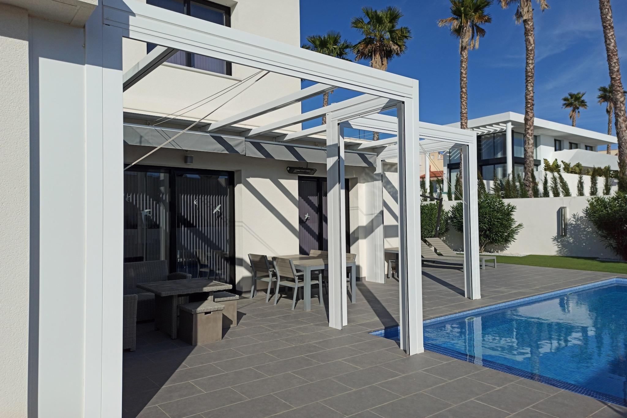 Entspanntes, modernes Wohnen Diese moderne Villa in La Marina vereint Komfort und Stil mit privatem Pool, sonniger Terrasse und durchdachtem Interieur. Das geräumige Wohnzimmer verfügt über einen Weinkühler für entspannte Abende, während die voll ausgestattete Küche das Kochen zum Vergnügen macht. Die Schlafzimmer sind hell, zwei davon im Obergeschoss bieten private Terrassen und individuell regulierbare Klimaanlage. Im Außenbereich laden die Liegen am Pool und der schattige Sitzbereich zum Entspannen ein. Costa Blanca entdecken Eingebettet in eine ruhige Gegend und dennoch in der Nähe von San Fulgencio (1,5 km) bietet die Villa eine ausgewogene Mischung aus Ruhe und dennoch guter Anbindung an lebhafte Orte. Die Sandstrände der Costa Blanca sind nur 5 km entfernt und ideal zum Schwimmen und für lange Spaziergänge am Meer. Für Tagesausflüge sind Elche mit seinen Palmenhainen, die historische Altstadt von Alicante und der Küstencharme von Torrevieja leicht erreichbar. Golfbegeisterte können den 18-Loch-Golfplatz La Marquesa in Rojales, nur 11 km entfernt, genießen. Lokale Spezialitäten in der Nähe Das Zentrum von San Fulgencio bietet eine Vielzahl von Restaurants und Cafés, in denen Sie authentische spanische Küche probieren oder einen entspannten Abend verbringen können. Entlang der Küste reicht das gastronomische Angebot von Tapas-Bars bis hin zu Restaurants mit frischem Fisch und Meeresfrüchten mit Blick auf das Mittelmeer. Ob Sie einen schnellen Happen, eine traditionelle Paella oder ein gemütliches Abendessen unter dem Sternenhimmel suchen – dank der Lage der Villa sind Sie immer in der Nähe exzellenter Restaurants.