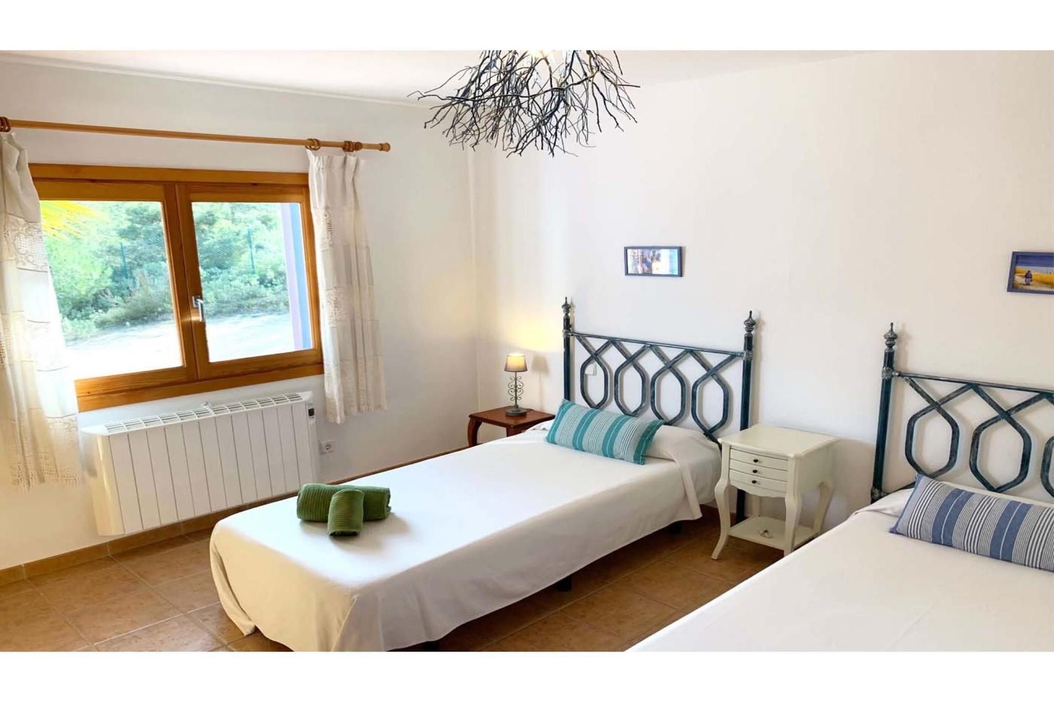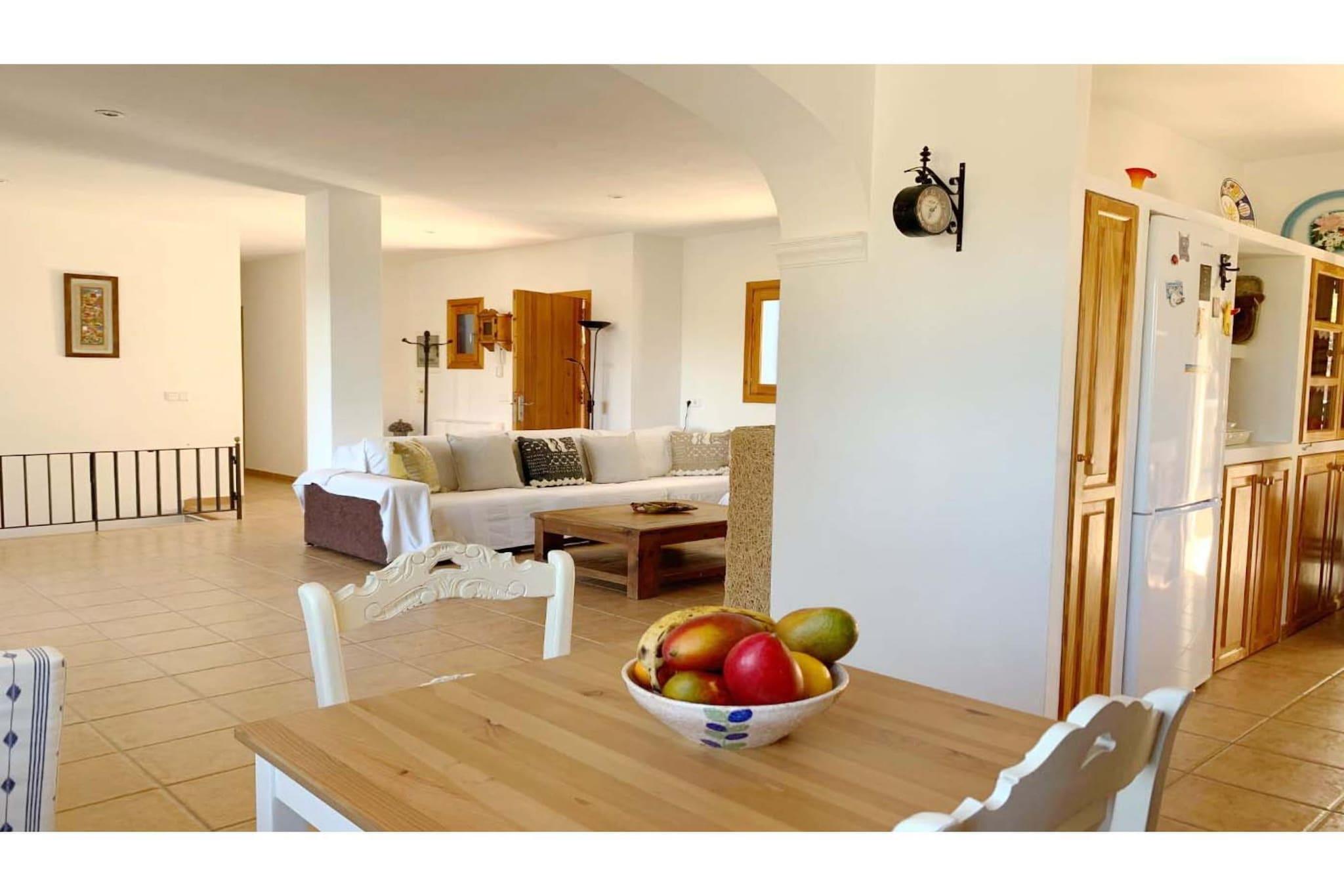 Charmantes Landhaus mit 130 m² Wohnfläche auf einem 13.000 m² großen Grundstück. Das Haus im minimalistischen Ibiza-Stil besticht durch seine helle und luftige Atmosphäre mit großzügigen Terrassen und fügt sich harmonisch in die umgebende Natur ein. Genießen Sie Frühstück, Mittag- oder Abendessen auf der typisch ibizenkischen Veranda mit Blick auf den Wald, den Pool und das Meer in der Ferne. Der große Grillplatz, umgeben von einem Pinienwald, bietet Ruhe und Privatsphäre und ist somit ein idealer Ort zum Entspannen. Die Lage ist privilegiert: In unmittelbarer Nähe befinden sich die schönsten Strände im Südwesten der Insel, Cala Tarida und Cala Conta, die für ihre traumhaften Sonnenuntergänge bekannt sind. Im nahegelegenen Ort San José finden Sie alles, was Sie brauchen: Supermärkte, Banken, Apotheken, Cafés, Fischhändler, Metzger, Bäckereien sowie eine große Auswahl an Bars und Restaurants. Das Restaurant S'Espartar, eines der traditionsreichsten mediterranen Restaurants in San José, erreichen Sie nach nur 3 Gehminuten. Das Haus bietet Platz für 6 Personen und verfügt über 3 Doppelzimmer: ein Zimmer mit einem Doppelbett (1,35 m), ein Zimmer mit 2 Einzelbetten (je 1,10 m) und ein drittes Zimmer mit Betten (90 cm). Es gibt zwei große Badezimmer, eines davon mit Badewanne, sowie eine Außentoilette in der Nähe des Grillplatzes. Vom Wohnzimmer aus gelangen Sie auf die Veranda, wo Sie frühstücken, zu Mittag oder zu Abend essen können, sowie zum Pool und Grillplatz. Im Außenbereich befinden sich ein Swimmingpool, Terrassen, ein Grill, eine Außentoilette und eine Waschküche. Alle Zimmer sind klimatisiert, WLAN ist vorhanden, ebenso wie eine voll ausgestattete Küche, Bettwäsche, Bade- und Poolhandtücher. Hinweis: Haustiere sind nur auf Anfrage erlaubt. Bitte kontaktieren Sie den Eigentümer im Voraus bezüglich Verfügbarkeit, maximaler Anzahl an Haustieren und der anfallenden Gebühr, die je nach Art und Größe des/der Tiere(s) variieren kann.