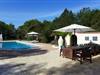 Parterre: (Eingang(Herd(Holz), Toilette), Wohnzimmer(TV(Satellit), Kaminofen, Stereoanlage, Klimaanlage), Esszimmer(Esstisch, Terrasse), Küche(Kochherd(4 Kochplatten, Gas), Kaffeemaschine, Backofen, Mikrowelle, Spülmaschine, Kühl-/Gefrierkombination), Schlafzimmer(Doppelbett, Klimaanlage), Schlafzimmer(Doppelbett, Klimaanlage), Schlafzimmer mit Badezimmer(Doppelbett, Dusche, Toilette, Klimaanlage, Terrasse), Badezimmer(Dusche, Waschbecken, Toilette), Badezimmer(Dusche, Waschbecken, Toilette), Waschraum(Waschmaschine)) Terrasse, Garten, Liegestühle, Sonnenschirm, Pool(alleinige Nutzung, 12 x 6 m.)