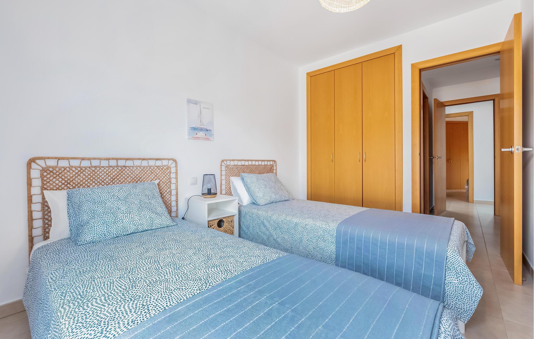 Die einladende Wohnung empfängt Sie in schöner Lage nur wenige Schritte vom Strand entfernt. Sie ist der ideale Ort für eine wohltuende Auszeit, in der Sie sowohl an Strand und Pool entspannen als auch die Umgebung erkunden können. Nutzen Sie die wohnlich eingerichteten Räume als Basis für einen unvergessliche gemeinsame Zeit, abends lädt das bequeme Sofa zum gemeinsamen Entspannen ein.