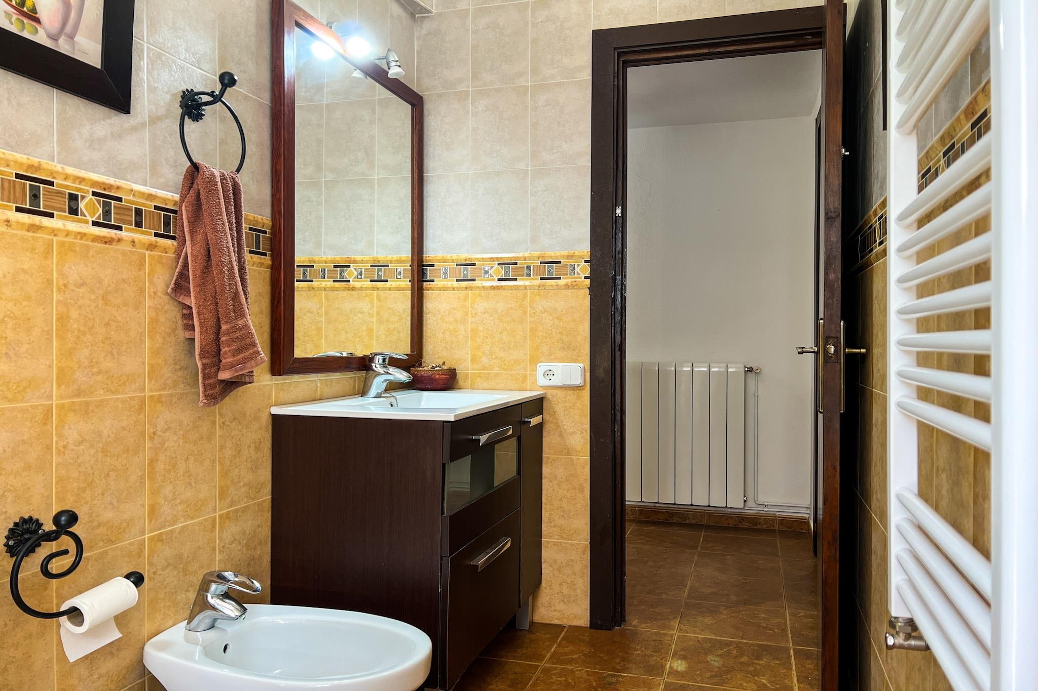 Dieses charmante, einstöckige Haus für bis zu 10 Gäste liegt in einer ruhigen Wohngegend von Sant Cebrià de Vallalta, umgeben von Natur und ideal für einen entspannten Urlaub. Freuen Sie sich auf einen privaten Pool mit Sonnenliegen, einen gepflegten Garten, eine möblierte Terrasse und einen Grillplatz (gemäß den örtlichen Brandschutzbestimmungen). Kostenloses WLAN ist verfügbar, und Haustiere bis 10 kg sind willkommen. Das Haus verfügt über ein Wohn-Esszimmer, eine voll ausgestattete Küche und vier Schlafzimmer: drei mit Doppelbetten (eines mit zusätzlichem Etagenbett) und eines mit zwei Einzelbetten – ideal für Familien oder Gruppen. Das Haus bietet einen ruhigen Blick auf die Berge und ist nur eine kurze Autofahrt vom Strand entfernt. Bettwäsche, Handtücher, Internetzugang und Endreinigung sind im Preis inbegriffen. Für die Buchung ist ein Mindestalter von 25 Jahren erforderlich. Der Check-in erfolgt von 16:00 bis 19:00 Uhr im Büro von Lloret de Mar oder gegen Aufpreis direkt im Haus. Eine spätere Anreise ist gegen Aufpreis möglich. Es fällt eine Kurtaxe von 1 EURO pro Person ab 16 Jahren (max. 7 Nächte) an. Gäste müssen das Haus ordentlich hinterlassen. Zusätzliche Reinigungs- oder Schlüsselersatzgebühren können anfallen. Partys, Rauchen und Lärm nach 22:00 Uhr sind nicht gestattet.