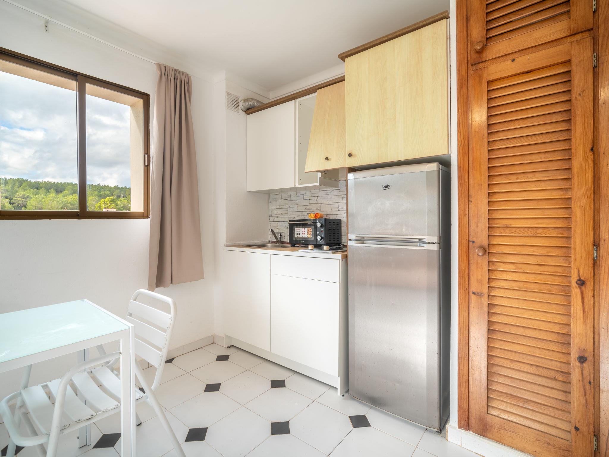 "Es Grop", 3-Zimmer-Wohnung 70 m2. Objekt geeignet für 4 Erwachsene. Einfach eingerichtet: Wohn-/Esszimmer mit 1 Bett (90 cm, Länge 190 cm), Klimaanlage und Warmluftheizung. Ausgang zum Balkon. 1 Zimmer mit 1 Bett (90 cm, Länge 190 cm), 1 franz. Bett (1 x 135 cm, Länge 190 cm), Sat-TV. 1 kleines Zimmer mit 1 Bett (90 cm, Länge 190 cm). Wohnküche (Mini-Backofen, Backofen, 2 Glaskeramikplatten, Toaster, Mikrowelle, elektrische Kaffeemaschine). Bad/WC. Natursteinboden. Terrassenmöbel. Keine Sicht. Zur Verfügung: Babybett bis 2 Jahre, Haartrockner. Internet (WLAN, gratis). Parkplatz (eingezäunt, 10 Autos). Geeignet für Familien. AT/02033-APM