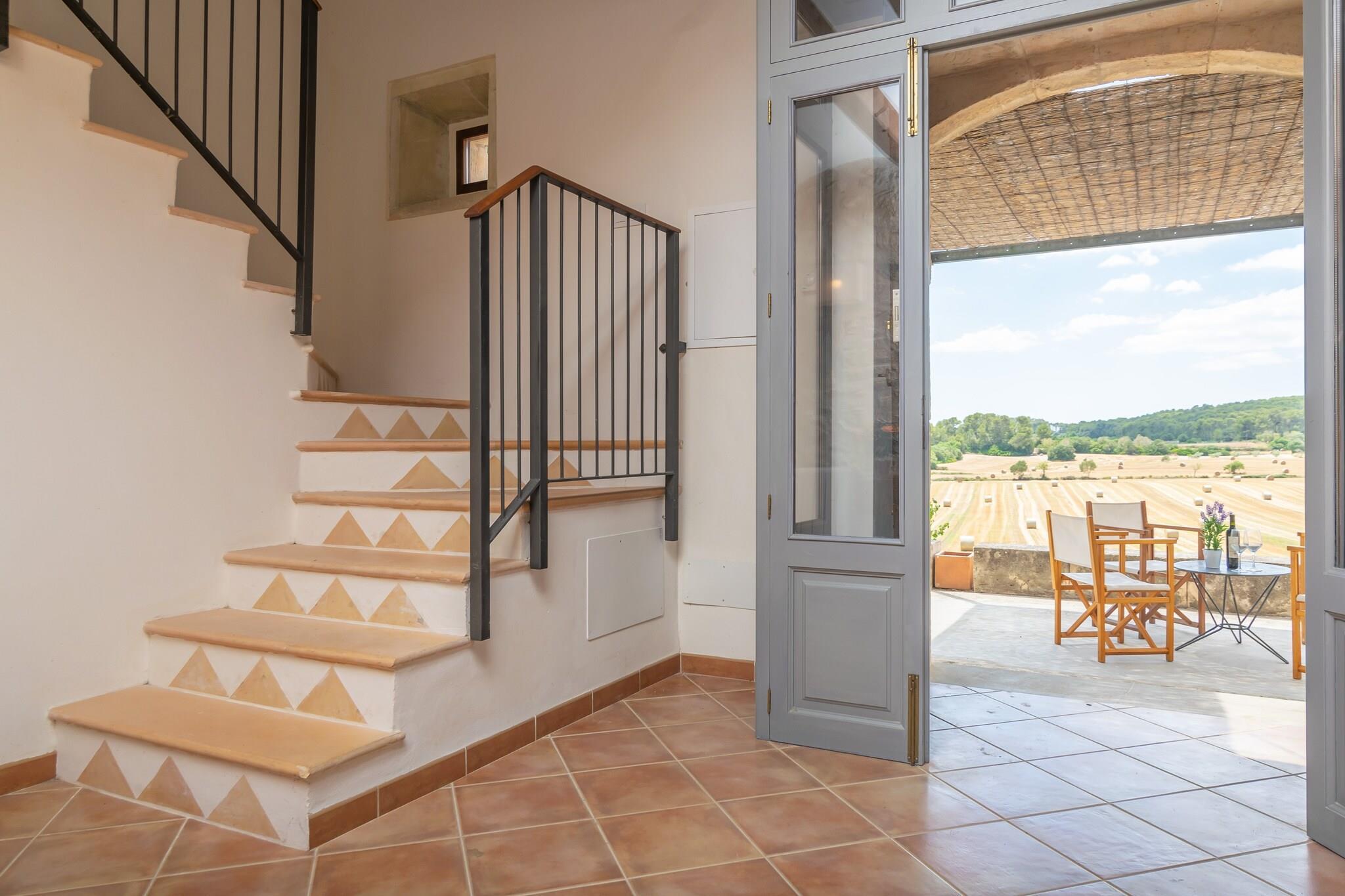 Nach einem Tag voller Ausflüge rund um die Insel können Sie sich im fantastischen Salzwasserpool von 10 x 3 Metern und einer Tiefe zwischen 1,20 und 1,60 Metern abkühlen. Sonnen Sie sich auf einer der Liegen rund um den Pool und verbringen Sie gemeinsame Zeit auf den verschiedenen Terrassen. Ein leckeres Barbecue oder einen Drink zum Sonnenuntergang gönnen Sie sich auf der Veranda oder im Grillbereich hinter dem Pool. Das Grundstück ist eingezäunt und es gibt keine direkten Nachbarn. Das 2-stöckige Haus bewahrt den traditionellen Charakter, wurde mit exquisitem Geschmack eingerichtet und mit allem ausgestattet, was Sie für einen perfekten Aufenthalt benötigen. Im Erdgeschoss finden Sie das Wohnzimmer mit Klimaanlage und Sat-TV, das schöne Esszimmer, die separate Küche mit Gasherd, ein Badezimmer mit Dusche und ein Schlafzimmer mit zwei Einzelbetten. Auf der ersten Etage befinden sich die anderen 4 Schlafzimmer, alle sind mit Klimaanlage ausgestattet, 3 der Zimmer haben je zwei Einzelbetten. Eines der Zimmer hat ein ausziehbares Bett und eines der Zimmer hat ein eigenes Bad (en Suite) mit Dusche. Auf dieser Etage befindet sich ein weiteres Badezimmer mit Dusche für alle Gäste. Das Haus ist für die Wintermonate mit einer Ölzentralheizung ausgestattet. Auf Anfrage, können wir ein Kinderbett und Hochstuhl bereitstellen, wenn Sie mit Ihrem Baby reisen. Es gibt eine Waschmaschine, Bügeleisen und Bügelbrett. Das Haus liegt inmitten der Felder am Ortsrand von Sant Joan. Im Dorf finden Sie die grundlegenden Dienstleistungen für einen unabhängigen Aufenthalt. Die zentrale Lage, in der Inselmitte, ermöglicht einen schnellen Zugang zu den verschiedenen Ecken der Insel. Der nächste Strand ist Playa de Muro etwa 24 km entfernt, ein feiner Sandstrand mit türkisfarbenem Wasser und einige Kilometer lang. Der Kamin im Esszimmer ist nur dekorativ und kann nicht benutzt werden. Eventuelle Nebenkosten müssen beim Anbieter nachgefragt werden. Haustiere sind verboten. Partys oder ähnliche Veranstaltungen sind nicht gestattet. Es gibt Freiluftparkplätze für 4 Autos. Entfernungen Strand: 24 km - Playa de Muro Flughafen: 38.9 km - Son Sant Joan Golfplatz: 28.2 km - Golf park Mallorca Puntiró Ortsmitte: 3.6 km - Sant Joan Bahnhof: 6.1 km - Petra Bushaltestelle: 3.4 km - Sant Joan Fähre: 50 km - Palma Krankenhaus: 19.1 km - Hospital de Manacor Touristen Lizenz: ETV/8574Einheitsregister: ESFCTU00000702900030356300000000000000000000ETV/85748Auf den Balearen gibt es eine Touristensteuer, die Ecotasa genannt wird. Diese Steuer muss vom Gast bezahlt werden. Der zu zahlende Betrag beträgt zwischen 0.55EURO pro Nacht und Gast in der Nebensaison und 2.2EURO pro Nacht und Gast in der Hochsaison. Ab dem 9. Tag reduziert sich die Steuer um die Hälfte. Personen unter 16 Jahren sind davon ausgenommen Heizung (November - April): 12 EUR/Nacht (optional)