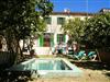 Es hat einen Außenbereich mit Garten und Schwimmbad, in der Ruhe zum Sonnenbaden und wo Kinder spielen und schwimmen im Pool können.