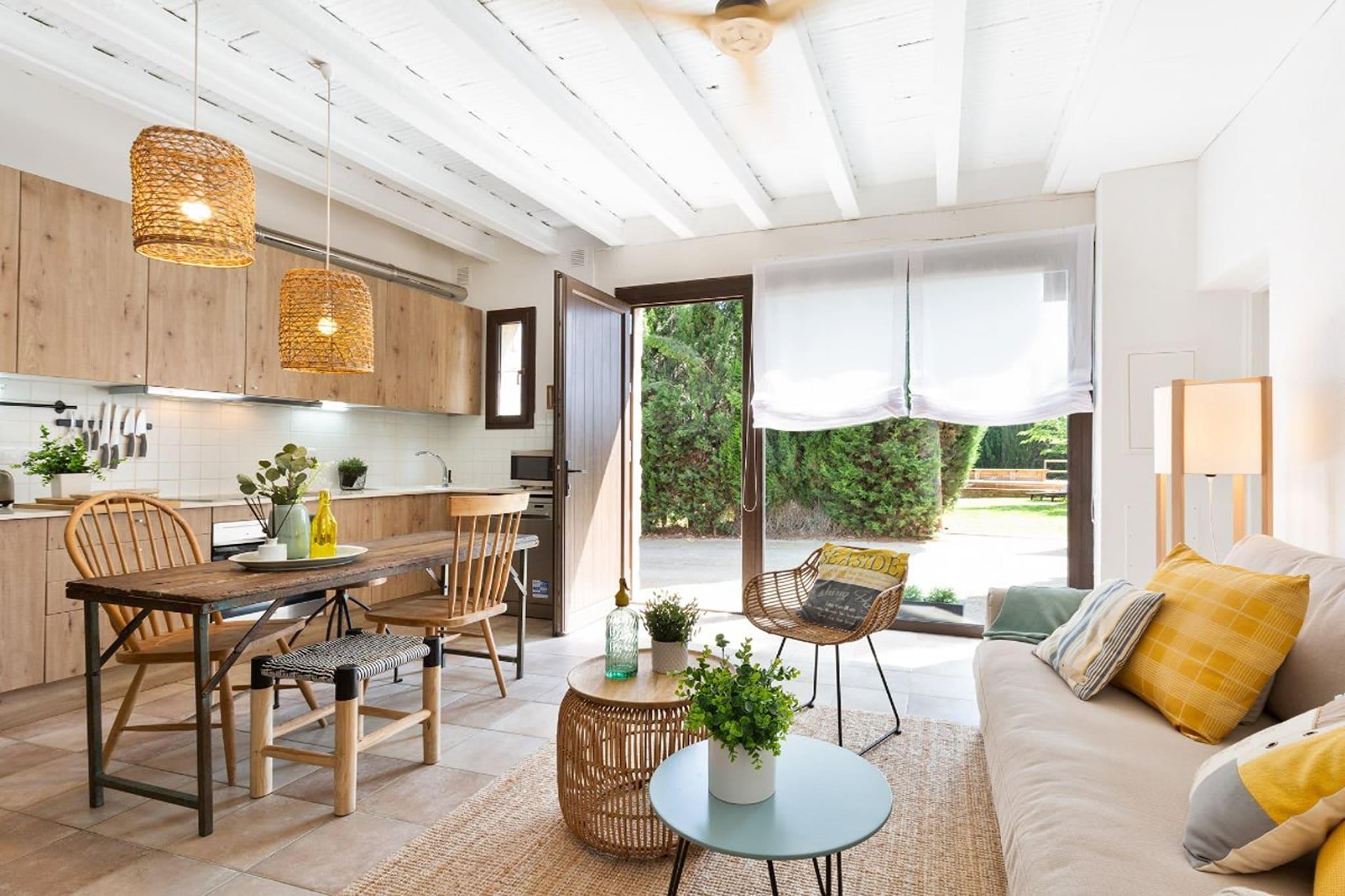 Willkommen in dieser exquisiten Villa in Sant Mori, wo Eleganz und Komfort in einem geräumigen und einladenden Ambiente aufeinandertreffen. Das Herzstück des Hauses ist das großzügige Wohnzimmer, das nahtlos in eine voll ausgestattete Küche übergeht. Hier finden Sie alle Annehmlichkeiten für einen angenehmen und stressfreien Aufenthalt, darunter eine umfassende Auswahl an Küchenutensilien, Tellern, Gläsern, Besteck, Handtüchern sowie Waschmaschine, Trockner und Bügeleisen. Nur eine kurze Autofahrt von Sant Mori entfernt liegt Figueres, bekannt als Geburtsort von Salvador Dalí und Heimat des Dalí Theater-Museums. Dieses surrealistische Museum beherbergt eine umfangreiche Sammlung von Werken des Künstlers und ist ein Muss für Kunstliebhaber. Die Villa verfügt über zwei großzügige und lichtdurchflutete Schlafzimmer, die alle auf Ihren Komfort ausgelegt sind. Das Hauptschlafzimmer verfügt über ein bequemes Doppelbett, während das zweite Zimmer über vielseitige Einzelbetten verfügt, die je nach Bedarf zusammengestellt werden können und so für einen Hauch von Eleganz und Helligkeit sorgen. „Foscurit“-Vorhänge bieten zudem die Möglichkeit, Privatsphäre zu schaffen. Die Klimaanlage sorgt in der gesamten Villa für ein kühles, angenehmes Raumklima, ergänzt durch leise Deckenventilatoren in jedem Zimmer. Draußen erwartet Sie ein wunderschön angelegter Garten und ein glitzernder Pool – der perfekte Ort zum Entspannen und Erholen. Diese Villa vereint moderne Annehmlichkeiten mit luxuriösen Akzenten und ist somit eine hervorragende Wahl für einen unvergesslichen Aufenthalt in Sant Mori.