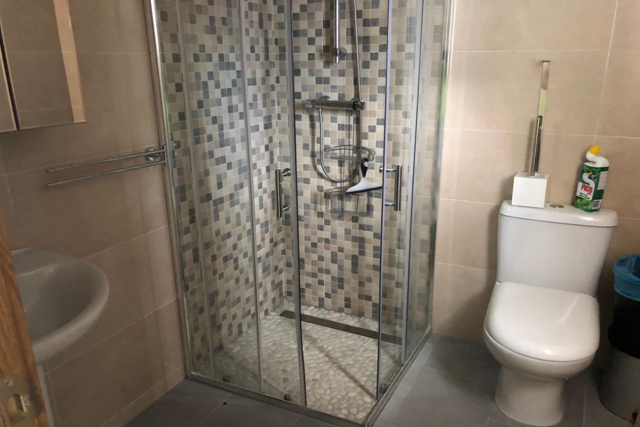 73 m2 (72,89 m2 Fläche, 1 im Freien abgedeckt durch Leinwand) 2 Zimmer: 1 Zimmer mit einem großen Bett für 2 Personen, 1 Zimmer mit 2 Etagenbetten Küche mit Gas, Mikrowelle, Kaffeemaschine, alles notwendigen Utensilien Bad mit sehr neu WC-Klimaanlage mit Diffusor im Hauptraum 10mX6m Pool (Tiefe 1, 60 m), geteilt mit unserem Haus Essbereich im Freien Open-Air-Grill privater Eingang gemeinsamer Parkplatz 1 Auto