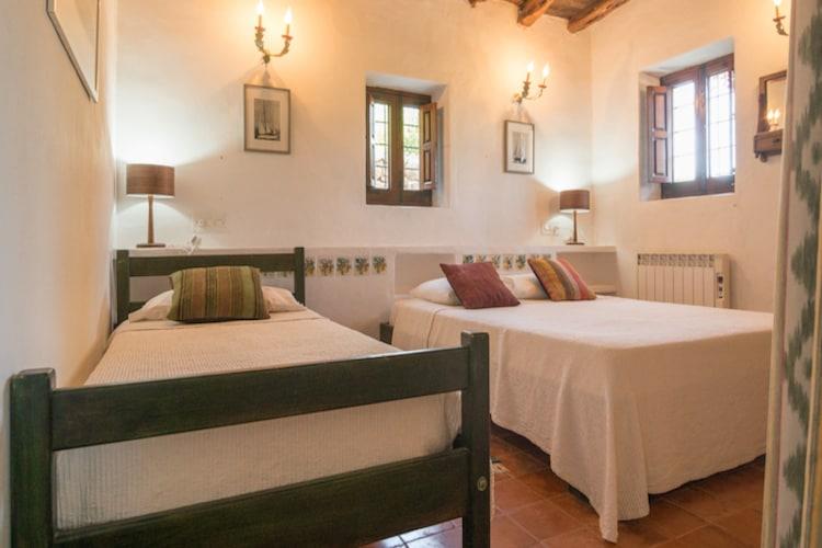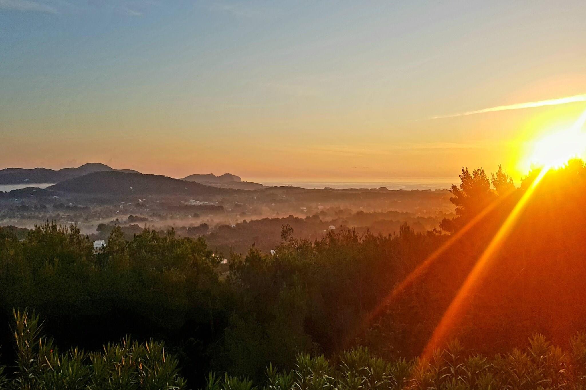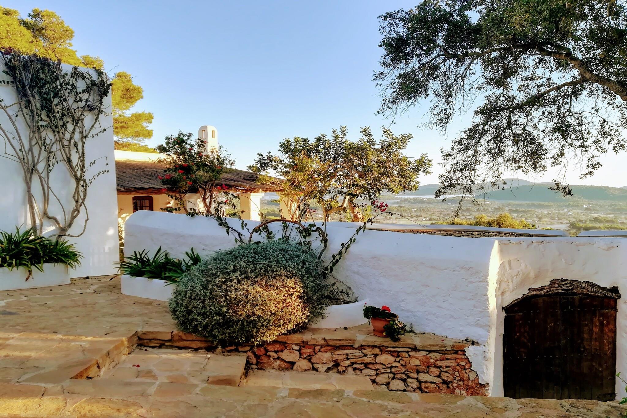 In diesem eleganten Landhaus auf Ibiza können Sie mit bis zu 18 Personen Ihren Urlaub verbringen. Das Haus wurde mit einem Gefühl für Authentizität restauriert und liegt oben auf einem Hügel. Von den verschiedenen Terrassen aus haben Sie einen Panoramablick über das Mittelmeer. Neben der Hauptwohnung liegt ein Gästehaus für sechs Personen, von dem aus Sie vom Wohnzimmer mit Schiebetüren aus auch Meerblick haben. Es ist ein ruhiges Fleckchen und daher ein idealer Ort für Yoga-Retreats, aber natürlich auch um mit der Familie und mit Freunden das ultimative Ibiza-Gefühl zu genießen. Die Terrasse hinter dem Haupthaus bietet mehrere Sitzecken auf einer Art Patio neben einem traditionellen Brotofen und eine sehr große Sonnenterrasse mit einem Picknicktisch mit einigen eleganten Liegen mit dicken Kissen rund um den speziell geformten Pool von 14 x 5 m mit römischen Stufen und Sitzmöglichkeit im Wasser. Draußen gibt es verschiedene Orte, an denen man Yoga machen kann und es gibt auch einen überdachten Yogaraum. Der lebendige Badeort Santa Eulalia und seine umliegenden Strände sind 5 Autominuten und Ibiza-Stadt etwa 20 Minuten entfernt.