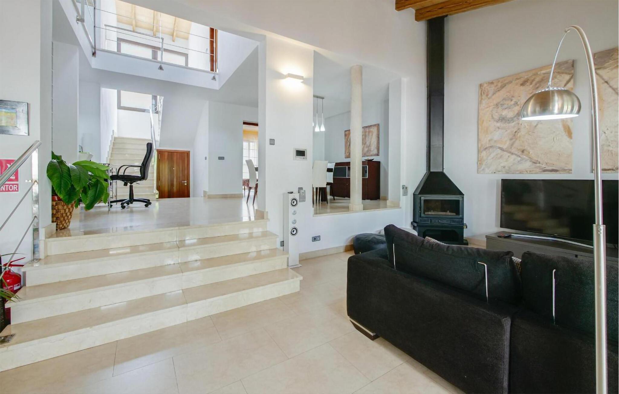 Das Haus empfängt seine Gäste im Inneren der Insel und bietet Ihnen einen großzügigen und komfortablen Rahmen für den Urlaub. Helle Räume und die moderne Einrichtung verleihen dem Haus eine angenehme Atmosphäre und machen es zum idealen Ort für eine entspannte Auszeit. Genießen Sie gemütliche Abende auf einladenden Sofas und plaudern Sie beim Knistern der Flammen im Kaminofen.