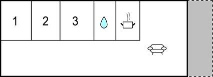 - Sek. zum nächsten Wasser/Bad 5 m