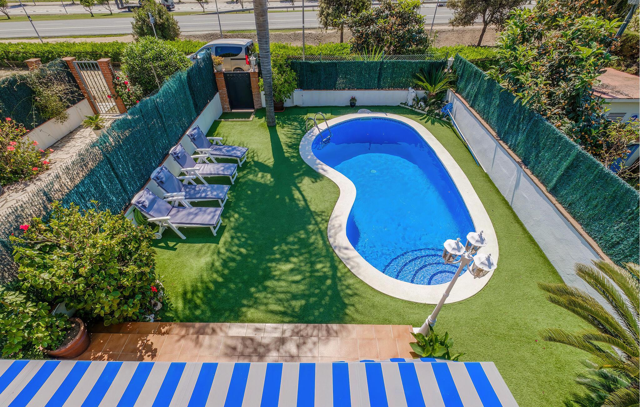 Dieses charmante und gemütliche Ferienhaus liegt weniger als 1 km vom Strand von Santa Susanna, mit seiner schönen Promenade und zahlreichen Restaurants, Cafés, Geschäften und Souvenirs entfernt. Das Haus verfügt über einen schönen Garten mit privatem Pool, wo Sie sich an heißen Sommertagen erfrischen oder ein köstliches Barbecue genießen können. Mit einem Kamin im Wohnzimmer und der Ausstattung mit einer Zentralheizung können Sie hier auch kühlere Tage gemütlich verbringen. Außerdem steht Ihnen eine private Garage mit direktem Zugang zum Haus zur Verfügung. Einige Meter hinter dem Garten verläuft die Nationalstraße.