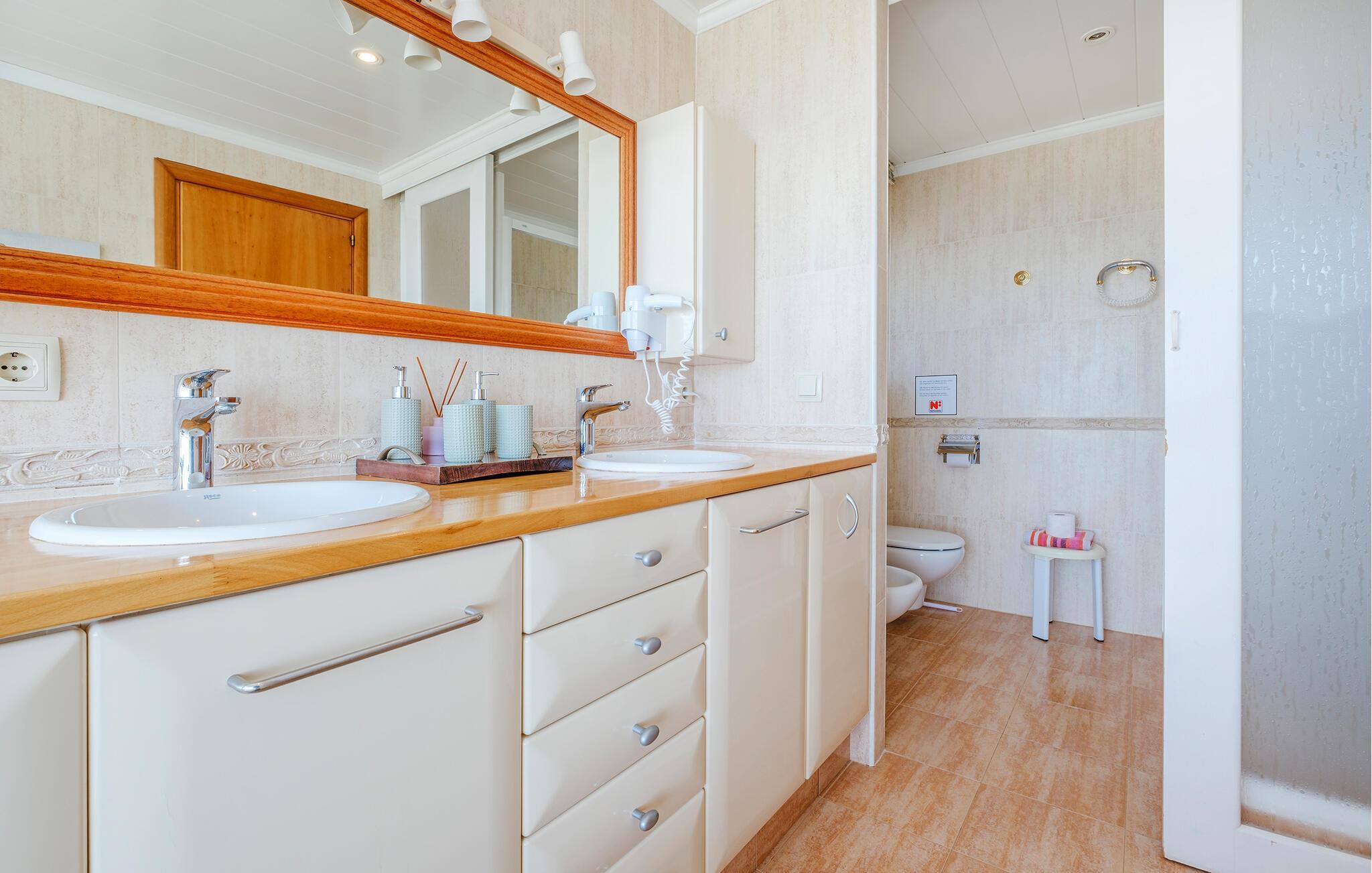 Die Einrichtung ist sehr modern mit hochwertiger Möblierung. Auch die Küche ist voll ausgestattet und lässt keine Wünsche offen. Das geräumige Wohnzimmer verfügt über einen modernen Kamin für die kälteren Jahreszeiten. Die Terrasse hat Zugang zum Garten mit Grill und Pool.
