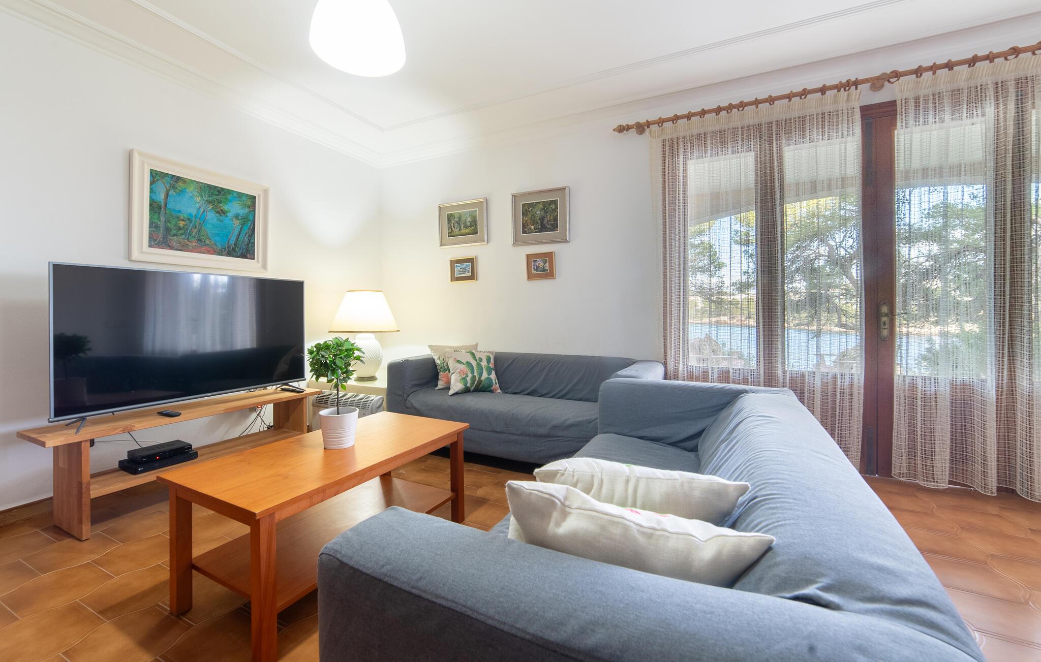 Sie bewohnen das Erdgeschoss der zweistöckigen Villa in erster Meereslinie. Hier erwartet Sie mit fünf großzügigen Doppelschlafzimmern Platz für bis zu 10 Gäste. Zwei der Schlafbereiche verfügen über ein eigenes Bad en suite; hinzu kommen zwei weitere Bäder. Große Fenster lassen reichlich natürliches Licht in die gemütlichen Räumlichkeiten. Freuen Sie sich auf einen entspannten Urlaub mit der Familie oder mit Freunden in dieser exklusiven Lage auf Mallorca.