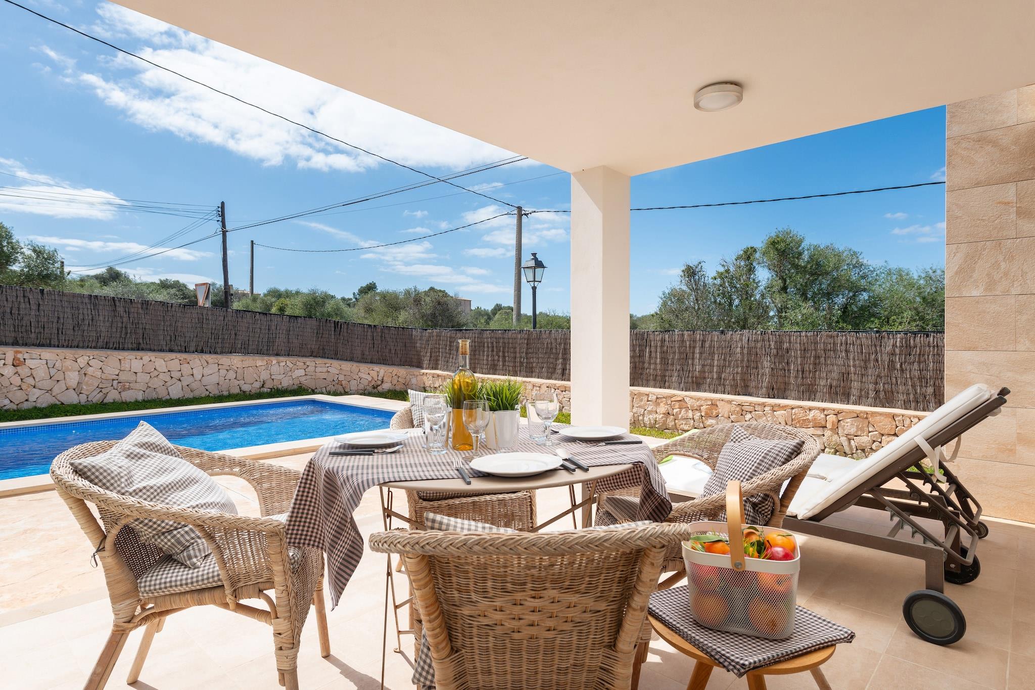 Nach einem schönen Tag am Strand, können Sie sich im großen Chlorwasserpool mit einer Größe von 6 x 4 Metern und einer Tiefe zwischen 1 und 1,50 Metern abkühlen. Die möblierte Veranda wird Ihr Lieblingsplatz zum Mittag- und Abendessen im Freien sein. Einfach perfekt um abends einen Drink zu genießen. Das Grundstück ist eingezäunt und es gibt Nachbarn in der Nähe. Das moderne zweistöckige Haus bietet alles, was Sie für einen komfortablen Aufenthalt benötigen. Vom Pool aus haben Sie Zugang zu einem großen Raum, der das Wohnzimmer, das Esszimmer und die Küche vereint und mit Klimaanlage, TV, Esstisch und Cerankochfeld ausgestattet ist. Auf dieser Etage befindet sich auch ein Badezimmer mit Dusche. Im ersten Stock haben wir die beiden Schlafzimmer mit Klimaanlage, ein Doppelbett und Zugang zur Terrasse. Ein Badezimmer mit Dusche vervollständigt diese Etage. Im Haus finden Sie auch eine Waschmaschine, Trockner, Bügeleisen und Bügelbrett. Schließlich können wir Ihnen ein Kinderbett und einen Hochstuhl auf Anfrage zur Verfügung stellen, falls Sie mit Ihrem Baby reisen. Die Unterkunft befindet sich in der ruhigen Gegend von Cala Llombards, nur einen kurzen Spaziergang vom schönen Strand mit goldenem Sand und türkisfarbenem Wasser entfernt. Hier finden Sie ein Lebensmittelgeschäft und eine Bar, aber für weitere Dienstleistungen können Sie in die nahe gelegene Stadt Santanyí gehen. Die Gegend ist voller schöner Buchten wie Cala Santanyí oder Cala Mondragó. Eventuelle Nebenkosten müssen beim Anbieter nachgefragt werden. Haustiere sind verboten. Partys oder ähnliche Veranstaltungen sind nicht gestattet. Es gibt Freiluftparkplätze für 1 Autos. Entfernungen Strand: 0.750 km - Cala Llombards Flughafen: 56.3 km - Son Santt Joan Golfplatz: 20.7 km - Vall d'Or Ortsmitte: 1 km - Cala Llombards Bahnhof: 37.8 km - Manacor Bushaltestelle: 7.6 km - Cala Santanyí Fähre: 66.7 km - Palma de Mallorca Krankenhaus: 39.2 km - Hospital de Manacor Touristen Lizenz: ETV/9276Bei der Anreise muss die Ecotasa (Touristensteuer der Balearen) bar bezahlt werden. Der zu zahlende Betrag beträgt zwischen 0.55EURO pro Nacht und Gast in der Nebensaison und 2.2EURO pro Nacht und Gast in der Hochsaison. Ab dem 9. Tag reduziert sich die Steuer um die Hälfte. Personen unter 16 Jahren sind davon ausgenommen.Die Kaution ist bei Ankuuft direkt an den Eigentümer zu übergeben. Klimaanlage (Jan - Dezember): 15 EUR/Nacht (optional)