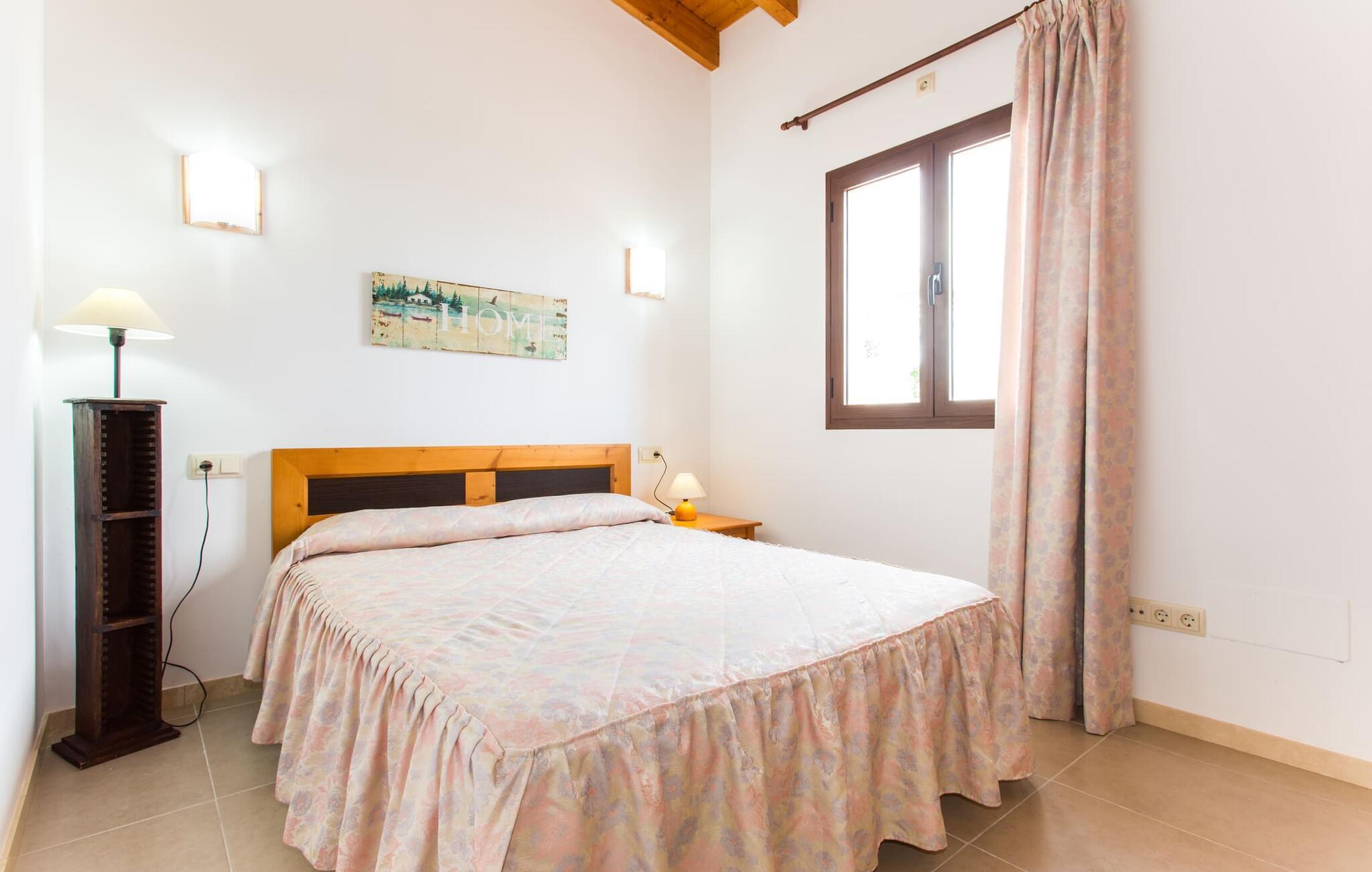 Bis auf das Turmzimmer liegen alle weiteren Räume der Villa im Erdgeschoss, das über mehrere bodentiefe Terrassentüren zugänglich ist. Dies gilt teilweise auch für Schlafzimmer, bei denen Sie morgens direkt in den Garten gelangen können. Die Ausstattung der Villa ist sehr neu und hat einen zeitlosen Geschmack. Weiße, glatte Wände mit großen Bodenfliesen in hellem Erdton werden durch in die Decken eingelassene Lichtpunkte ergänzt und sorgen für einen modernen Standard. Die sichtbare Balkendecke und die antiken Holzstühle sorgen für ein wenig mallorquinische Gemütlichkeit im Wohnzimmer, das mit einer orangefarbenen und einer schokoladenbraunen Couch ausgestattet ist. Perfekt für einen gemütlichen Fernsehabend oder einen geselligen Abend. Die separate Küche ist sehr stilvoll ausgestattet. Eine lange Küchenzeile mit wünschenswertem technischem Komfort und Vollausstattung, auf die Sie bei Ihrer Selbstversorgung im Urlaub nicht verzichten möchten, besticht durch Holzfronten, die durch hochwertigen Marmor ergänzt werden. Auch hier sind Deckenstrahler verbaut; Der Esstisch lässt sich ausziehen und bietet allen Gästen ausreichend Platz für gemeinsame Mahlzeiten. In den 4 Schlafzimmern gibt es entweder Doppelbetten oder separate Einzelbetten; die Nutzung bzw. Aufteilung kann von den Gästen nach Bedarf geändert werden. Ihre Urlaubskleidung findet in den Einbauschränken ausreichend Platz. Die beiden hochwertigen Badezimmer mit begehbarer Dusche sind äußerst modern. Die Duschen sind mit hochwertigem Stein gestaltet. Der dunkle Marmor der eingemauerten Duschbereiche bildet einen eleganten Kontrast zu dem hellen, hochglänzenden Naturstein, der an den anderen Wänden verlegt wurde. Ob Sie mit Freunden oder mit 2 Familien verreisen – die Villa bietet ausreichend Platz für alle Gäste und das zu einem äußerst moderaten Preis in herrlich ländlicher Lage und dennoch strand- und stadtnah.