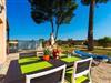 Die traditionelle, nach Süden ausgerichtete Villa „Saraix“ wurde 2014 komplett restauriert. Die sonnenverwöhnte Villa empfängt uns freundlich in einem zarten Terrakotta-Farbton auf einem von Pinien umgebenen Grundstück. Zwischen der Villa und dem Pool befindet sich eine Sonnenterrasse mit insgesamt 8 Sonnenliegen und 1 Sonnenschirm. Auf den Liegestühlen können Sie nach dem Schwimmen die warme Sonne des Südens genießen oder Ihren Kindern beim Spielen im Pool zusehen. Eine Holzbank und ein Polyrattantisch mit bequemen Stühlen und apfelgrünen Kissen bieten die Möglichkeit, gesellige Momente zu verbringen. Unter einer überdachten Terrasse an der Hausseite gibt es einen weiteren Außensitzplatz mit Holzmöbeln und den gleichen aufregenden grünen Kissen sowie eine weitere Holzbank im Schatten. Wenn Sie beide Ensembles zusammenstellen, können Sie einen unterhaltsamen Grillabend genießen, denn jede der beiden Terrassen verfügt über einen ummauerten Grill. Über eine Außentreppe gelangt man seitlich am Haus in die oberste Etage. Über der Dachterrasse gelangt man durch eine Art Turmzimmer, das als zusätzliches Wohnzimmer zum Chillen oder als Lesezimmer konzipiert ist und einen schönen Blick auf die ländliche Struktur der Umgebung und des Geländes freigibt. Ein besonderes Highlight ist für uns die Villa „Saraix“. Das zur Villa gehörende Grundstück ist eigentlich viel weitläufiger, so dass man lange Spaziergänge auf dem Gelände unternehmen kann. Schafe, Schweine und Hühner werden noch in einiger Entfernung zum Haus gehalten, die Villa „Saraix“ können sie natürlich nicht erreichen. Sie können die Ruhe und Weite der ländlichen Lage genießen.