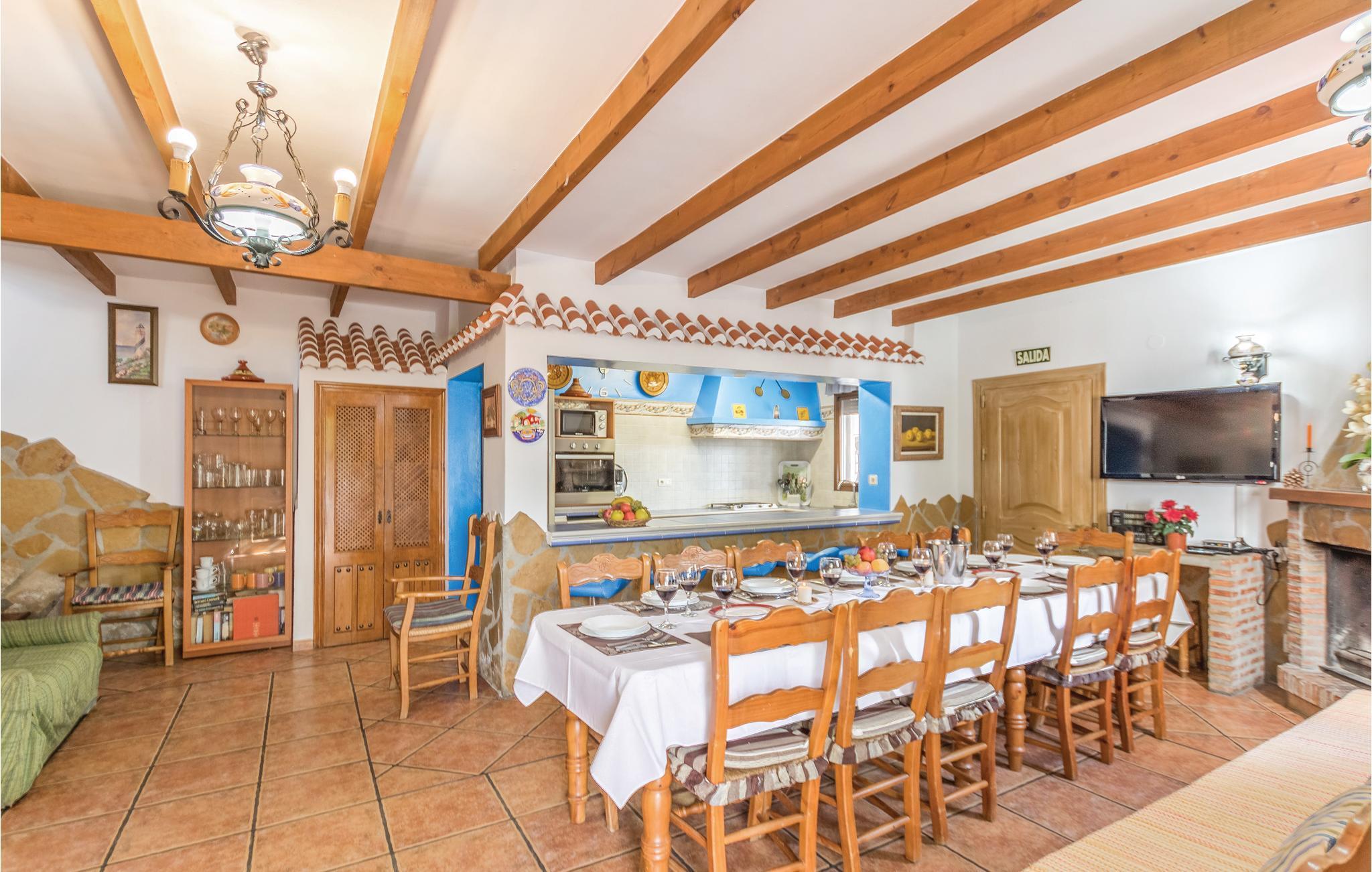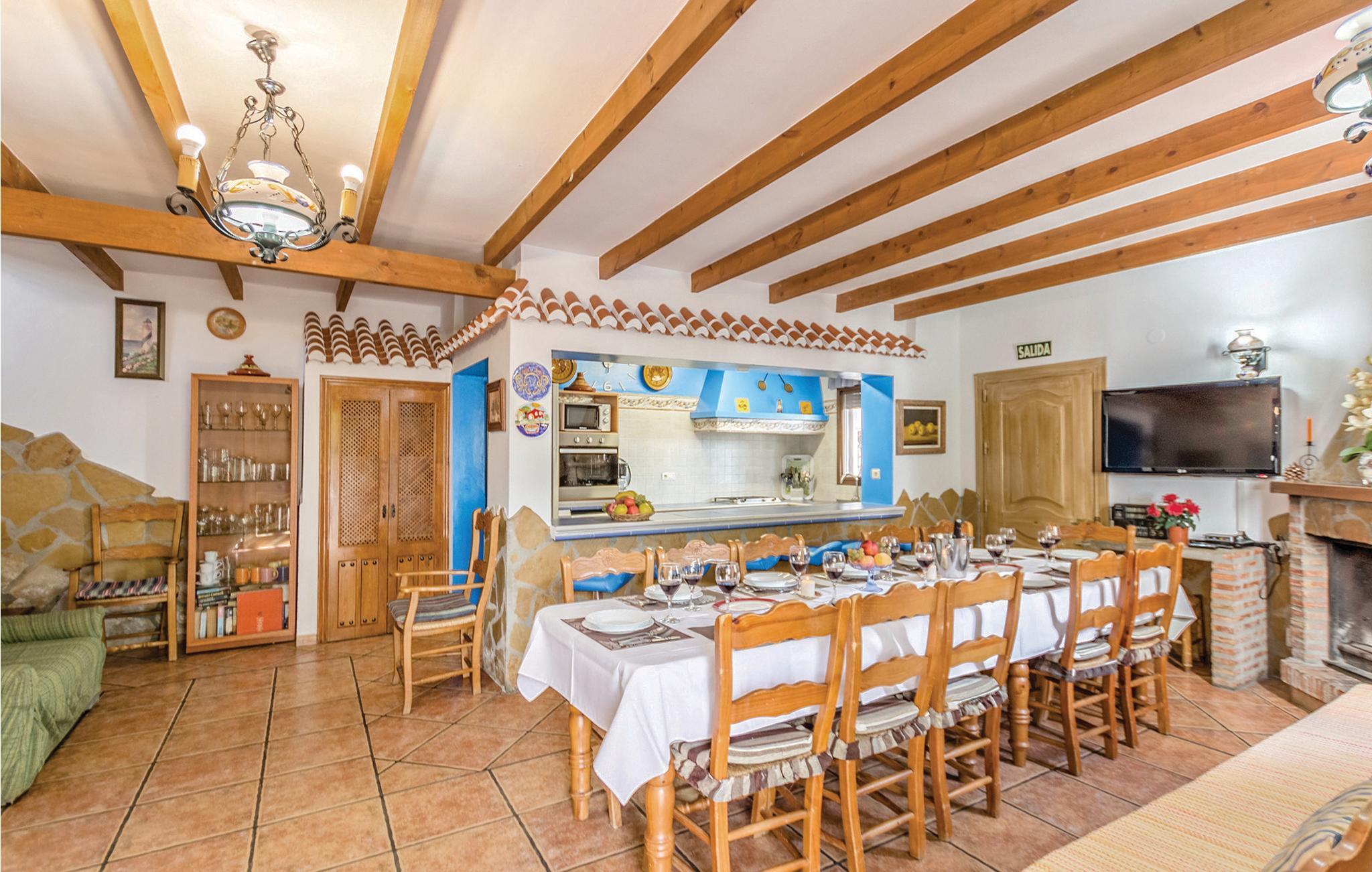 Dieses fantastisches Ferienhaus für Großfamilien oder Gruppen ist für bis zu 20 Personen geignet und befindet sich ca 800 m vom Dorf Sayalonga entfernt. Die Zimmer werden nicht separat vermietet. Auf insgesamt 2 Etagen plus Dachgeschoss verteilen sich die 9 Schlafzimmer, 8 Bäder, eine komplette Küche und ein großes Wohnzimmer mit offenem Kamin, der das gesamte Haus wärmt. Eines der Schlafzimmer im Obergeschoss verfügt über ein Fenster in den Flur und nicht nach Außen. Genießen Sie eine unvergleichliche Panoramasicht von den Terrassen und dem Gartenbereich auf die Sierra Tejeda und AlmDiijara, das Flusstal von Sayalonga und die weißen Dörfer am Fuße der Sierra. Das Feuerholz für den Kamin erhalten Sie mit Aufpreis. Ausstattung mit einem Babybett, Hochstuhl und Kinderwagen, ideal für Familien mit Kleinkindern.