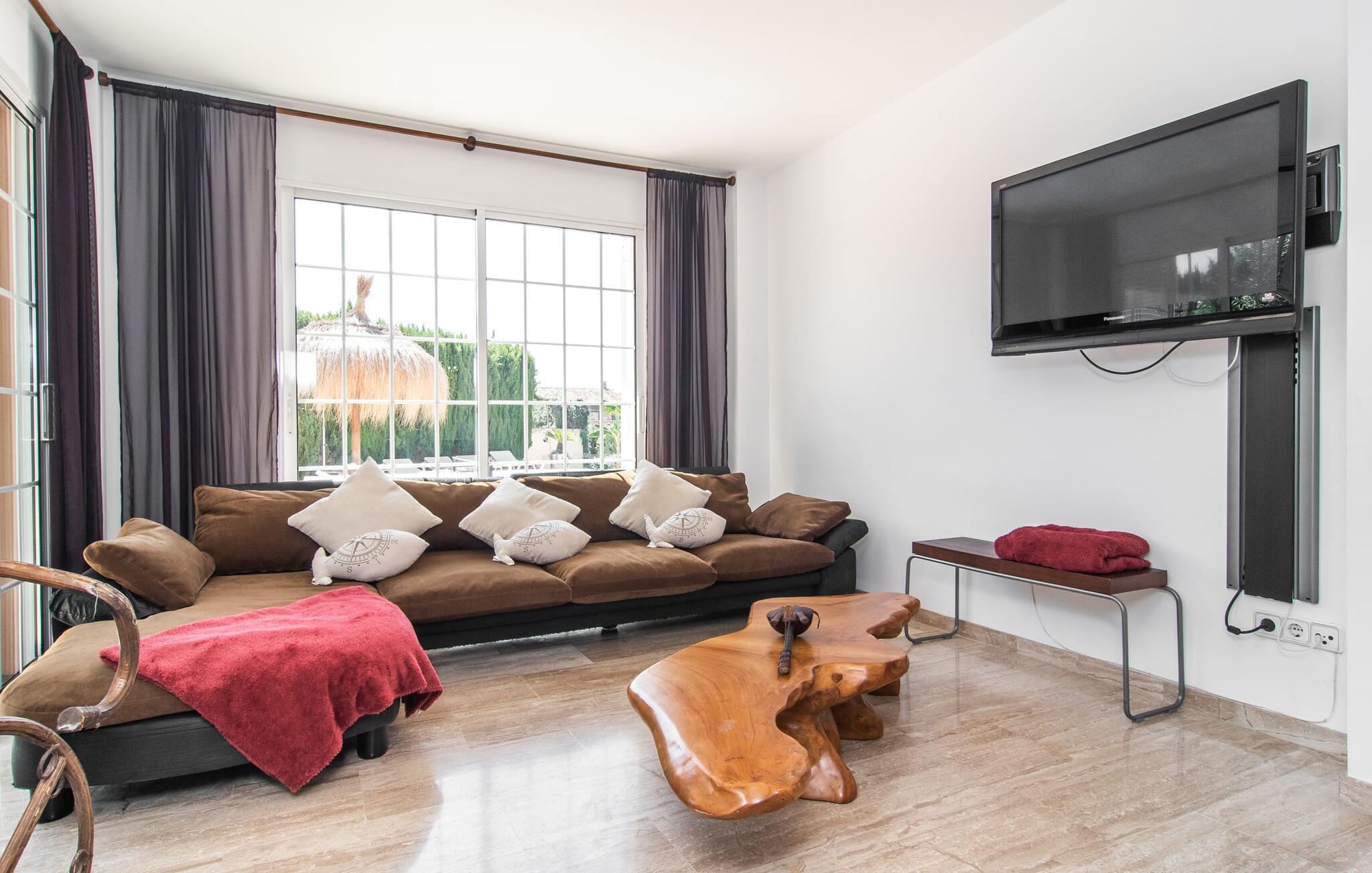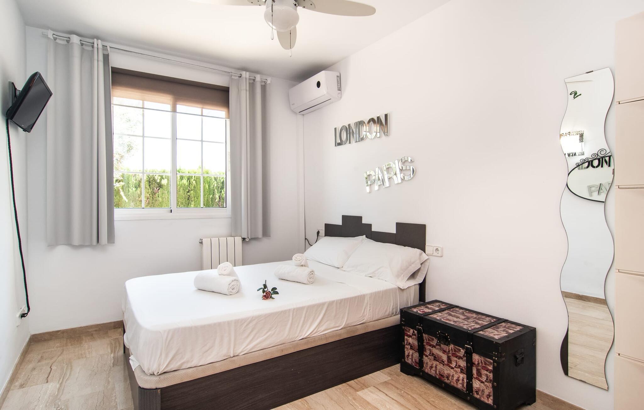 Dieses sorgfältig gepflegte Ferienhaus liegt vor den Toren der Hauptstadt und verfügt über einen privaten Pool und einen üppigen Garten mit Oliven- und Palmenbäumen. Entspannen Sie auf den Sonnenliegen am Pool, während sich die kleinen Besucher auf dem Trampolin und beim Tischtennis vergnügen. Die schattige Veranda neben dem Haus bietet einen komfortablen Platz zum Entspannen an heißen Sommertagen oder kühleren Abenden, ergänzt durch einen Grill für ungezwungenes Essen.