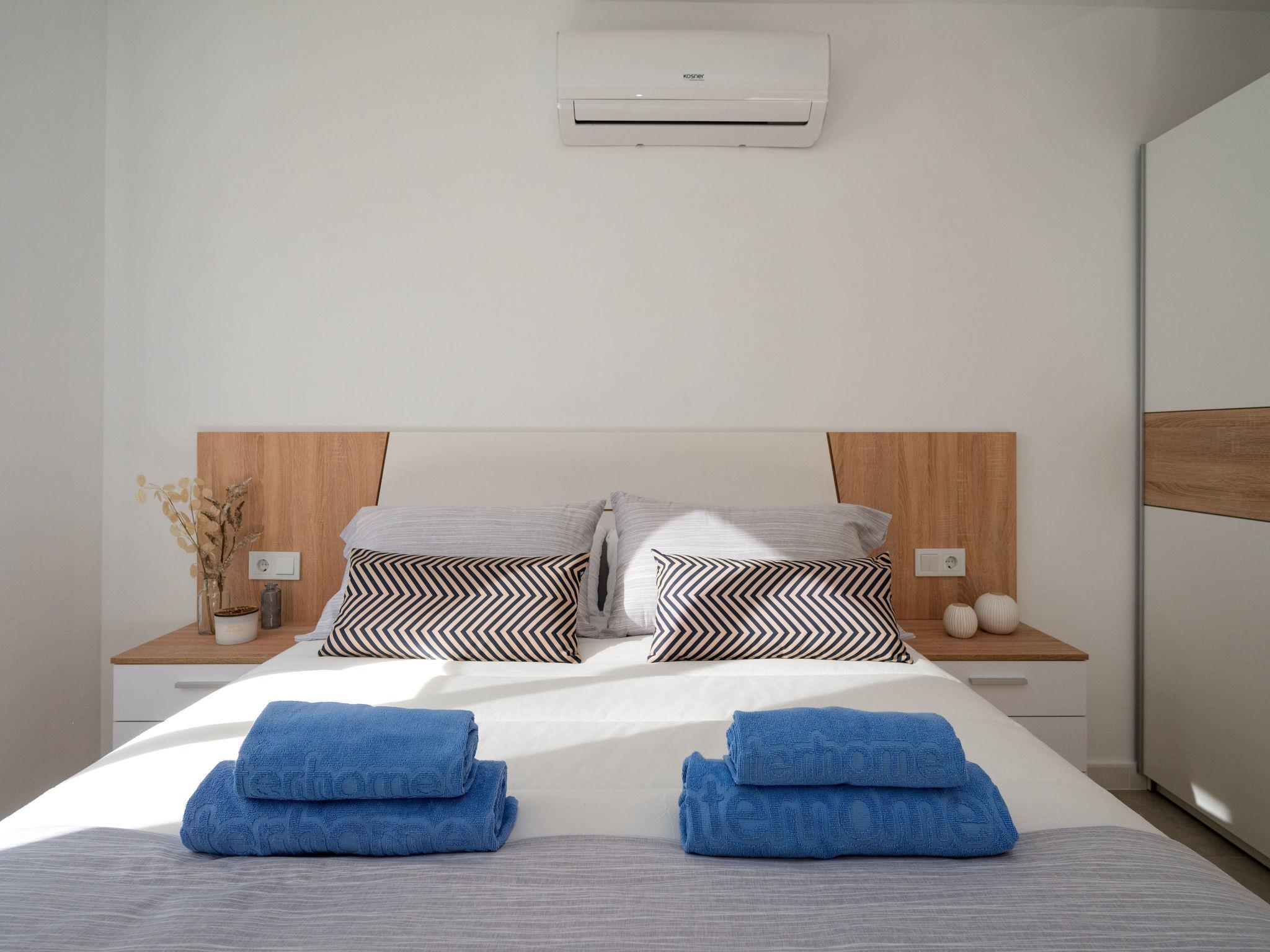 "Sakura", 3-Zimmer-Wohnung 62 m2. Komfortabel und modern eingerichtet: Wohn-/Esszimmer mit Esstisch, Digital-TV und Klimaanlage. Ausgang zum Balkon. 1 Zimmer mit 1 franz. Bett (150 cm, Länge 190 cm), Klimaanlage. 1 Zimmer mit 2 Betten (90 cm, Länge 190 cm). Küche (Backofen, Geschirrspüler, 3 Induktionskochplatten, Toaster, Wasserkocher, Mikrowelle). Dusche/WC. Keine Heizmöglichkeit. Balkon. Balkonmöbel. Sicht auf den Hafen. Zur Verfügung: Waschmaschine, Bügeleisen, Haartrockner. Internet (WLAN, gratis). Garage auf dem Grundstück (1 Auto). HUTT-066179 // Reg. Nr.: ESFCTU0000430250005066850000000000000000HUTT066179521