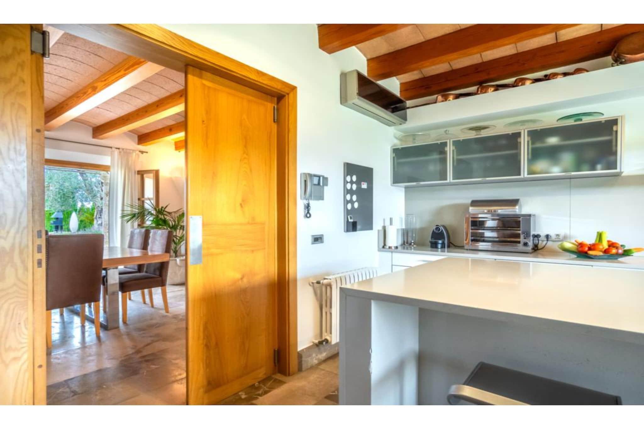 Fantastisches Landgut. Das Haus wurde im Jahr 2006 aus hochwertigen Materialien: mallorquinische Sandsteine, Marmor, Holzbalken, Edelstahl, etc. .. erbaut. Dekoriert mit einem persönlichen Stil und exquisiten Geschmack und mit viel Liebe zu offenen Räumen. Abschlüsse und Installationen mit neustem Stand der Technik: E-Starter-Karte, Hintergrundmusik innen und auf den Terrassen, Loewe TV im Wohnzimmer und Schlafzimmern, Wifi. Alle 4 Schlafzimmer sind ausgestattet mit Bad, Ankleideraum, TV und Ausgang zur Terrasse. Die 50 m2 grosse Küche ist komplett ausgestattet, so wie auch das Esszimmer und das Wohnzimmer. Die Gartenanlage hat Terrassen (1.000 Meter), welche ideal sind für Veranstaltungen im Freien mit einer Kapazität für 200 Personen. Es gibt einen Chill Out Bereich und Parkplatz für 100 Autos. Für Veranstaltungen im Innerenbereich hat das Haus eine maximale Kapazität von 20/25 Personen. Ideal für geschäftliche Meetings, Konferenzen und kleinere Feiern.
