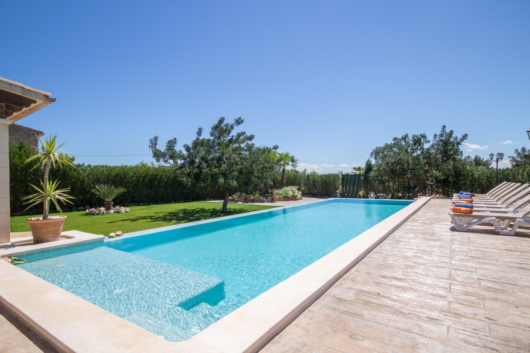 Dieses charmante Landhaus in Selva bietet ein geräumiges und modernes Wohnerlebnis mit 5 geschmackvoll eingerichteten Schlafzimmern und ausreichend Platz für bis zu 6 Gäste. Mit großzügigen 350 m² Wohnfläche bietet das Haus einen atemberaubenden Blick auf die umliegenden Berge und üppigen Gärten. Das Anwesen liegt perfekt in einer ruhigen ländlichen Gegend, nur 100 Meter vom Naturschutzgebiet Sierra de Tramuntana entfernt und ist somit ein ideales Reiseziel für Naturliebhaber. Das Haus ist klimatisiert und verfügt über WLAN, Sat-TV und verschiedene Unterhaltungsmöglichkeiten für einen komfortablen Aufenthalt. Das Landhaus ist von malerischen Dörfern wie Campanet, Moscar und Selva umgeben, die nur eine kurze 3 km Autofahrt entfernt sind und lokale Restaurants wie Talent in Campanet und verschiedene Geschäfte bieten. Größere Städte wie Inca und Sa Pobla sind 7 km entfernt und bieten Supermärkte, einen Bahnhof und einen Busbahnhof für eine gute Anbindung an andere Teile der Insel. Zu den Attraktionen in der Nähe zählen der wunderschöne Lago Mayor, der Wasserpark Hidropark sowie die Sandstrände von Puerto Alcudia und Platja de Muro, alle im Umkreis von 15 km. Für Golfbegeisterte liegen die Golfplätze Club Pollença und Alcanada im Umkreis von 18 km. Das Haus verfügt über eine voll ausgestattete Küche mit modernen Induktionsgeräten, darunter Kühlschrank, Mikrowelle, Backofen, Geschirrspüler und Kaffeemaschine für ein köstliches Kocherlebnis. Das Haus bietet außerdem zwei Badezimmer, ein geräumiges Wohnzimmer mit Kamin und eine Minibar zum Entspannen. Zur weiteren Ausstattung gehören eine Waschmaschine, ein Bügeleisen, Ventilatoren und ein Kinderbereich für familienfreundlichen Spaß. Die Vermietungslizenznummer lautet ETV/6668.