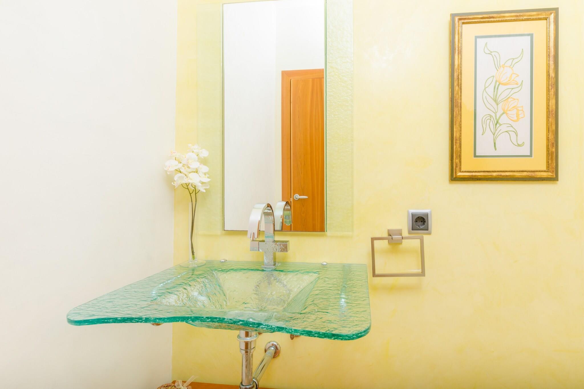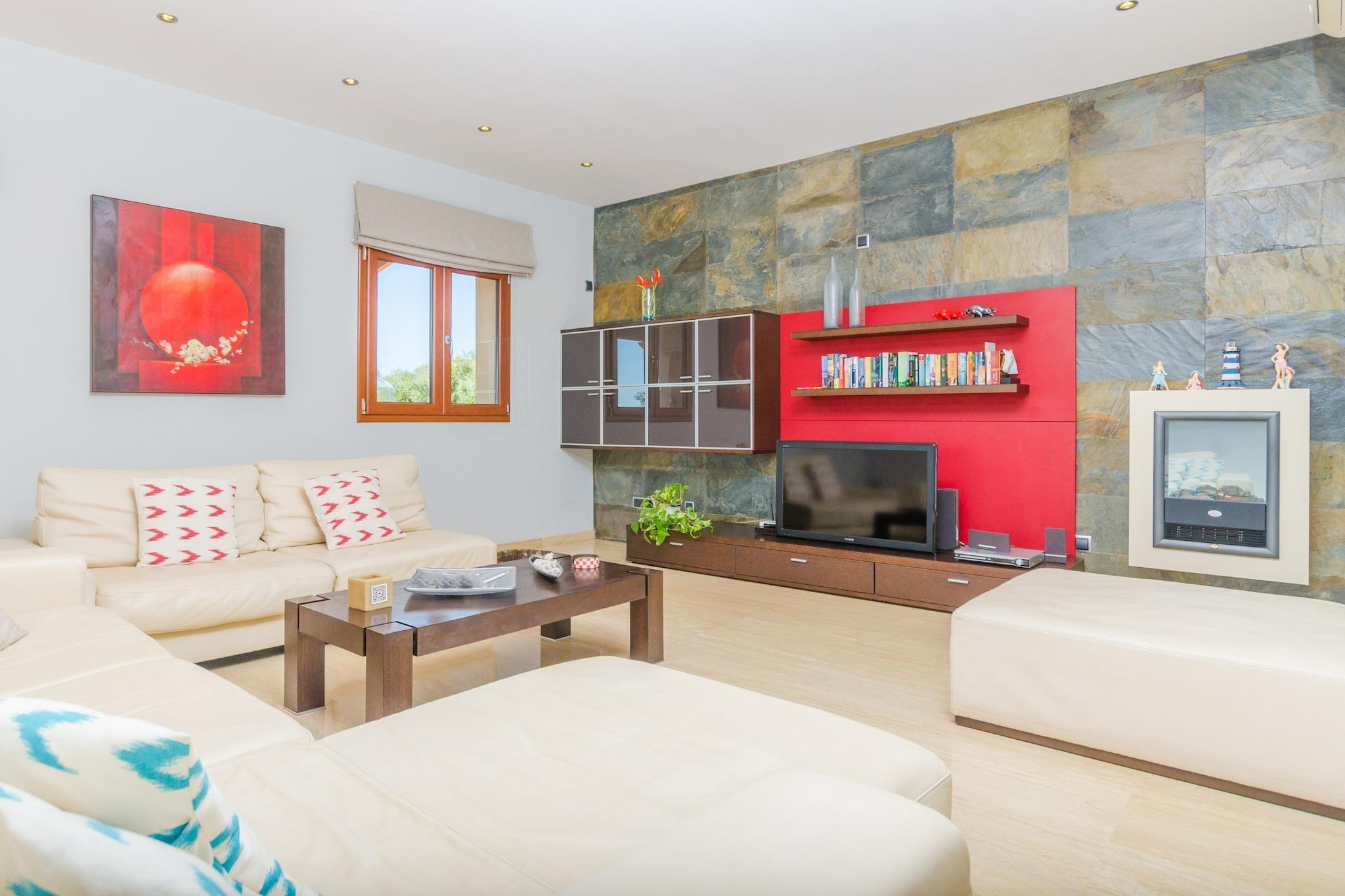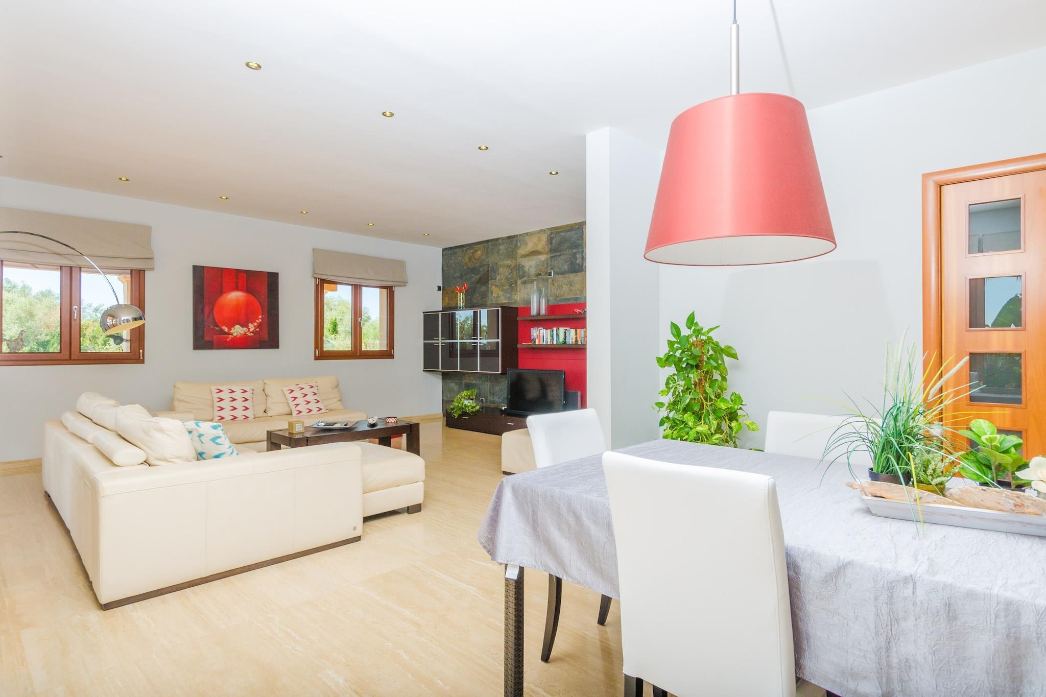 Die Außenbereiche dieser Finca sind einfach nur fantastisch; ein florierender Garten, welcher sich um den Chlorwasserpool von 11 x 6 m Länge und 1.1 bis 1.9 m Tiefe schmiegt, 8 Sonnenliegen und dazu eine Veranda mit traumhaftem Ausblick, welche über eine Stiege zu erreichen ist und mit Außensofas ausgestattet den idealen Platz für ein Barbecue oder einfach nur einen entspannten Nachmittag bietet. Die Liegenschaft ist eingezäunt und garantiert absolute Privatsphäre. Im großen und klimatisierten Ess- und Wohnbereich kann gemeinsam gegessen und vor dem Satelliten TV entspannt werden. Küchenprofis kommen bei der großen und gut ausgestatteten Küche mit Cerankochfeld auf Ihre Kosten. Auf diesem Stockwerk befinden sich außerdem die Waschküche mit Waschmaschine, Trockner, Bügeleisen und Bügelbrett, sowie eine Toilette und ein Schlafzimmer mit zwei Einzelbetten mit Badezimmer en-suite mit Dusche. Die obere Etage offeriert drei weitere Schlafzimmer, eines mit zwei separaten Betten und zwei mit Doppelbett, von denen eines mit einem Badezimmer en-suite mit Dusche und Hydromassage ausgestattet ist. Alle Schlafzimmer sind klimatisiert und haben einen Kleiderschrank oder eine Ankleide. Von 2 der Zimmer gelangt man in den Garten. Ein Badezimmer mit Wanne komplettiert den oberen Stock. Es sind zwei Babybettchen und 2 Hochstühle vorhanden. Die Finca befindet sich in einer ruhigen Umgebung, nur 2.5 km von Ses Salines entfernt, welches für die Salzproduktion bekannt ist und sämtliche Basisserviceleistungen bietet. Eine größere Auswahl finden Sie in Santanyí oder Campos. Der nächste Strand befindet sich 4 km entfernt in der der Colonia Sant Jordi, einem Küstendorf, welches bekannt für guten Fisch ist. Die Strände Platja d'es Dolç oder Es Trenc sind ebenfalls definitiv einen Besuch wert. Haustiere sind verboten. Der Holzofen kann nicht benützt werden. Eventuelle Nebenkosten müssen beim Anbieter nachgefragt werden. Haustiere sind verboten. Partys oder ähnliche Veranstaltungen sind nicht gestattet. Es gibt Freiluftparkplätze für 6 Autos. Es gibt Parkplätze für 1 Autos in der Garage. Entfernungen Strand: 4 km - Colonia de Sant Jordi Flughafen: 43.5 km - Son Sant Joan Golfplatz: 24.6 km - Golf d'Or Ortsmitte: 2.5 km - Ses Salines Bahnhof: 38.8 km - Manacor Bushaltestelle: 2.3 km - Ses Salines Fähre: 51.4 km - port de Palma Krankenhaus: 39 km - Manacor Touristen Lizenz: VT/2054Einheitsregister: ESFCTU000007008000813401000000000000000000000VT/20546Die Kaution ist bei Ankuuft direkt an den Eigentümer zu übergeben.
