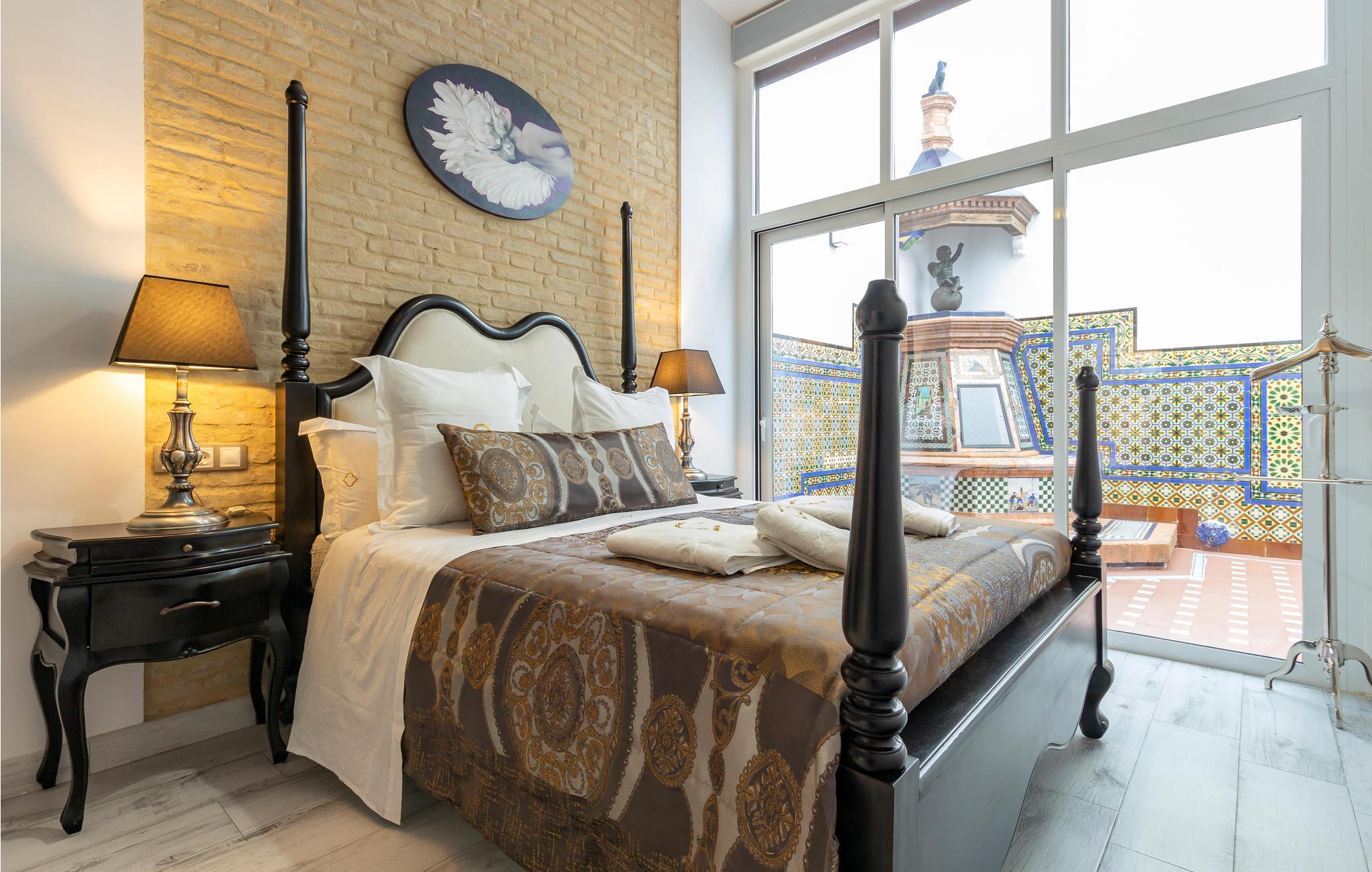 Ein dekoratives farbenfrohes Apartment im historischen Zentrum Sevillas.