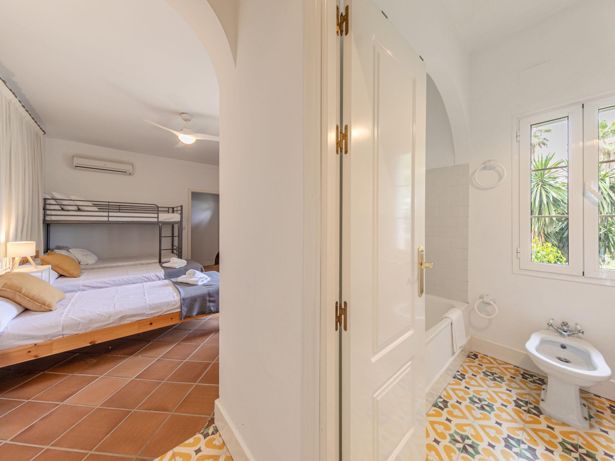 "Las Codornices", 7-Zimmer-Villa 325 m2 auf 3 Stockwerken. Zweckmässig und komfortabel eingerichtet: grosses Wohn-/Esszimmer mit offenem Kamin, Digital-TV, Flachbildschirm, Radio, CD und DVD. 2 Zimmer, jedes Zimmer mit 1 franz. Bett (150 cm, Länge 190 cm), Bad/WC. 2 Zimmer, jedes Zimmer mit 2 Betten (90 cm, Länge 190 cm). 1 Zimmer mit 1 Bett (90 cm, Länge 190 cm). Grosse Küche (Backofen, Geschirrspüler, 4 Glaskeramikplatten, Toaster, Wasserkocher, Mikrowelle, Tiefkühler, elektrische Kaffeemaschine). Dusche/WC. Obergeschoss: 1 Zimmer mit 1 franz. Bett (150 cm, Länge 190 cm). 1 Zimmer mit 2 Betten (90 cm, Länge 190 cm), 1 x 2 Etagenbetten (90 cm, Länge 190 cm). Bad/WC. 2. Obergeschoss: Erker. Garten. Gartengrill, Liegestühle. Zur Verfügung: Waschmaschine, Bügeleisen, Kinderhochstuhl, Babybett bis 2 Jahre, Haartrockner. Internet (WLAN, gratis). Bitte beachten: geeignet für Familien. Nichtraucher-Haus. Maximal 1 Haustier/Hund erlaubt. VTAR/SE/00682