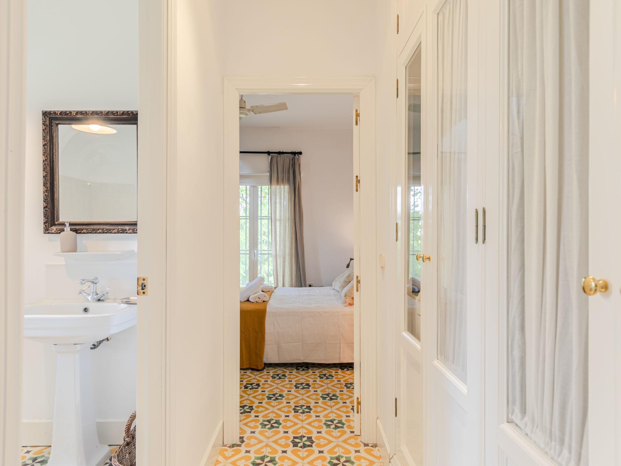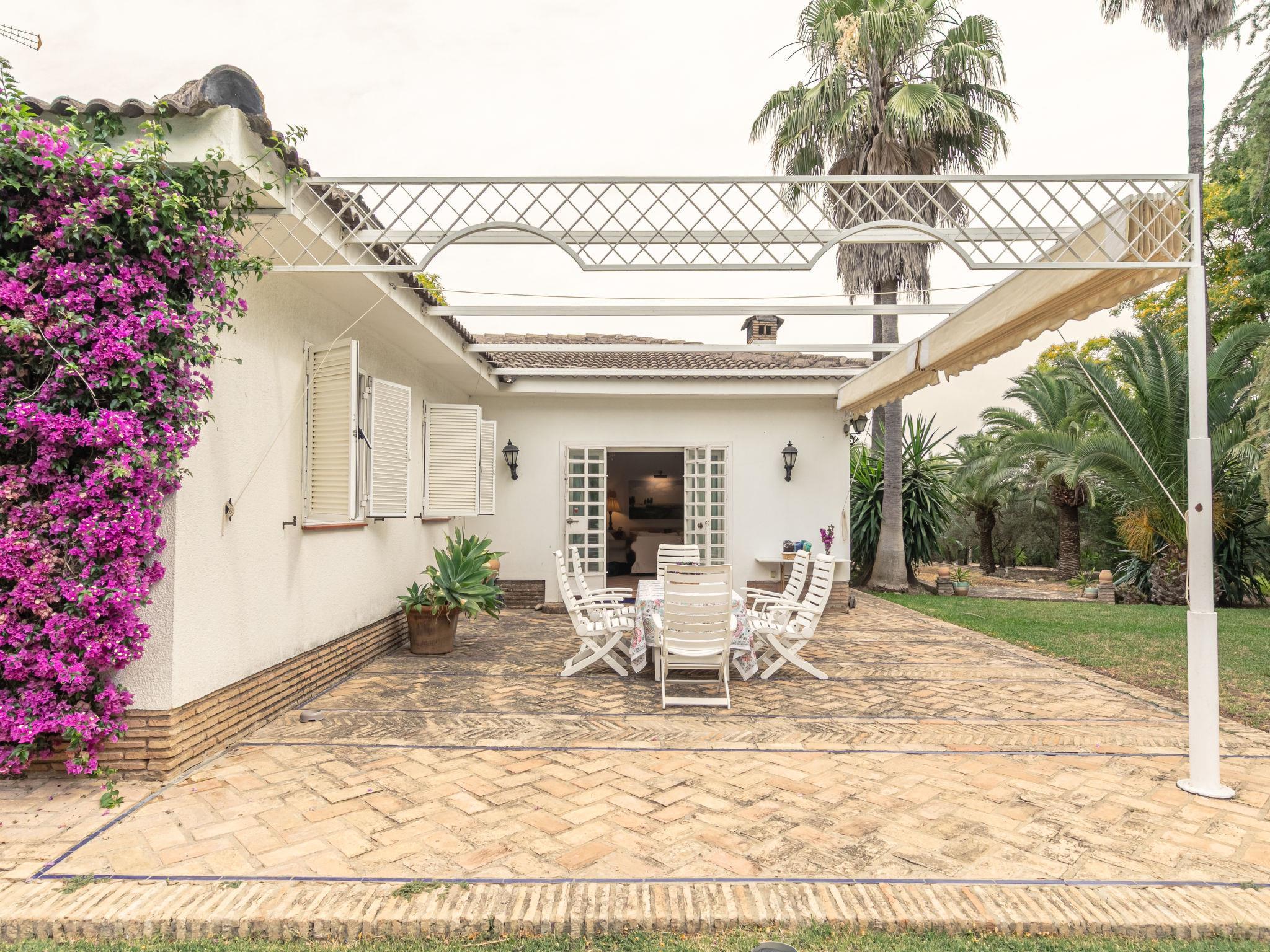 Komfortable Villa "Las Codornices". Am Ortsrand Sanlúcar la Mayor, alleinstehende, ruhige, sonnige Lage. Zur Alleinbenutzung: Garten 9'000 m2 mit Rasen und Bäumen, Schwimmbad (12 x 6 m, 170 - 185 cm tief, saisonale Verfügbarkeit: 01.Jan. - 31.Dez.). Aussendusche, Poolhaus, Parkplatz (für 10 Autos) beim Haus. Lebensmittelgeschäft 2 km, Supermarkt 2 km, Restaurant 2 km, Bäckerei 2 km, Bushaltestelle 2 km, Bahnstation 2 km, Sandstrand 60 km. Sporthafen 80 km, Golfplatz (18 Loch) 10 km, Tennis 2 km. Nahe gelegene Sehenswürdigkeiten: Sevilla 19 km, Aldea del Rocío 50 km. Wandergebiete: Parque de Doñana 50 km, Corredor Verde del Río Guadiamar 2 km. Der Besitzer akzeptiert keine Jugendgruppen.