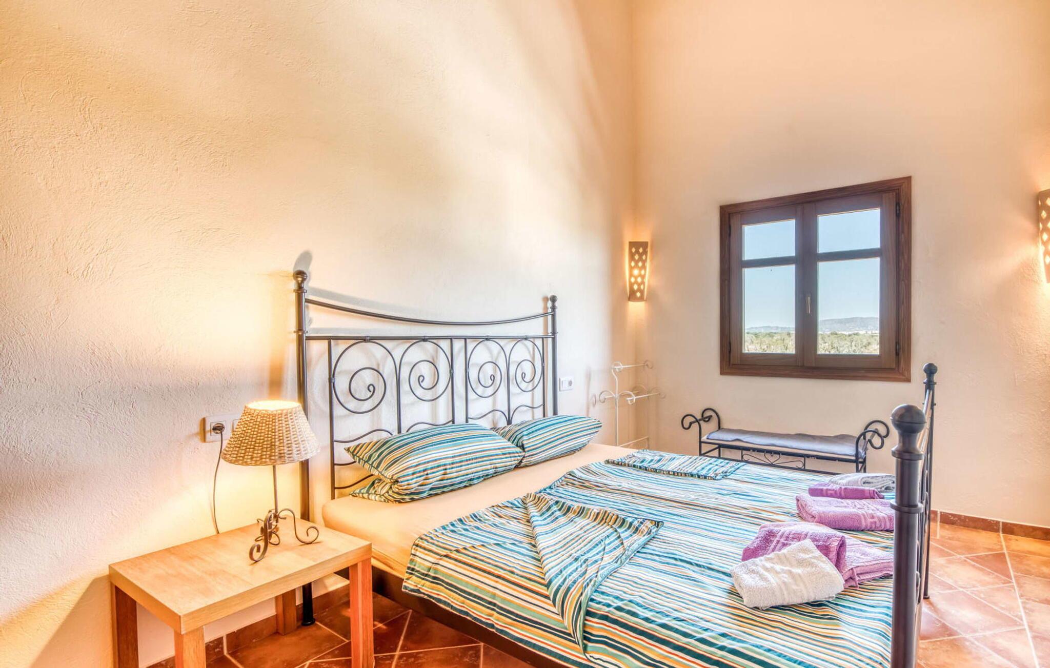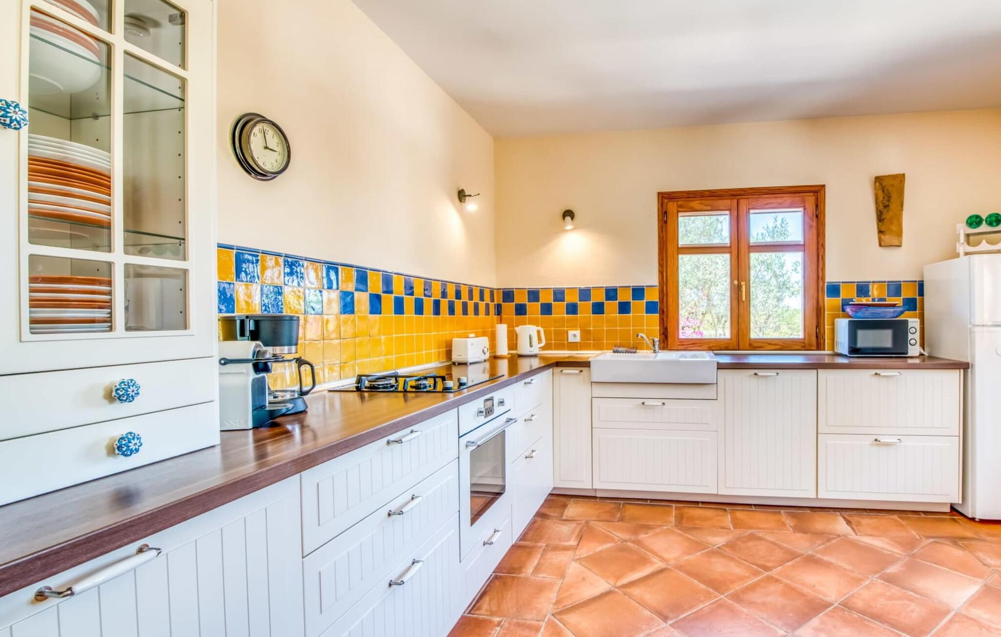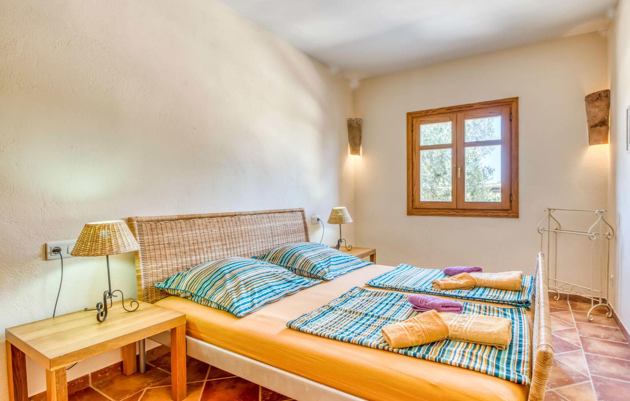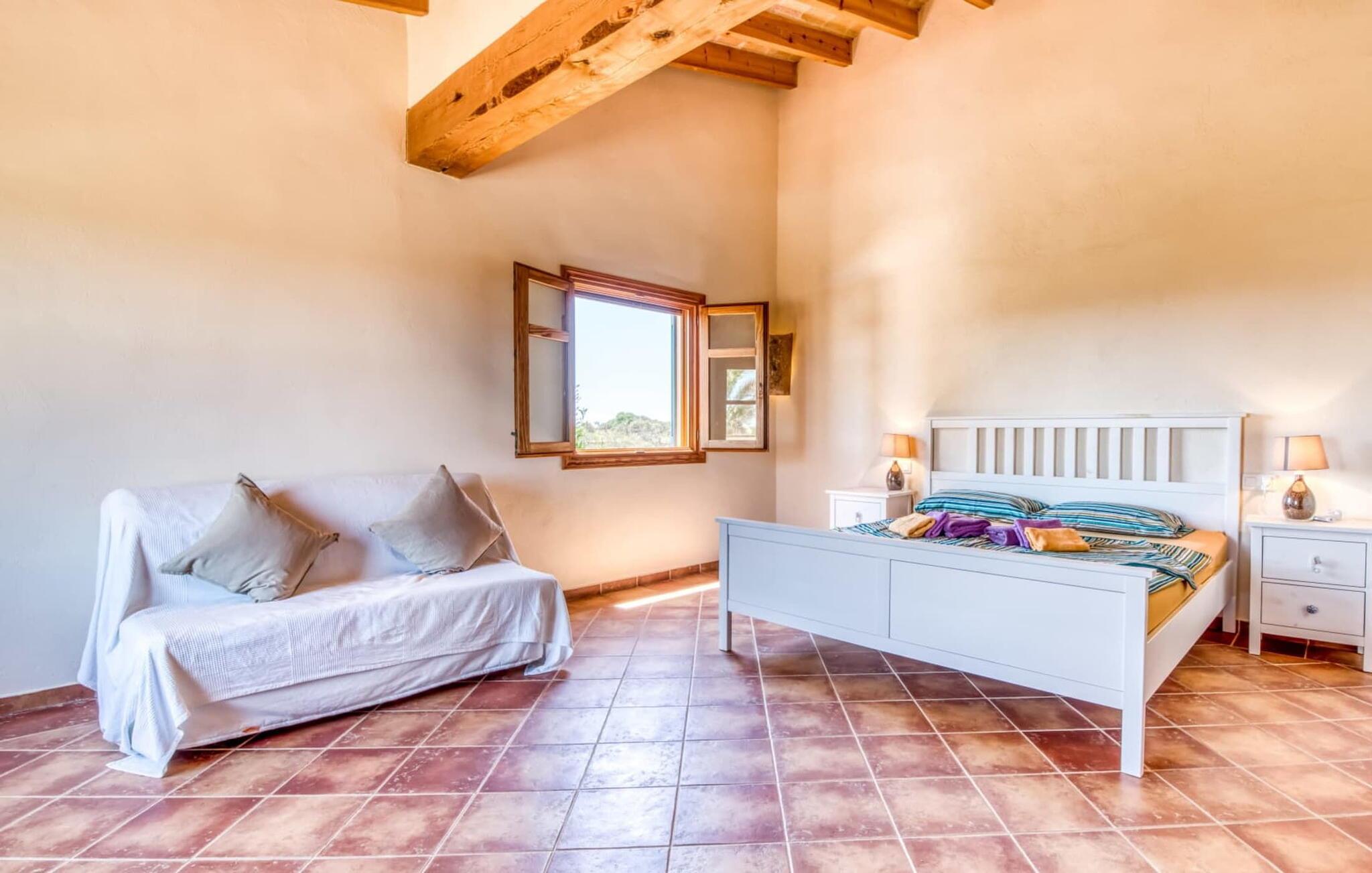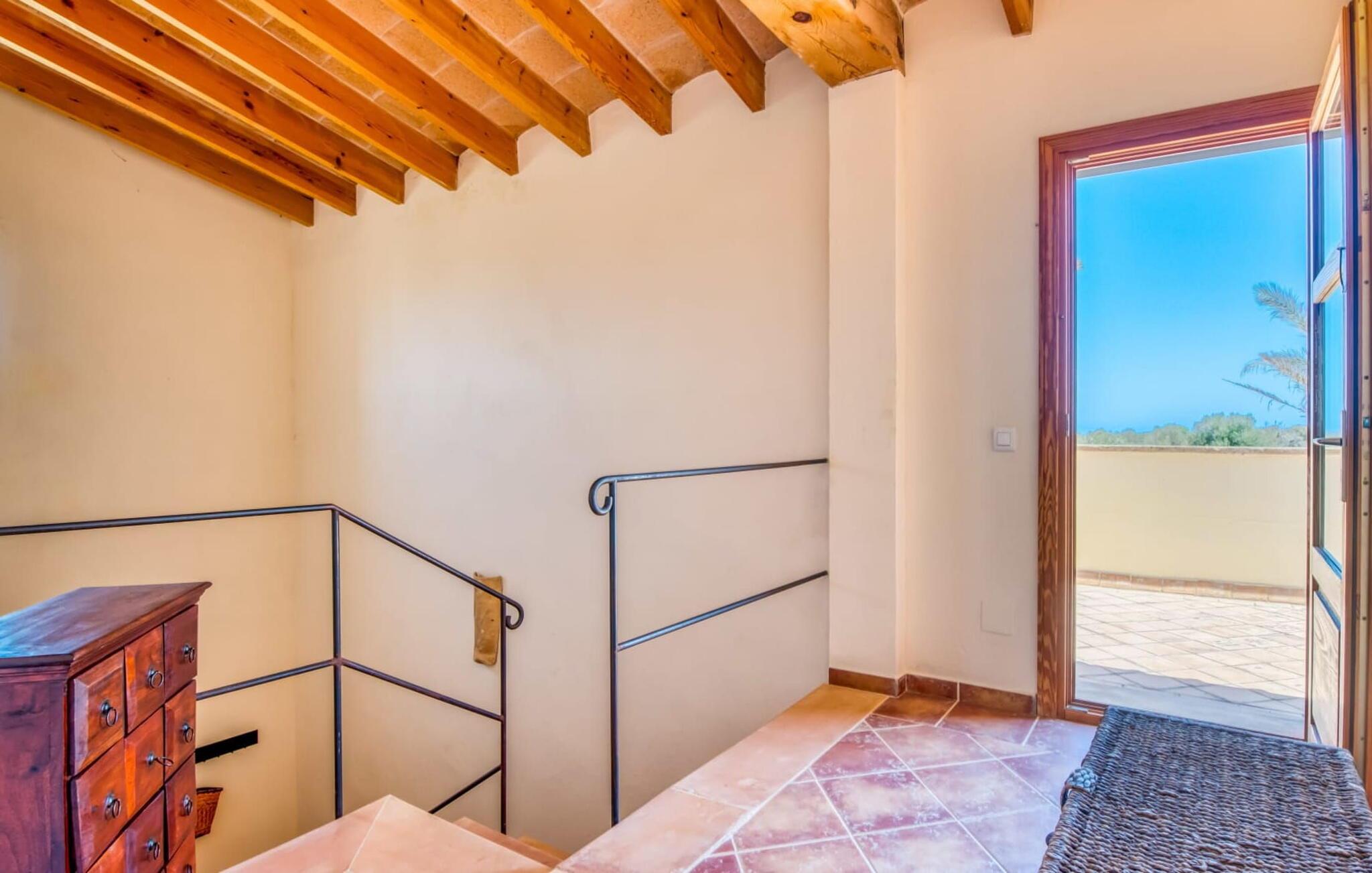 Die Zimmer sind hell und freundlich gestaltet. Ein offener Wohnbereich mit zwei bequemen Sofas lädt zu einem gemütlichen Fernsehabend ein. Der Wohnbereich öffnet sich zu einer Essecke mit einem Frisierstuhl für die jüngsten Gäste. Dieser Wohnbereich verfügt über pflegeleichte, terrakottafarbene Fliesen, Wände in sanften, erdigen Farben, honigfarbene Holzfenster und Fliesen, die in Lampen umgewandelt und an der Wand montiert wurden, was die besondere natürliche Atmosphäre des Wohnbereichs unterstreicht Haus. Die komfortable Küche befindet sich hinter dem Essbereich und ist funktionell ausgestattet mit einer Spülmaschine, einem Herd mit Gas- und Cerankochfeld, einem großen, freistehenden Kühlschrank, einer Kaffeemaschine (Nespresso, Pads müssen Sie selbst mitbringen) und vielem mehr . Mit den echten mallorquinischen Fliesen an den Wänden und den Arbeitsflächen trägt dieser Raum zum authentischen Stil des Hauses bei. Eltern mit kleinen Kindern sollten aus Sicherheitsgründen beachten, dass die Treppe offen ist und eine potenzielle Gefahr darstellen könnte. In den drei unglaublich geräumigen und komfortablen Schlafzimmern der Villa gibt es ausreichend Platz für bis zu 6 Personen (plus ein Baby) zum Entspannen. In den Schlafzimmern finden Sie die gleichen schönen Bodenfliesen, hellen, fröhlichen Wände und teilweise freiliegenden Holzbalken. Beide Badezimmer sind mit Naturstein ausgestattet.