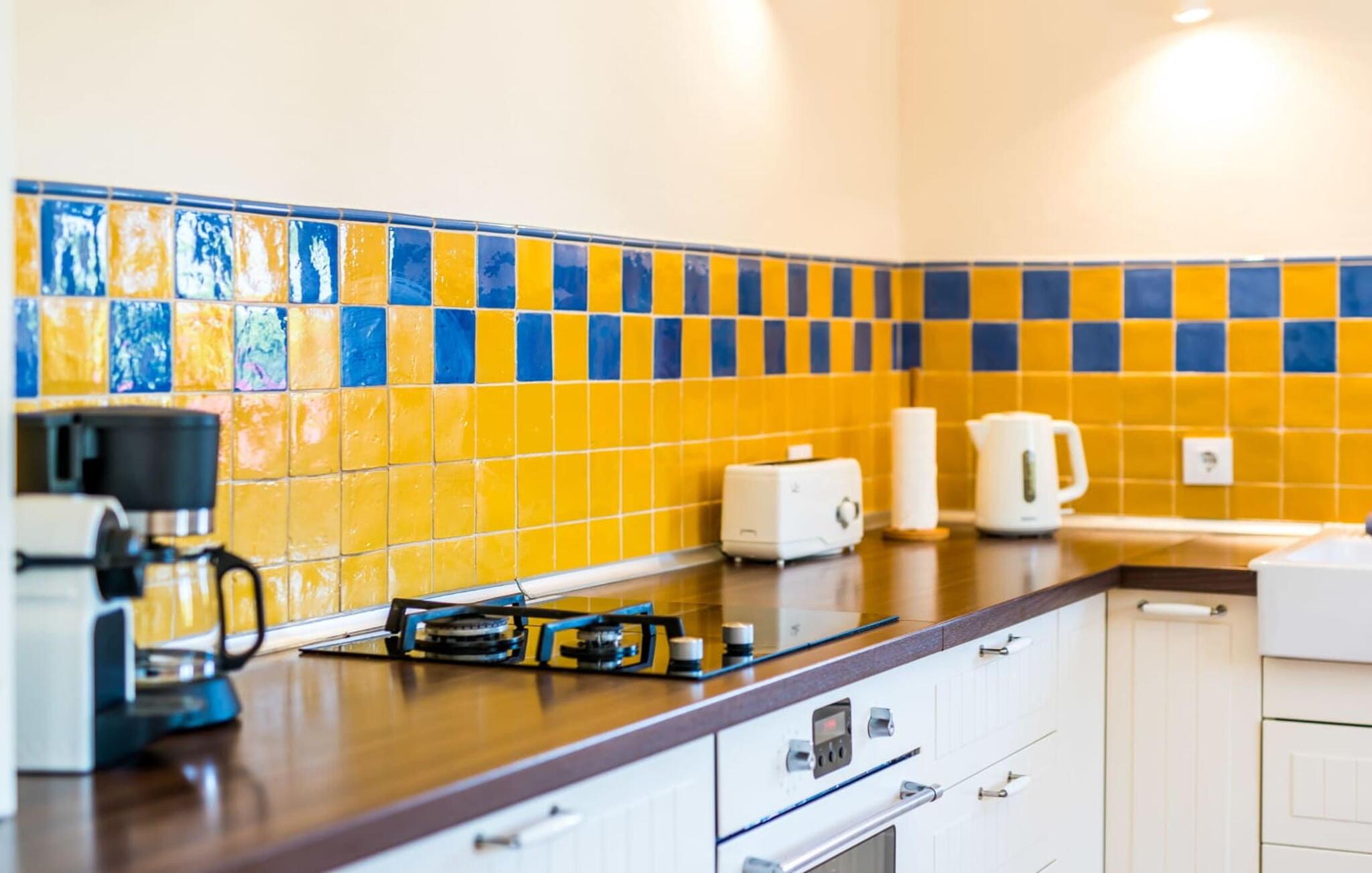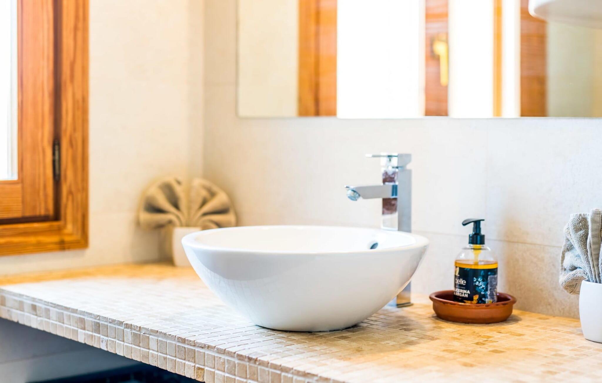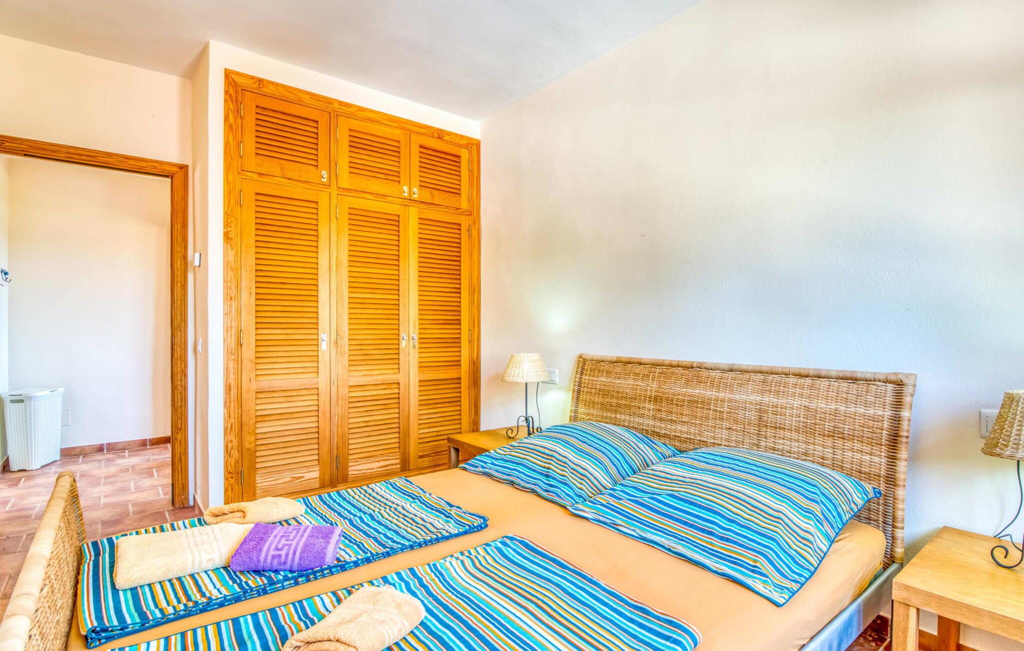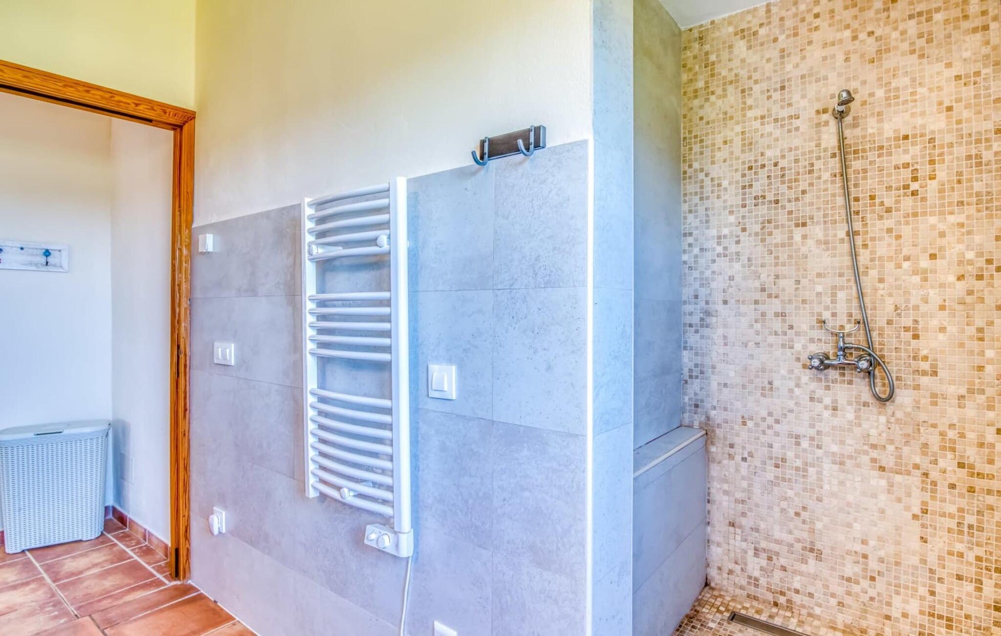 Die Zimmer sind hell und freundlich gestaltet. Ein offener Wohnbereich mit zwei bequemen Sofas lädt zu einem gemütlichen Fernsehabend ein. Der Wohnbereich öffnet sich zu einer Essecke mit einem Frisierstuhl für die jüngsten Gäste. Dieser Wohnbereich verfügt über pflegeleichte, terrakottafarbene Fliesen, Wände in sanften, erdigen Farben, honigfarbene Holzfenster und Fliesen, die in Lampen umgewandelt und an der Wand montiert wurden, was die besondere natürliche Atmosphäre des Wohnbereichs unterstreicht Haus. Die komfortable Küche befindet sich hinter dem Essbereich und ist funktionell ausgestattet mit einer Spülmaschine, einem Herd mit Gas- und Cerankochfeld, einem großen, freistehenden Kühlschrank, einer Kaffeemaschine (Nespresso, Pads müssen Sie selbst mitbringen) und vielem mehr . Mit den echten mallorquinischen Fliesen an den Wänden und den Arbeitsflächen trägt dieser Raum zum authentischen Stil des Hauses bei. Eltern mit kleinen Kindern sollten aus Sicherheitsgründen beachten, dass die Treppe offen ist und eine potenzielle Gefahr darstellen könnte. In den drei unglaublich geräumigen und komfortablen Schlafzimmern der Villa gibt es ausreichend Platz für bis zu 6 Personen (plus ein Baby) zum Entspannen. In den Schlafzimmern finden Sie die gleichen schönen Bodenfliesen, hellen, fröhlichen Wände und teilweise freiliegenden Holzbalken. Beide Badezimmer sind mit Naturstein ausgestattet.