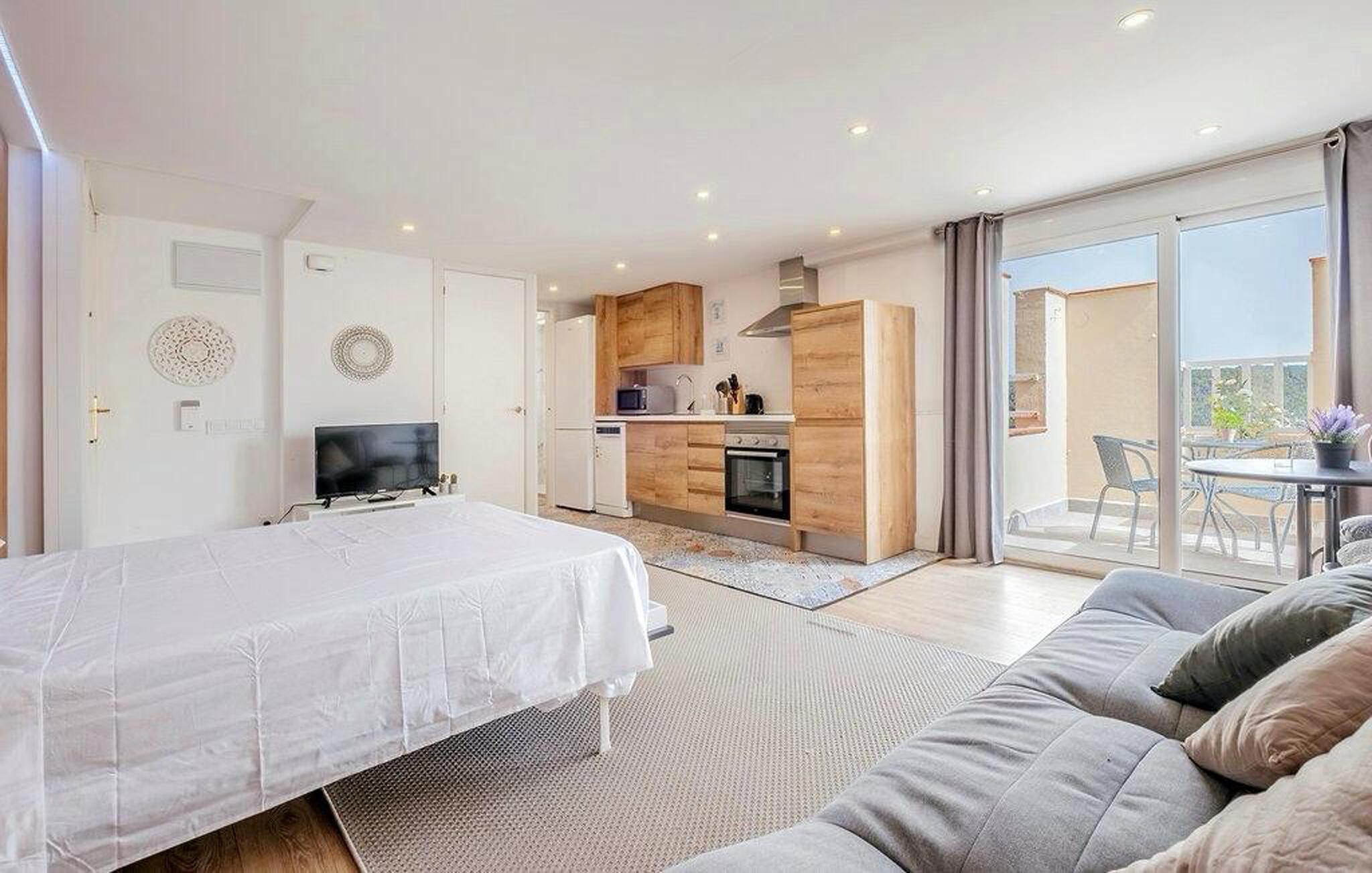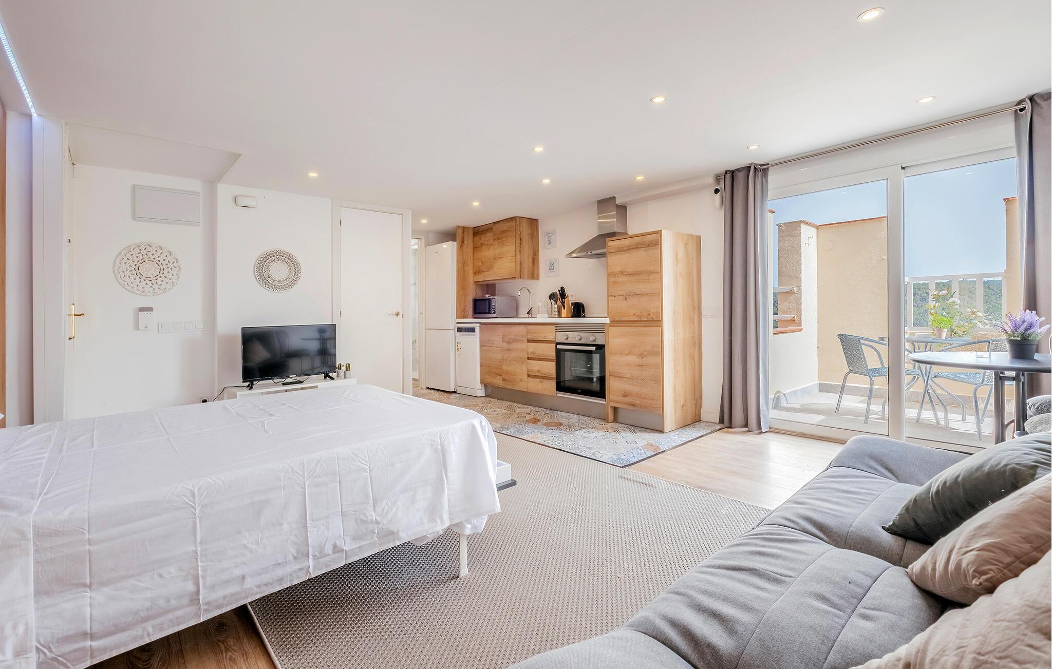 Willkommen in diesem stilvollen Studioapartment in Sitges – dem perfekten Rückzugsort für Paare oder kleine Familien. Das moderne und ansprechende Interieur bietet Ihnen alles, was Sie für einen komfortablen Aufenthalt benötigen. Der lichtdurchflutete Raum schafft für Sie eine entspannte Atmosphäre, während der Balkon einladend für ein Frühstück im Freien oder einen gemütlichen Abend bei Sonnenuntergang ist. Erkunden Sie den Gemeinschaftspool, der für erfrischende Momente sorgt und das Wohlfühlambiente dieses charmanten Apartments ideal ergänzt.