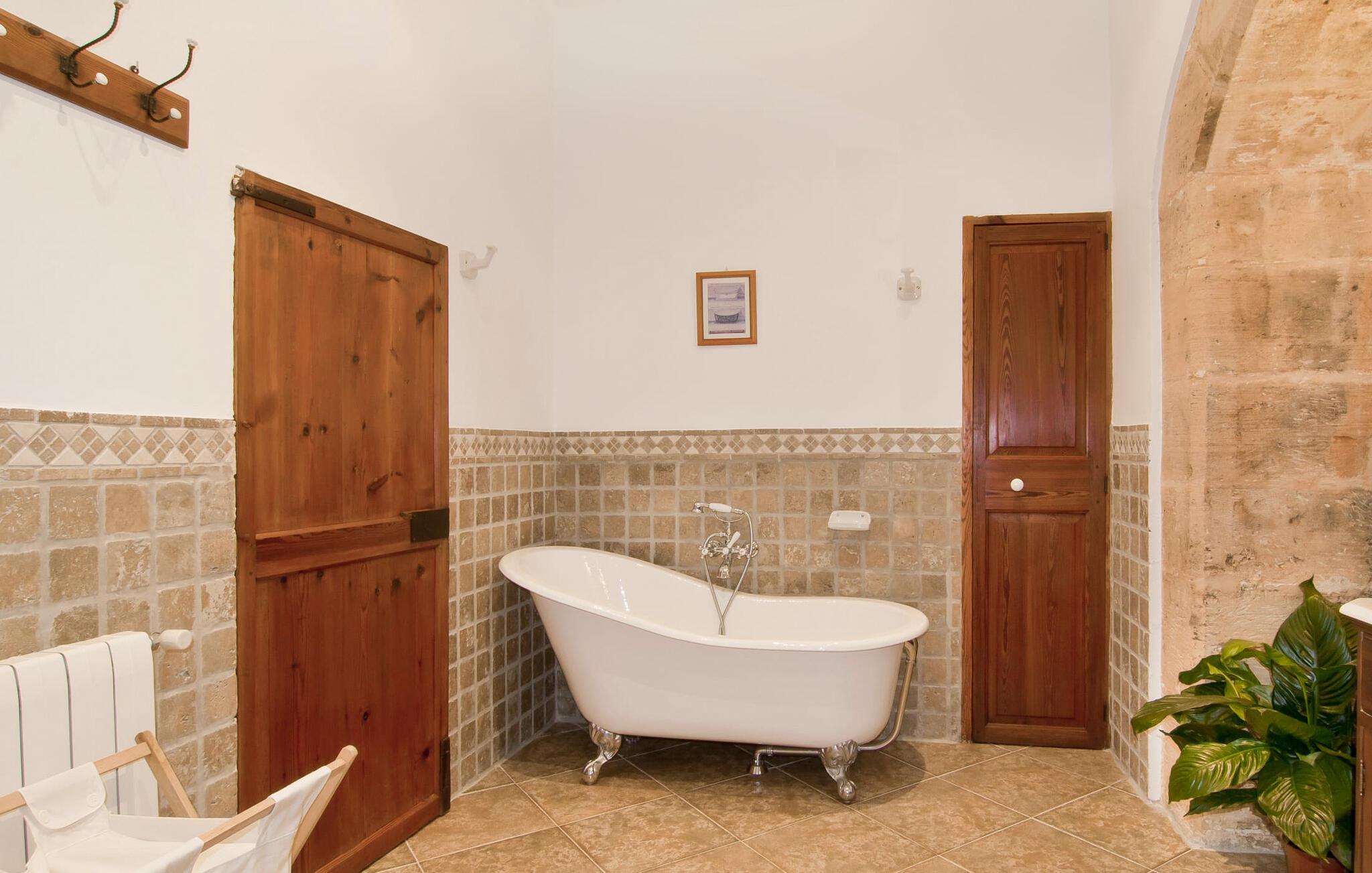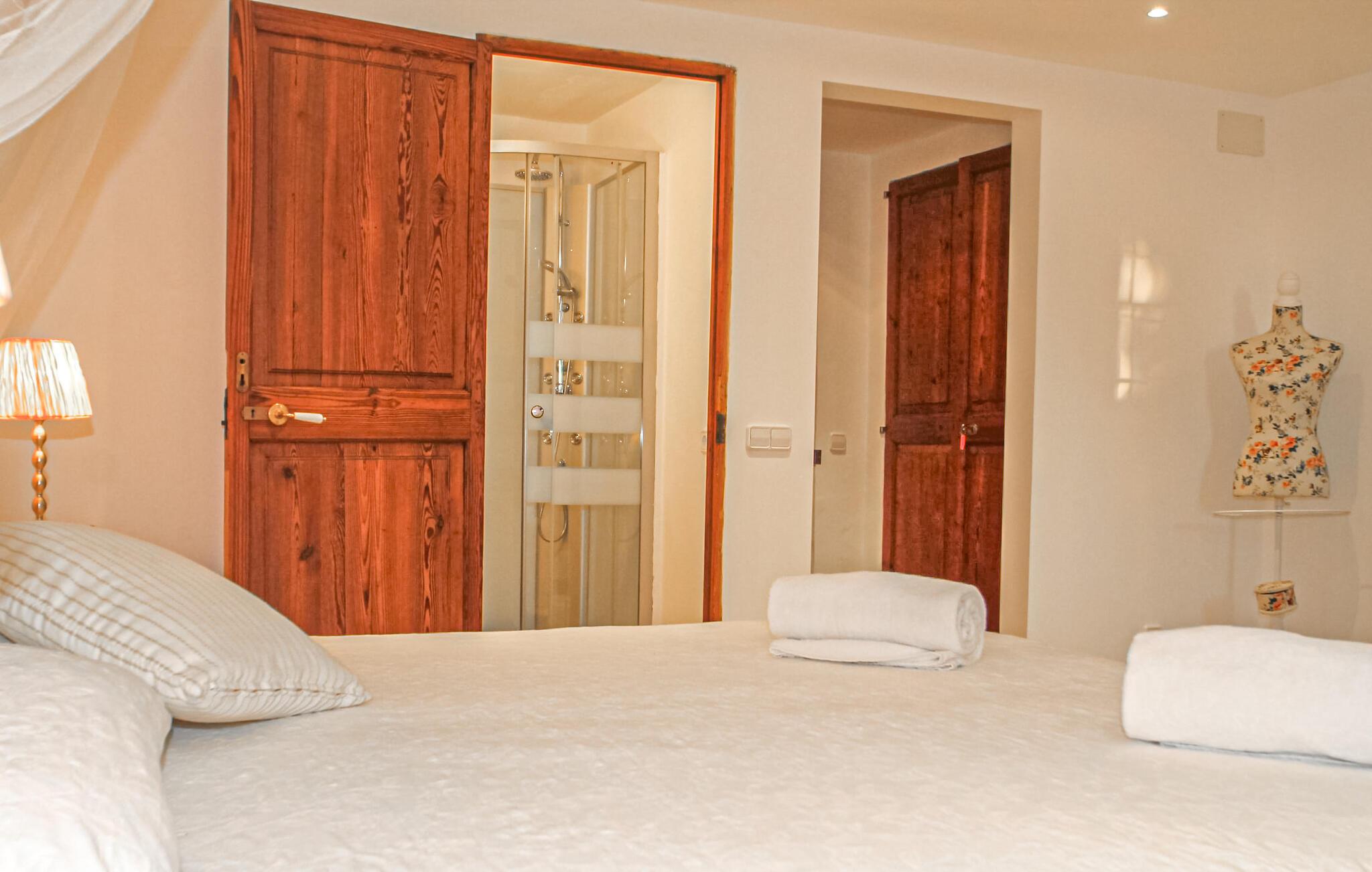 Die freundlichen Vermieter haben die großzügige Wohnfläche von 300 m² in ein Haupthaus mit drei komfortablen Schlafzimmern und drei Badezimmern (zwei en-suite, das andere mit freistehender, nostalgischer Badewanne) sowie rustikalen Wohnräumen aufgeteilt, die teilweise mit charmanten Nebenräumen verbunden sind Stürze und eine separate Nebenwohnung, nur 10 m entfernt. Die Wohnung verfügt über eine kleine Küche und ein hübsches Badezimmer. Besonders schön ist die kleine Galerie neben dem Wohnbereich, die zwei zusammenschiebbare Einzelbetten beherbergt. Direkt unter dem Dach schlafen Sie wunderbar. Die Wohnung ist nicht beheizt, verfügt aber über einen Kamin, der an kühleren Tagen zum Heizen genutzt werden kann. Die Wohnung ist ideal für Kinder oder Jugendliche (vor allem, wenn sie etwas älter sind und ihren persönlichen Freiraum genießen oder einen Freund in den Urlaub mitnehmen möchten).