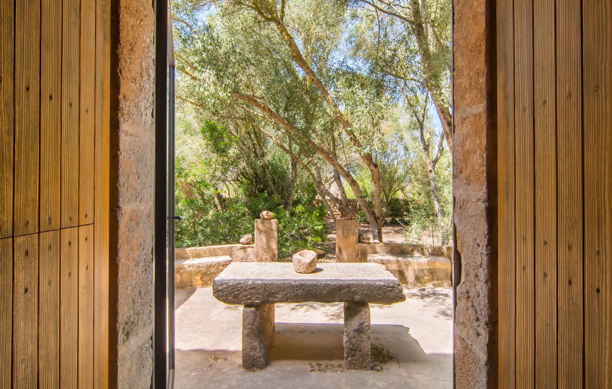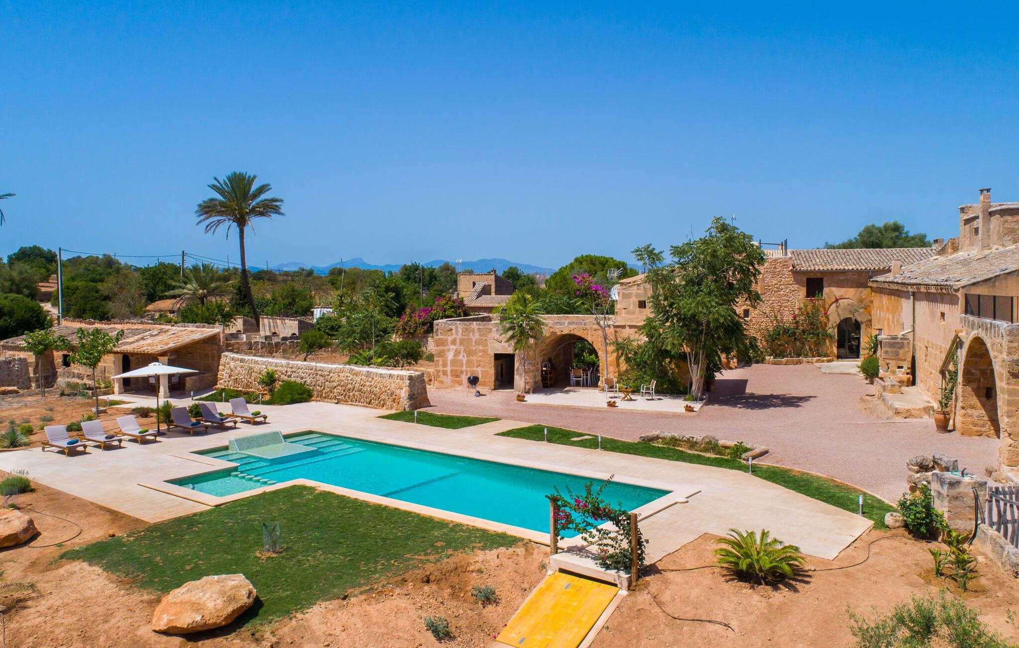 Es gibt Villen, die einem das Gefühl vermitteln, dass einem halb Mallorca zu Füßen liegt. Dies ist bei der Villa „Son Delabau Gran“ der Fall. Sobald Sie das weitläufige Anwesen nach einer kurzen Fahrt vom mallorquinischen Flughafen erreichen, stellt sich unweigerlich das Gefühl von zeitlosem Luxus ein. Trotz der attraktiven Nähe zu aufregenden Städten wie Palma oder Llucmajor versprüht der Blick auf die umliegende Landschaft pure Landidylle. Und vielleicht erinnert Sie die gewölbte Terrasse auch an die tolle Zeit Ihrer Kindheit, als Sie eine besondere Vorliebe für Schlösser hatten, die wie aus einem Märchen wirken. Schmale Stufen, die den Eindruck eines antiken Wahrzeichens vermitteln, führen zu einer hübschen Dachterrasse, auf der Sie die Sonne der Insel genießen können. Das Poolwasser glitzert verführerisch in der Sonne, dem kann man vielleicht nicht lange widerstehen. Und warum sollten Sie? Zu der wohltuenden Wirkung des Wassers gehört schließlich auch, dass das Essen danach deutlich besser schmeckt. Vor allem, wenn es in einer so gemütlichen Außenküche zubereitet wurde, die perfekt für ein großes BBQ ausgestattet ist. Wenn Sie auf einer der Liegen liegen und den Sonnenuntergang beobachten oder eine der Sitzecken – etwa die Pergola oder die Chill-Out-Lounge – nutzen, um ein Glas Inselwein zu probieren, werden Sie wissen: Sie haben alles richtig gemacht, a Mehr Bilderbuch-Idylle gibt es nicht. Wildromantische Rosen klettern an der steinernen Mauerfront im Eingangsbereich empor.