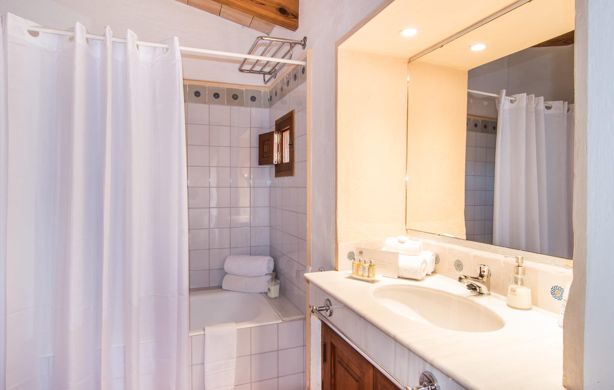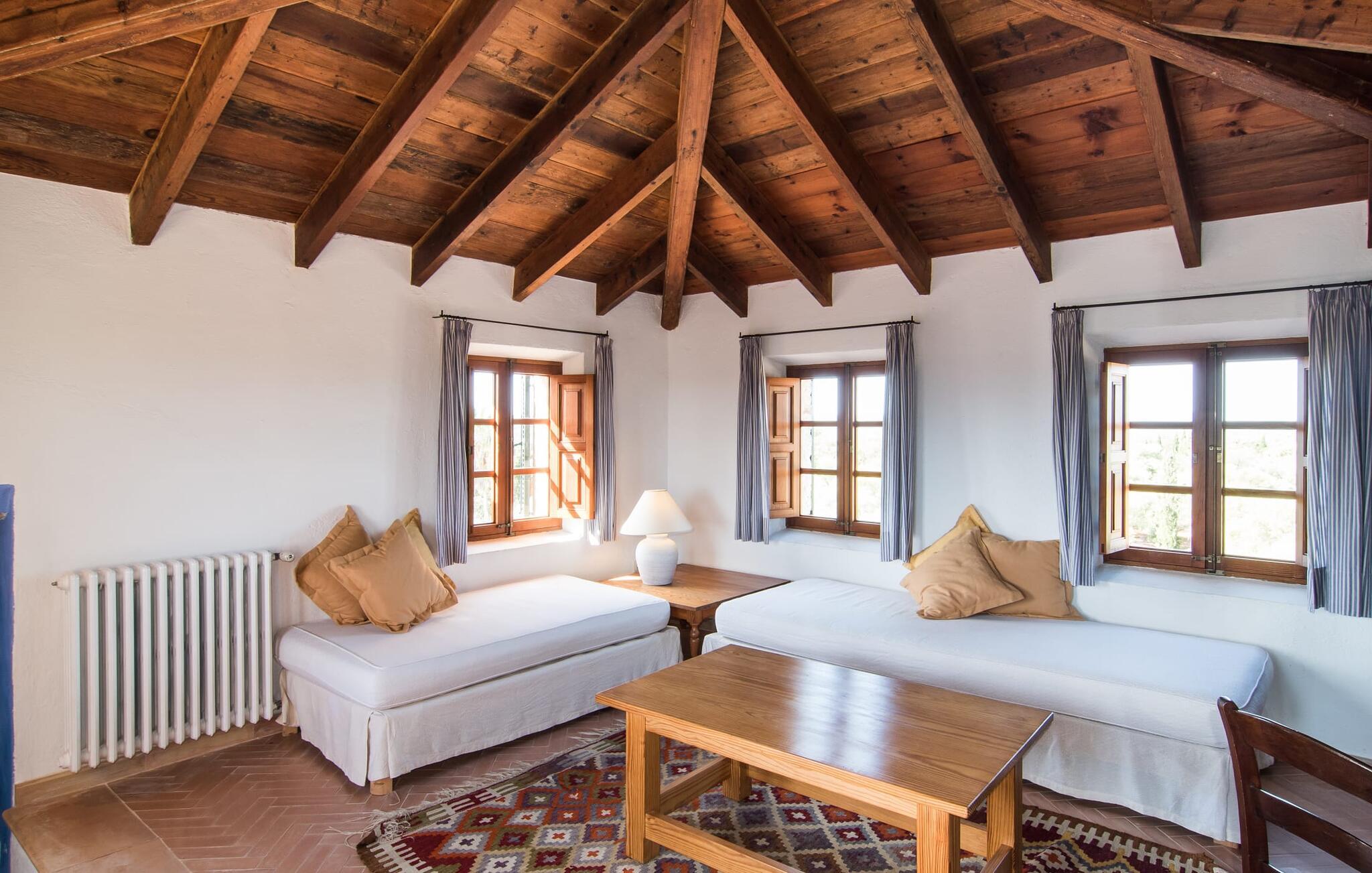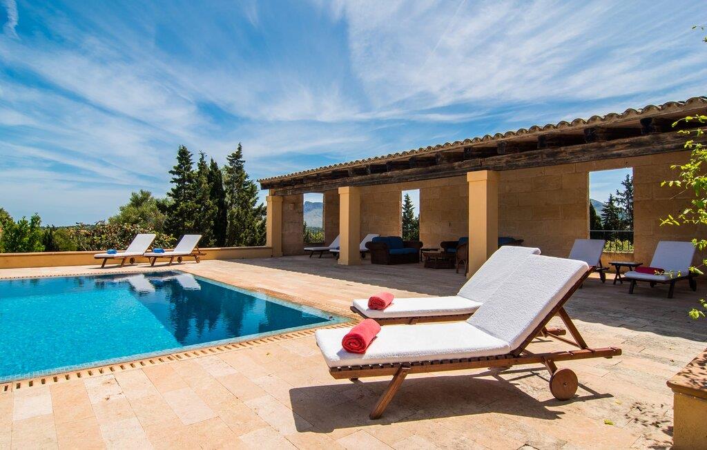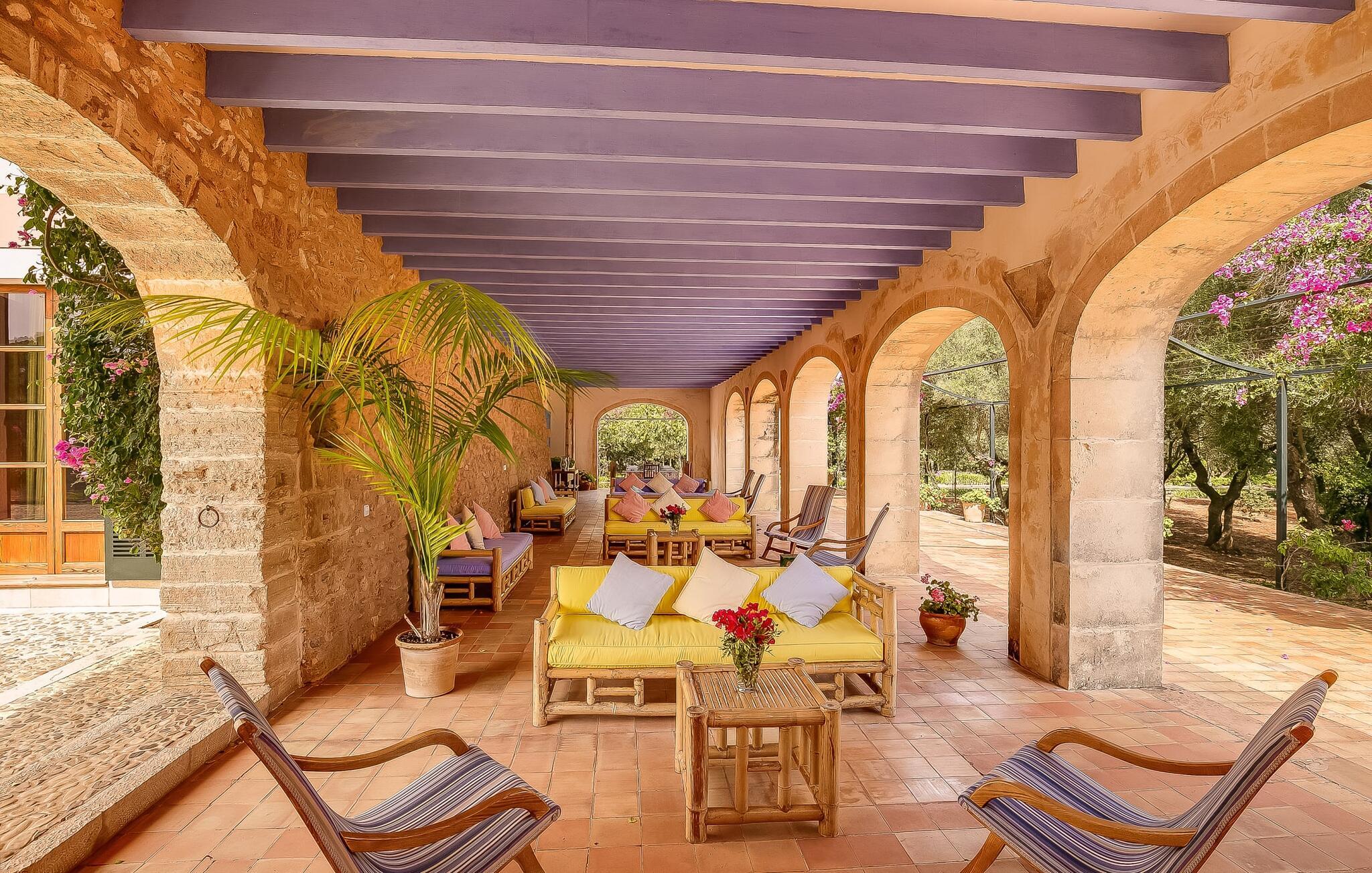 Die familienfreundliche Immobilie beweist ihre Großzügigkeit auf den 2.000 m² Innenwohnfläche, die man angesichts des Außenbereichs erwarten darf. Das feudale Anwesen bietet auf zwei Etagen insgesamt drei Essbereiche, zwei wunderschöne Aufenthaltsräume, eine Bibliothek und ein Musikzimmer mit Flügel auf eine offene Galerie. Die Inneneinrichtung ist eine reizvolle Mischung aus mallorquinischer Gemütlichkeit mit viel Holz und gemütlichen Sitzgelegenheiten einerseits und zeitgenössischen Stilelementen andererseits. Liebevolle Details in der Dekoration vermitteln den Charme eines privaten Boutique-Hotels. Zur Gemütlichkeit tragen zahlreiche Kamine bei, die teils dekorativ, aber auch partyfunktional sind. Lobenswert ist auch, dass es eine voll ausgestattete und rundum gemütliche Küche gibt, die ein wenig an ein Zimmer in einem alten Bauernhaus erinnert, was nostalgisch und charmant ist. Den Gästen stehen acht Doppelzimmer zur Verfügung, die von der Ausstattung her eher an Suiten erinnern. Jedes der vollklimatisierten Zimmer verfügt nicht nur über ein eigenes Badezimmer mit Badewanne, sondern auch über einen eigenen Loungebereich, sodass Gäste wie ein Baby schlafen und sich in ihrem eigenen ruhigen Zimmer vollkommen entspannen können. Apropos Babys: Selbstverständlich stehen zwei Babybetten zur Verfügung, für etwas größere Kinder können optional bis zu zwei Zustellbetten hinzugebucht werden. Aufgrund der Zentralheizung ist dieses tolle Herrenhaus auch das ganze Jahr über für jede Veranstaltung buchbar.