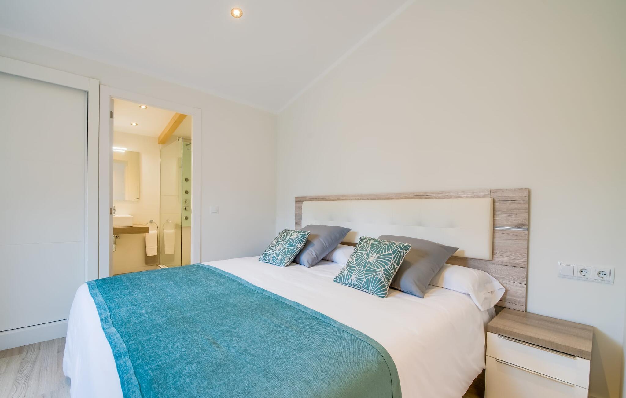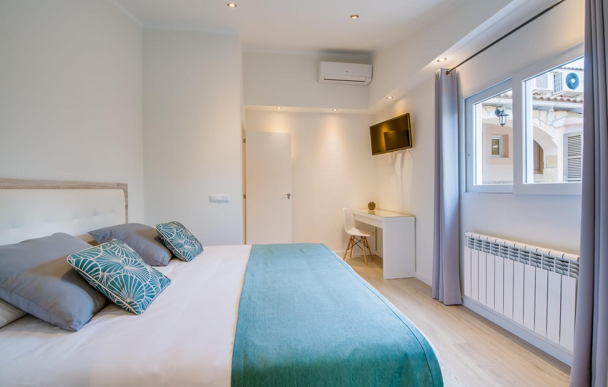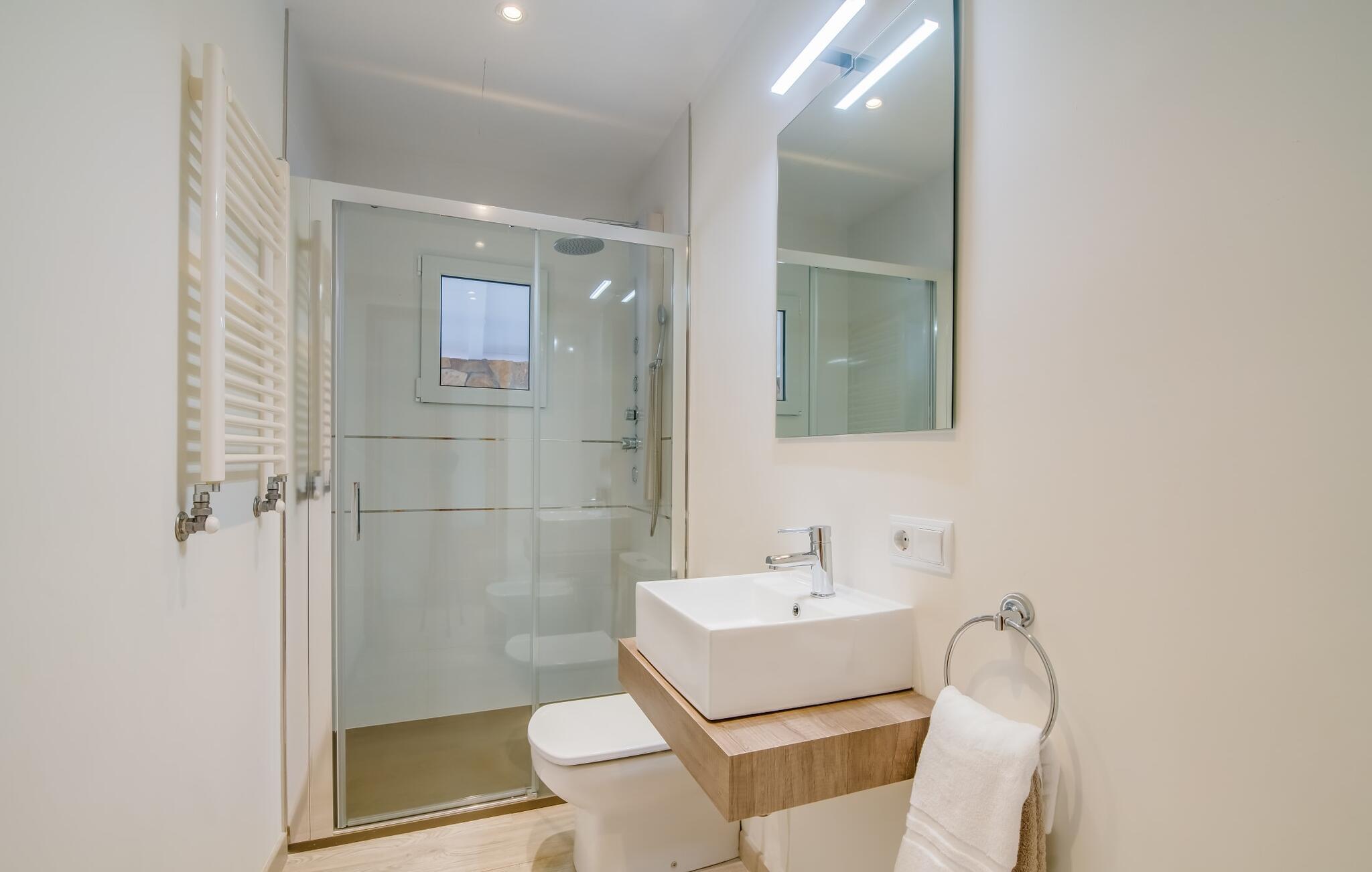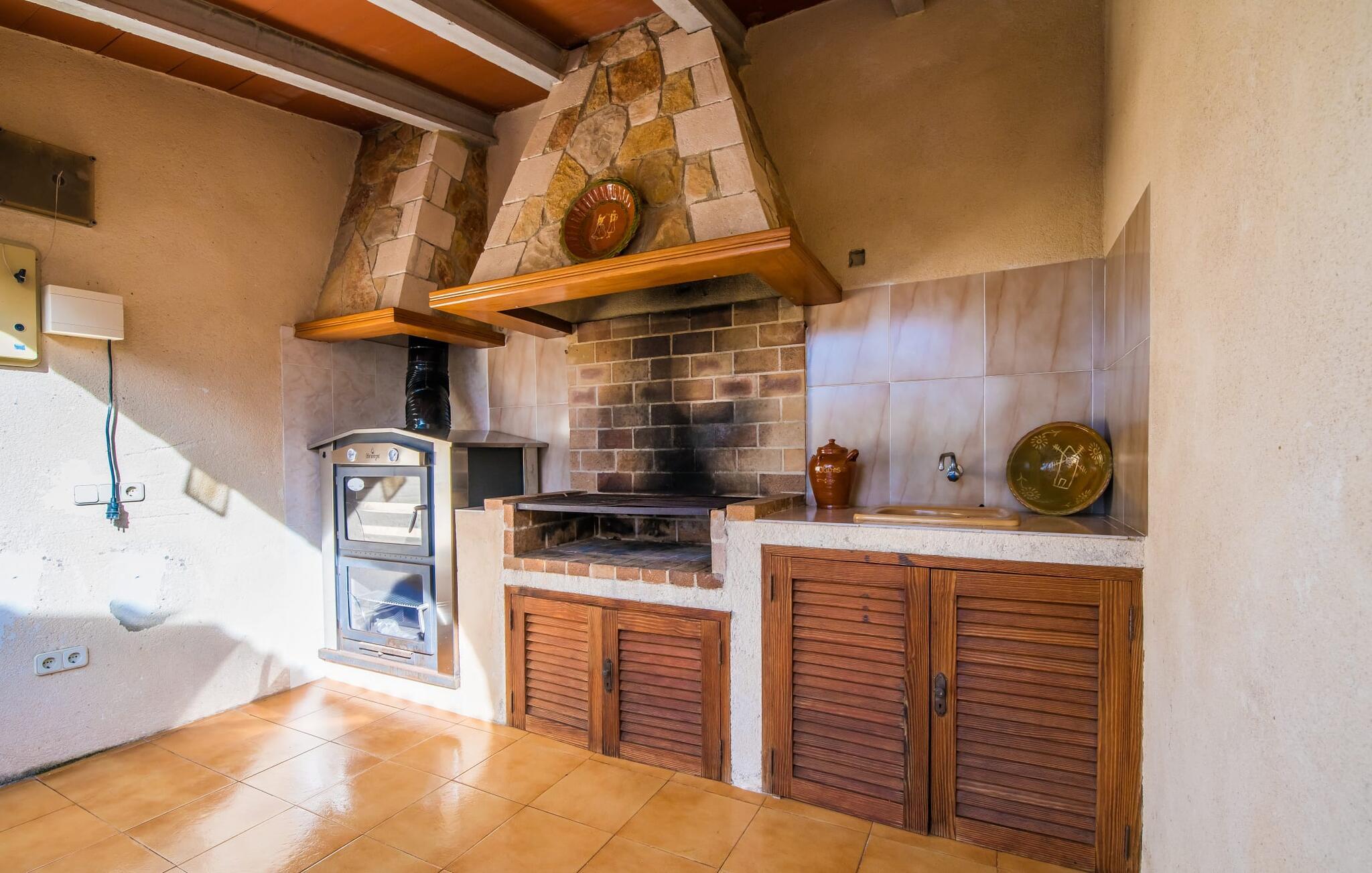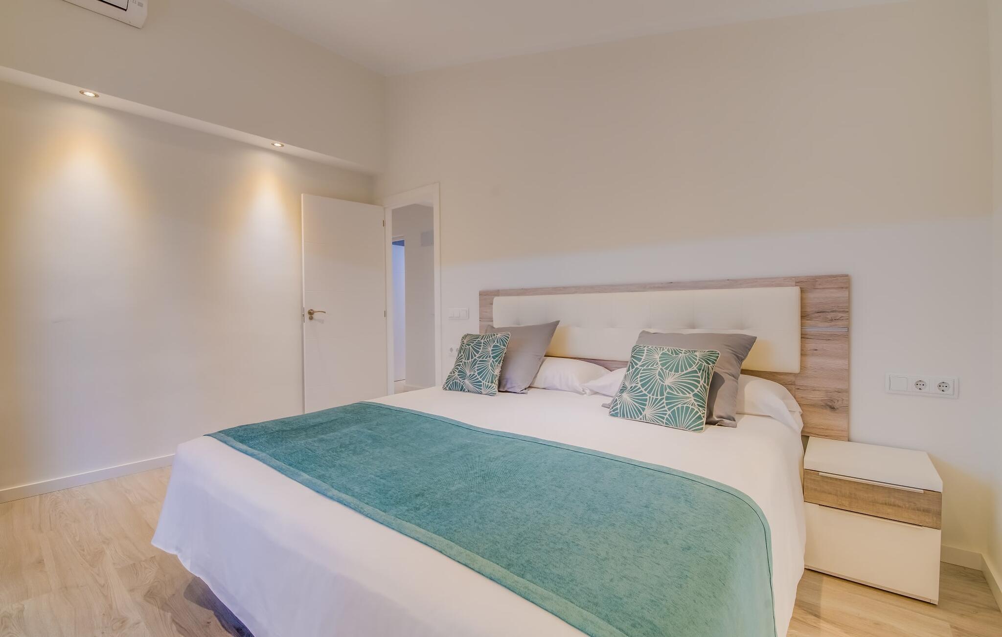 Der Innenbereich des großzügigen Hauses, das sich über Erdgeschoss und Keller erstreckt, ist mit hochmoderner Ausstattung ausgestattet. Große Fenster lassen viel Licht herein, helle Möbel in dezenten Farben sorgen für eine entspannte, friedliche Atmosphäre. Der offene Wohn-/Essbereich bietet neben einer großen Sofalandschaft mit Flachbildfernseher einen großen Esstisch für 12 Personen, der perfekt in die Küche übergeht. Es ist mit modernsten Elektrogeräten ausgestattet und lässt keine Wünsche offen. Insgesamt verfügt Ihre Villa über sechs Schlafzimmer für jeweils zwei Personen sowie fünf Badezimmer, davon drei en-suite. Jedes der Schlafzimmer ist voll klimatisiert und mit einem eigenen Fernseher ausgestattet. Zwei Zimmer befinden sich im Erdgeschoss, die anderen im Untergeschoss mit Zugang zum Garten. Die luxuriösen, tageslichtdurchfluteten Badezimmer verfügen über begehbare Duschen, moderne Waschbecken und große Spiegel. In einem der Badezimmer gibt es auch eine Badewanne. Das puristische Design, die Verarbeitung hochwertiger Materialien und der hohe Komfort machen die Villa „Son Mesquida de Inca“ zu einem echten Schmuckstück, das Sie zum Stammgast werden lässt.