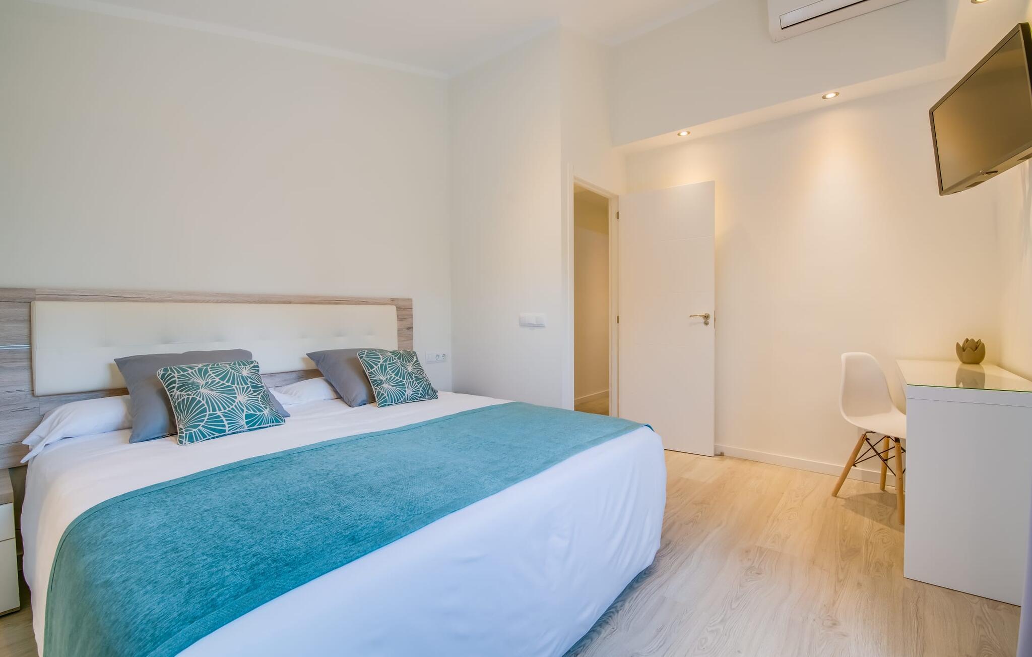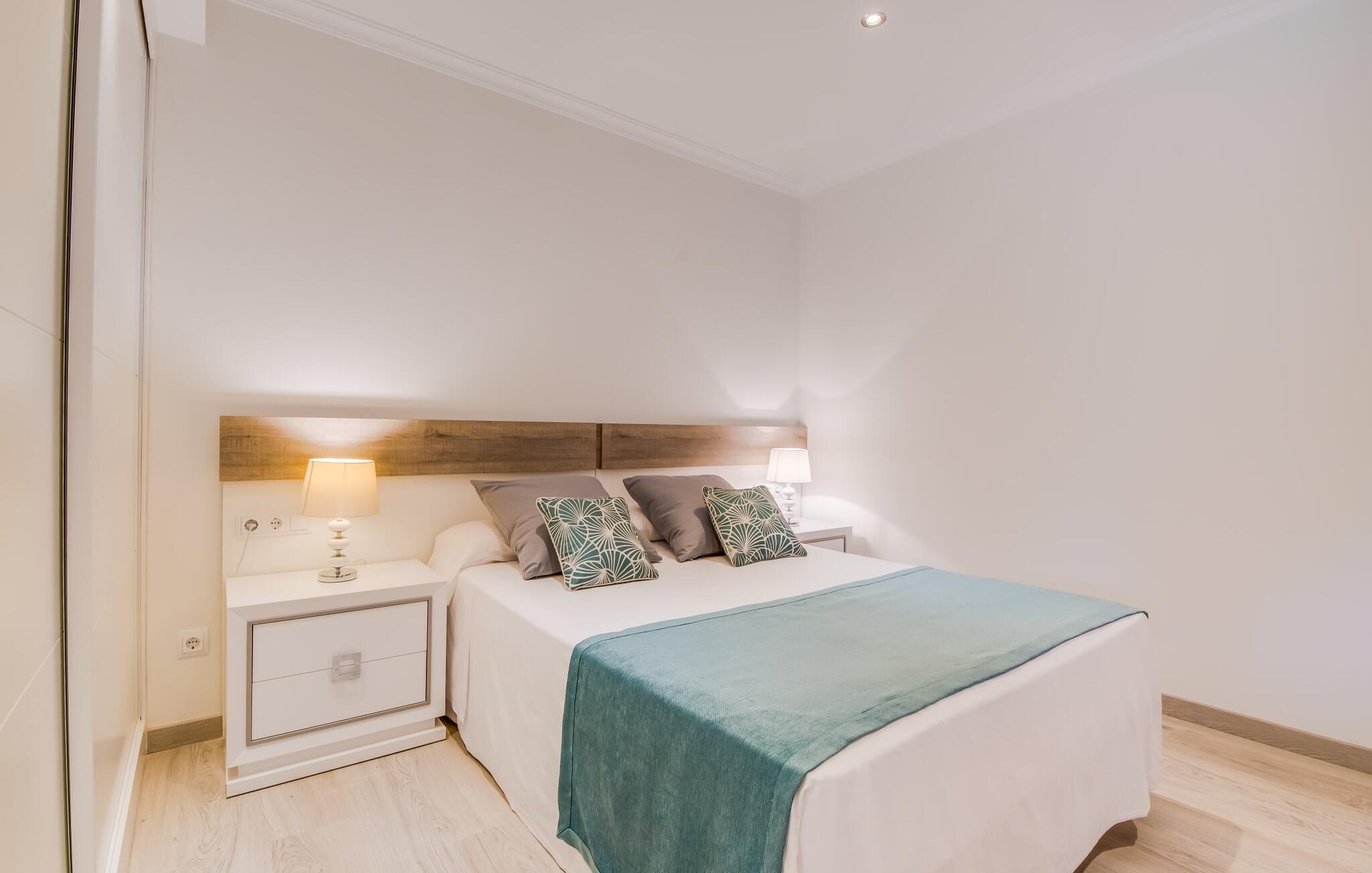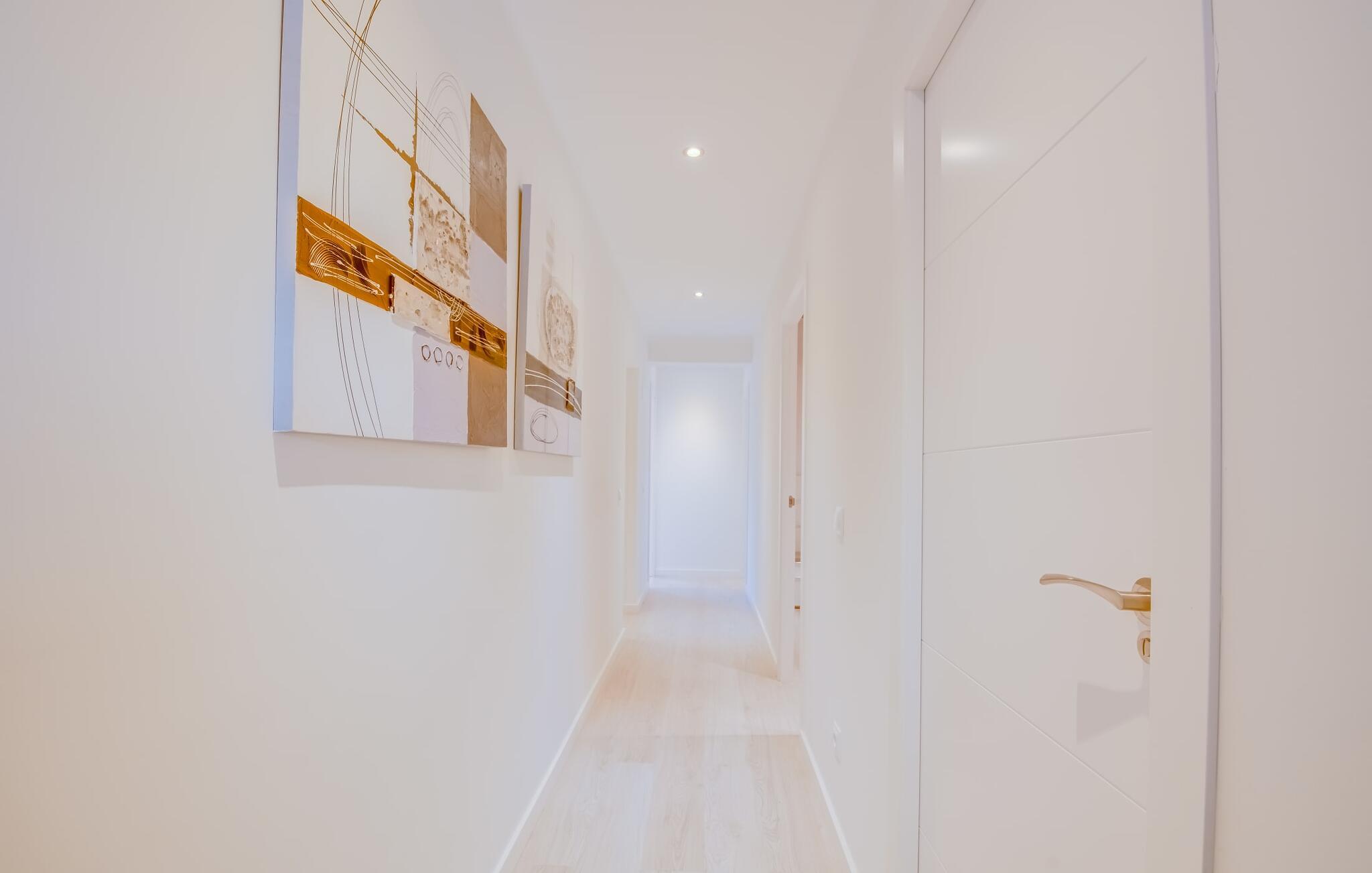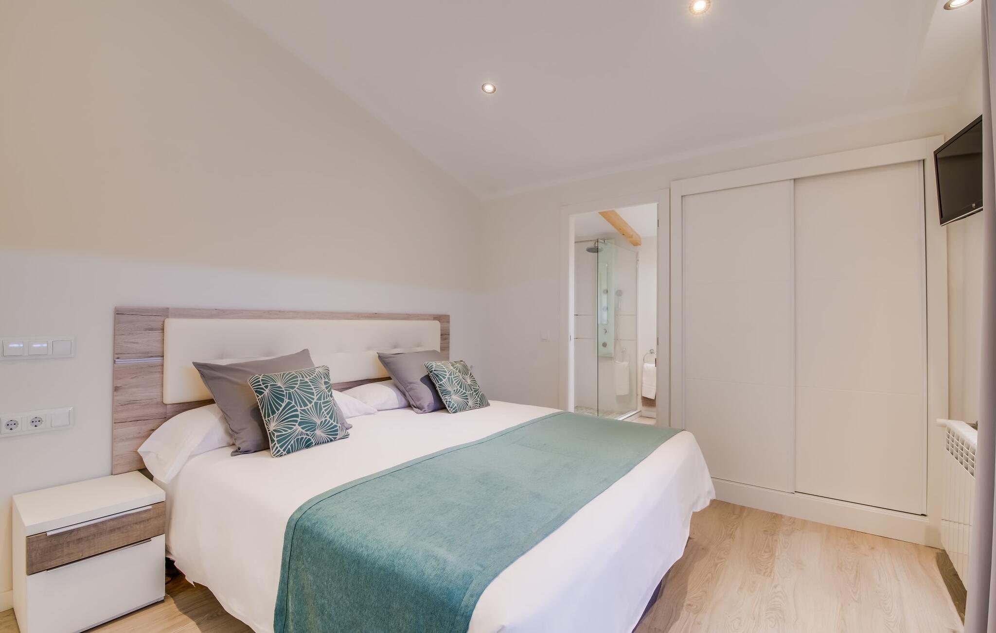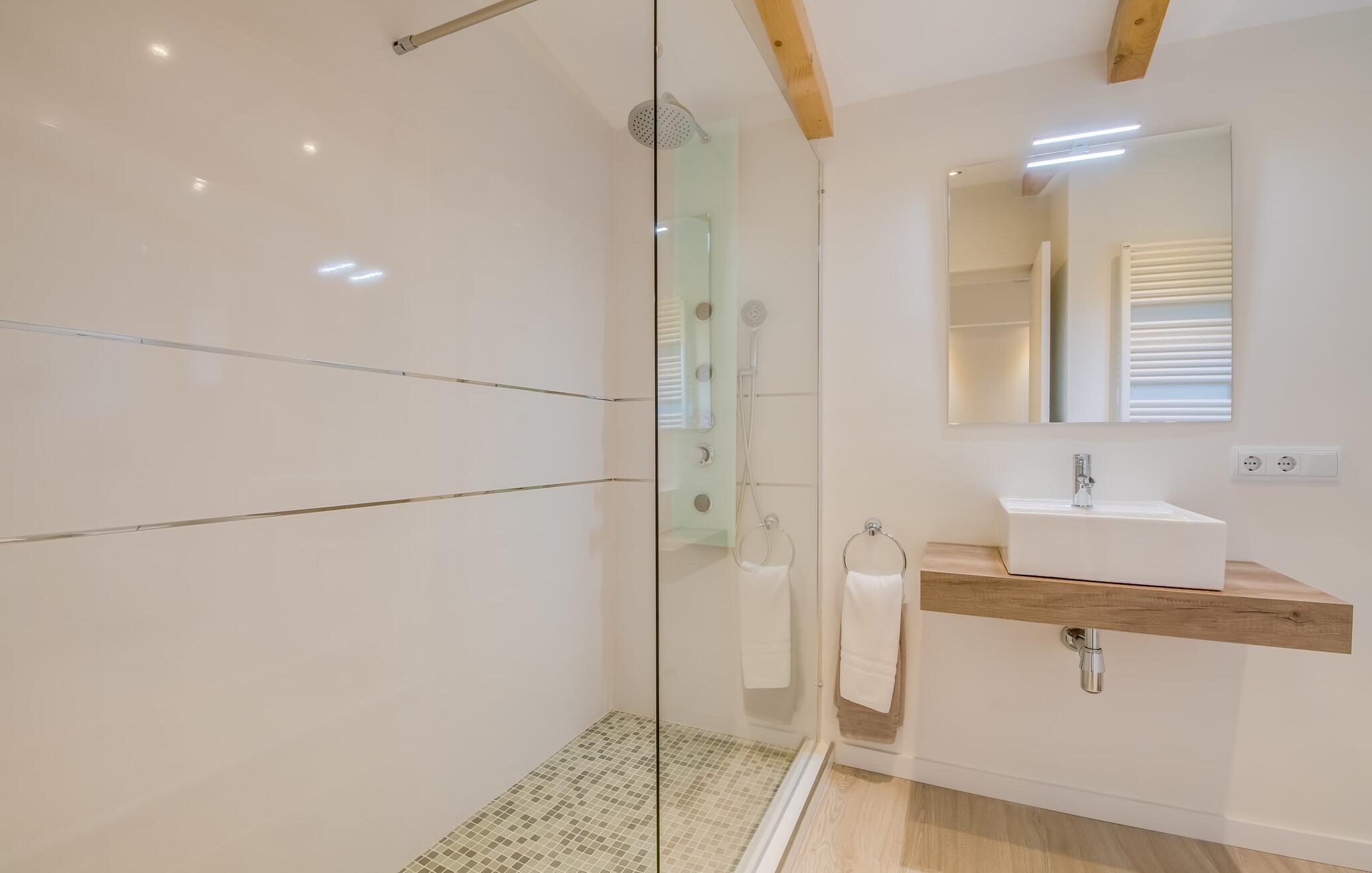 Der Innenbereich des großzügigen Hauses, das sich über Erdgeschoss und Keller erstreckt, ist mit hochmoderner Ausstattung ausgestattet. Große Fenster lassen viel Licht herein, helle Möbel in dezenten Farben sorgen für eine entspannte, friedliche Atmosphäre. Der offene Wohn-/Essbereich bietet neben einer großen Sofalandschaft mit Flachbildfernseher einen großen Esstisch für 12 Personen, der perfekt in die Küche übergeht. Es ist mit modernsten Elektrogeräten ausgestattet und lässt keine Wünsche offen. Insgesamt verfügt Ihre Villa über sechs Schlafzimmer für jeweils zwei Personen sowie fünf Badezimmer, davon drei en-suite. Jedes der Schlafzimmer ist voll klimatisiert und mit einem eigenen Fernseher ausgestattet. Zwei Zimmer befinden sich im Erdgeschoss, die anderen im Untergeschoss mit Zugang zum Garten. Die luxuriösen, tageslichtdurchfluteten Badezimmer verfügen über begehbare Duschen, moderne Waschbecken und große Spiegel. In einem der Badezimmer gibt es auch eine Badewanne. Das puristische Design, die Verarbeitung hochwertiger Materialien und der hohe Komfort machen die Villa „Son Mesquida de Inca“ zu einem echten Schmuckstück, das Sie zum Stammgast werden lässt.