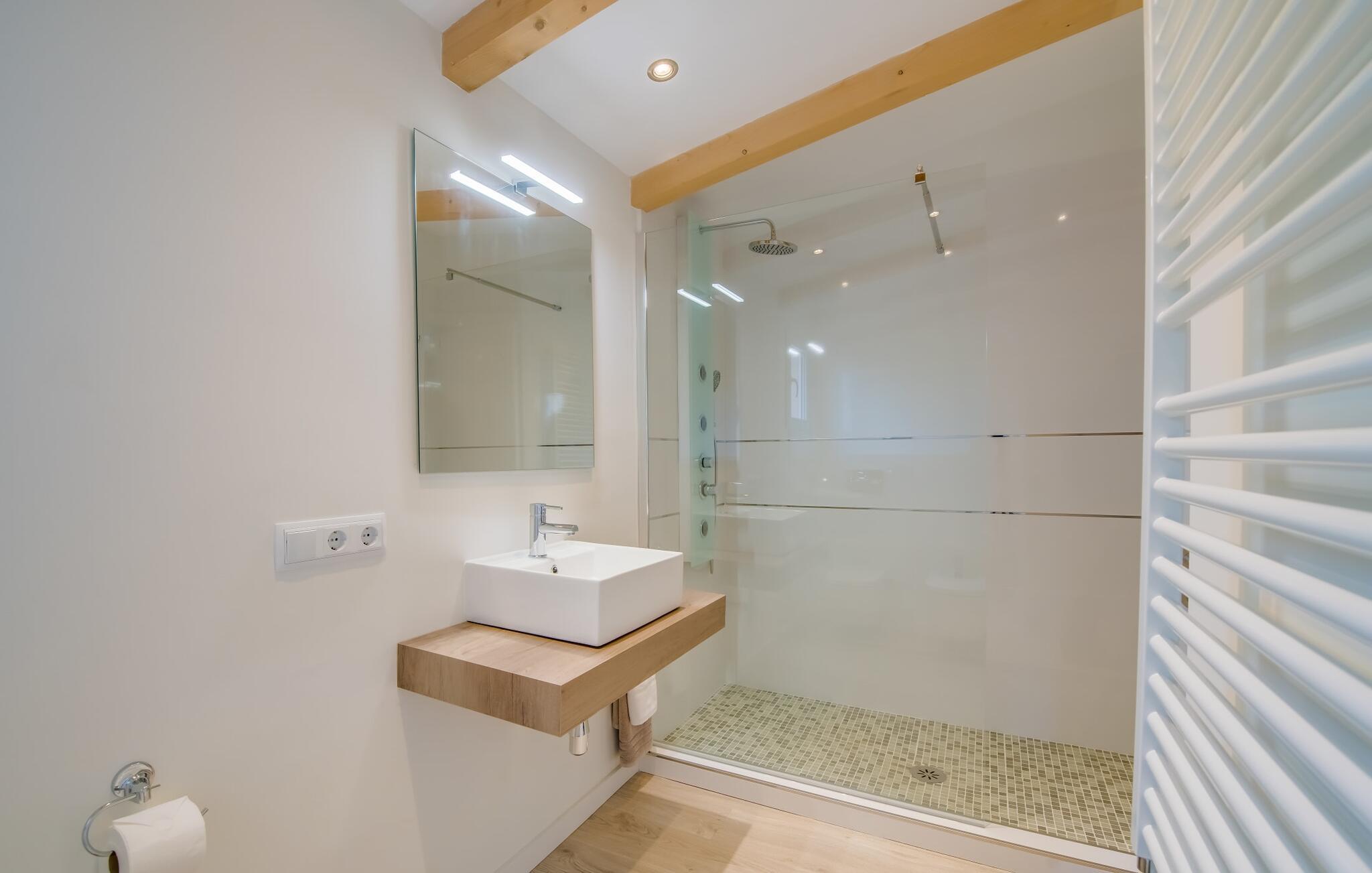 - WC mit warmem und kaltem Wasser, Dusche und Badewanne