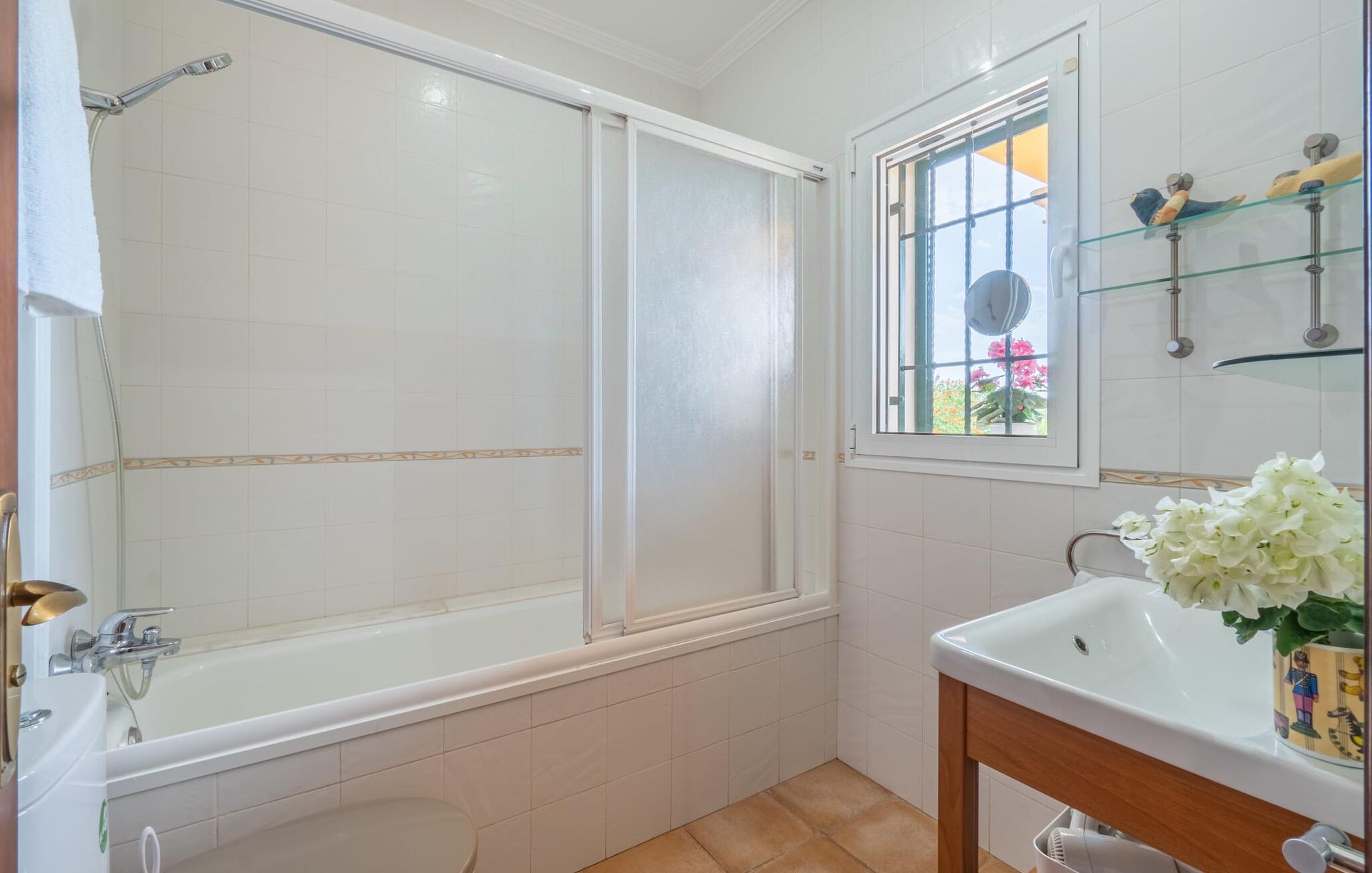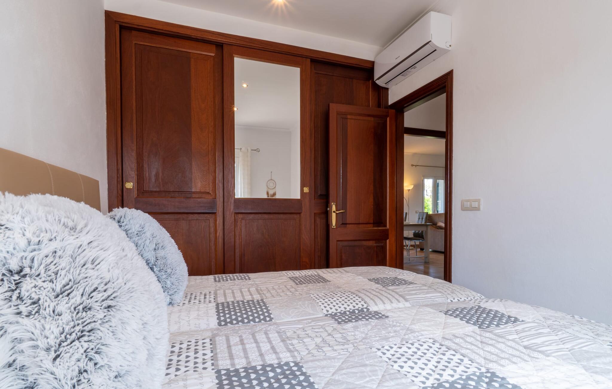 Auch von innen ist das charmante Bauernhaus in der mallorquinischen Landschaft kinder- und familienfreundlich – allein schon durch seine ebenerdige Bauweise. Alle Räume erreichen Sie bequem ohne Treppen. Da wären zum Beispiel der elegant eingerichtete, offene Wohn- und Essbereich mit einladendem Sofa, TV und Kamin für kühlere Abende, die gut ausgestattete Küche gleich nebenan und die beiden geschmackvoll eingerichteten Doppelschlafzimmer. Diese haben durch bodentiefe Fenster direkten Zugang nach draußen und sind zudem mit großen Kleiderschränken für Ihre Urlaubsgarderobe ausgestattet. Ein modernes Badezimmer rundet den Wohnkomfort dieses mit hellen, freundlichen Farben und ausgewählten Wohnaccessoires gestalteten Bauernhauses auf Mallorca ab.