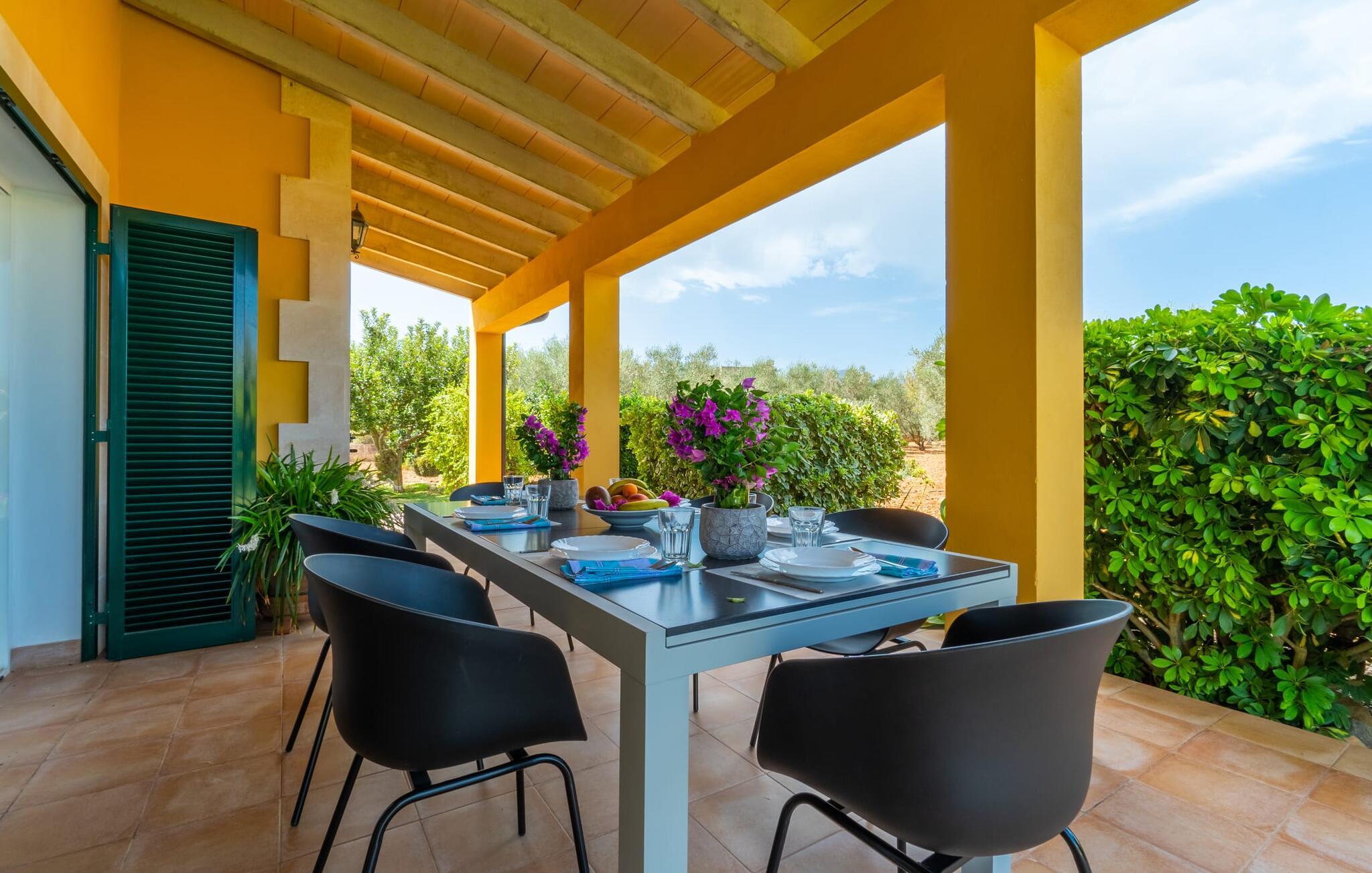 Wenn Sie auf der Suche nach einem familienfreundlichen Bauernhaus in ländlicher Lage auf Mallorca sind, ist „Son Serra“ die richtige Wahl. Das hübsche Häuschen mit den Säulen am Eingang und einem Parkplatz ist von einem gepflegten Garten mit Rasenflächen und Obstbäumen umgeben.