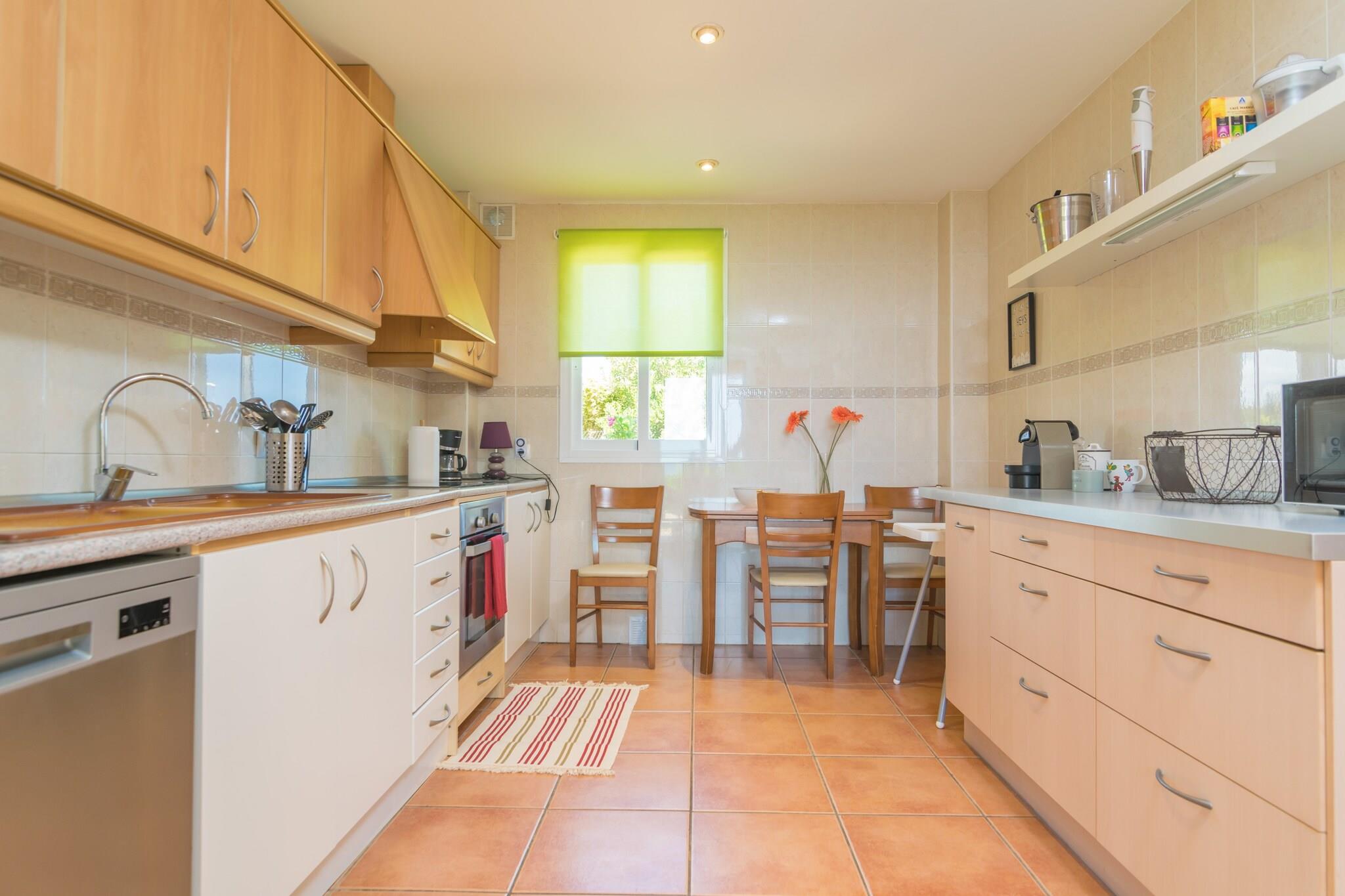 Wohnzimmer, Küche(Kochherd, Kaffeemaschine, Backofen), Schlafzimmer(2x Einzelbett), Schlafzimmer(Einzelbett, Einzelbett), Schlafzimmer(Einzelbett, Einzelbett), Schlafzimmer(Einzelbett, Einzelbett), Badezimmer, Badezimmer, Mikrowelle, Spülmaschine, Kühl-/Gefrierkombination, Badewanne, Dusche, Waschbecken, Waschbecken, Toilette, Toilette, Heizung, Heizung, Heizung, Heizung, Garten, Gartenmöbel, 6x Liegen, Grill, 2x Sonnenschirm, Pool, Kinderbett, Hochstuhl