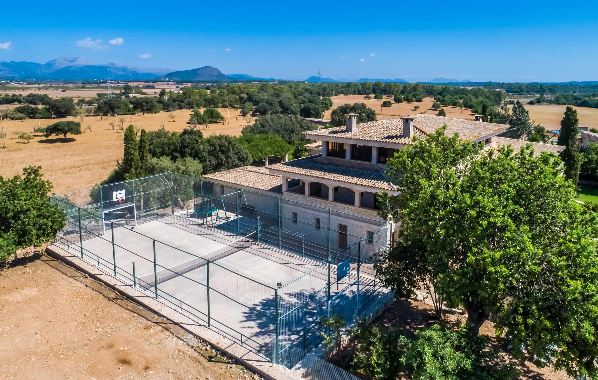 In „Son Tomasset“, einer beeindruckenden, mehrstöckigen, ländlichen Villa mit dem Tramuntana-Gebirge im Hintergrund, wohnen Sie in einem gut geschützten Anwesen auf 36 ha Grundstück mit weitläufigen Rasenflächen, Orangenbäumen, einem Pool und einem Außenbad . Ihr Ferienhaus verfügt außerdem über zahlreiche Terrassen, die auf allen Ebenen eine hervorragende Aussicht bieten. Das rustikale Anwesen liegt 1,5 km vom Dorf Costitx entfernt und verfügt über ausreichend Parkplätze für mehrere Fahrzeuge. Von der spektakulär ausgestatteten Terrasse gelangt man in einen wunderschönen Garten mit Pool, umgeben von bequemen Sonnenliegen – hier können Sie Momente purer Entspannung genießen! Am anderen Ende der Terrasse finden Sie eine Veranda mit Tischtennisplatte und Blick auf die Landschaft und den Berg Serra de Tramuntana.