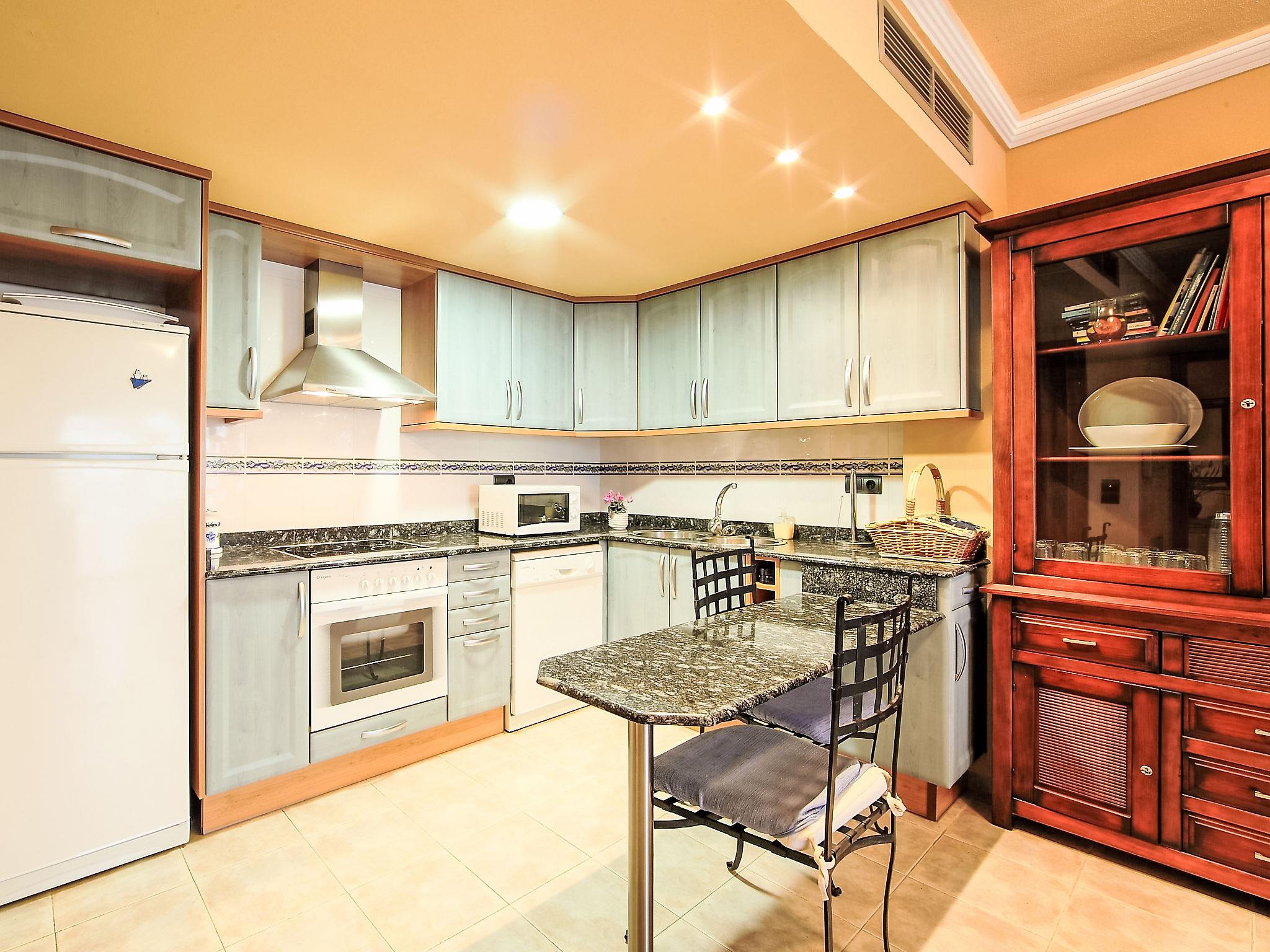 "Delicias B", 3-Zimmer-Wohnung 70 m2 im 1. Stock. Komfortabel und schön eingerichtet: Wohn-/Esszimmer mit Digital-TV, Klimaanlage und Warmluftheizung. Ausgang zum Balkon. 1 Zimmer mit 1 franz. Bett (1 x 135 cm, Länge 190 cm), Bad/Bidet/WC, Klimaanlage und Warmluftheizung. 1 Zimmer mit 2 Betten (90 cm, Länge 190 cm), Klimaanlage und Warmluftheizung. Offene Küche (Backofen, Geschirrspüler, 4 Glaskeramikplatten, Mikrowelle, Tiefkühler, elektrische Kaffeemaschine). Ausgang zum Balkon. Dusche/WC. Balkon 17 m2. Terrassenmöbel. Schöne Sicht. Zur Verfügung: Waschmaschine, Bügeleisen. Internet (WLAN, gratis). Parkplatz Nr. 10. HUTTE000263 // Reg. Nr.: ESFCTU00004301000053329800000000000000000HUTTE0002637
