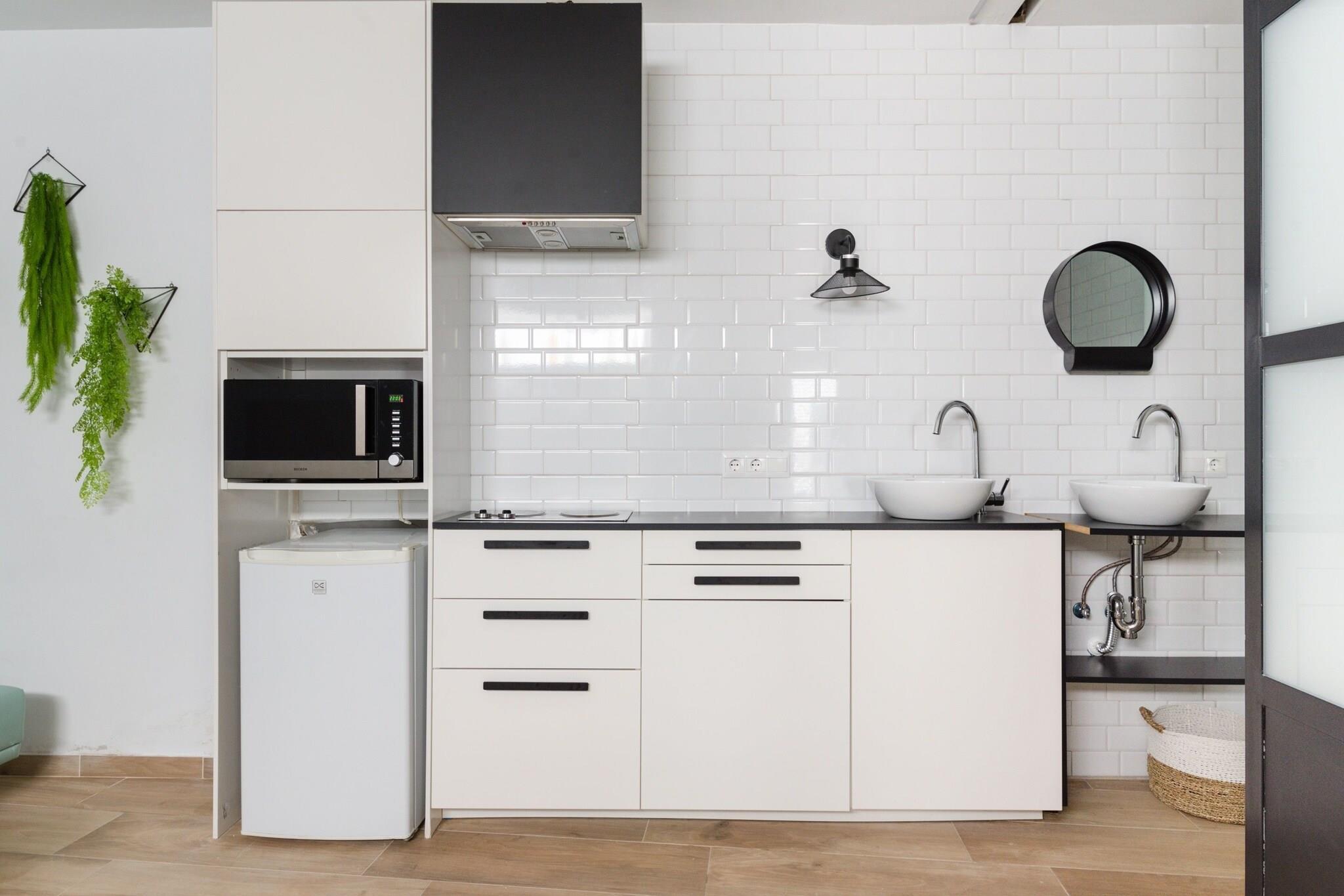 Parterre: (offene Küche(Kochplatte(2 Kochplatten), Kombi-Mikrowelle, Kühlschrank), Wohn/Esszimmer(Schlafcouch 1 Pers., TV, Esstisch), Schlafzimmer mit Badezimmer(Doppelbett, Dusche, Waschbecken, Toilette), Türkisches Dampfbad(Sauna, Toilette), Waschmaschine, Klimaanlage) In der 1. Etage: (offene Küche(Kochplatte, Kombi-Mikrowelle, Kühlschrank), Wohn/Esszimmer(Schlafcouch 1 Pers., TV, Esstisch), Schlafzimmer mit Badezimmer(Doppelbett, Badewanne mit Dusche, Waschbecken, Toilette), Gemeinschaftsraum(Sitzecke, Wasserkocher, Kaffeemaschine)) In der 2. Etage: (Sitzecke, Infrarotdusche, Terrasse(alleinige Nutzung), Dachterasse, Grill)