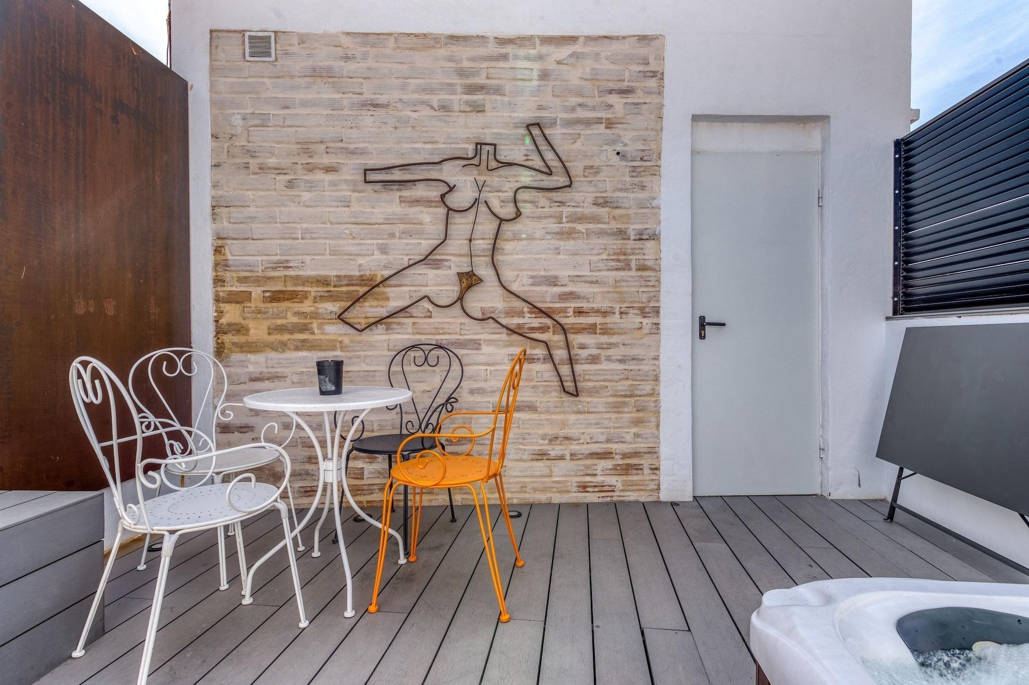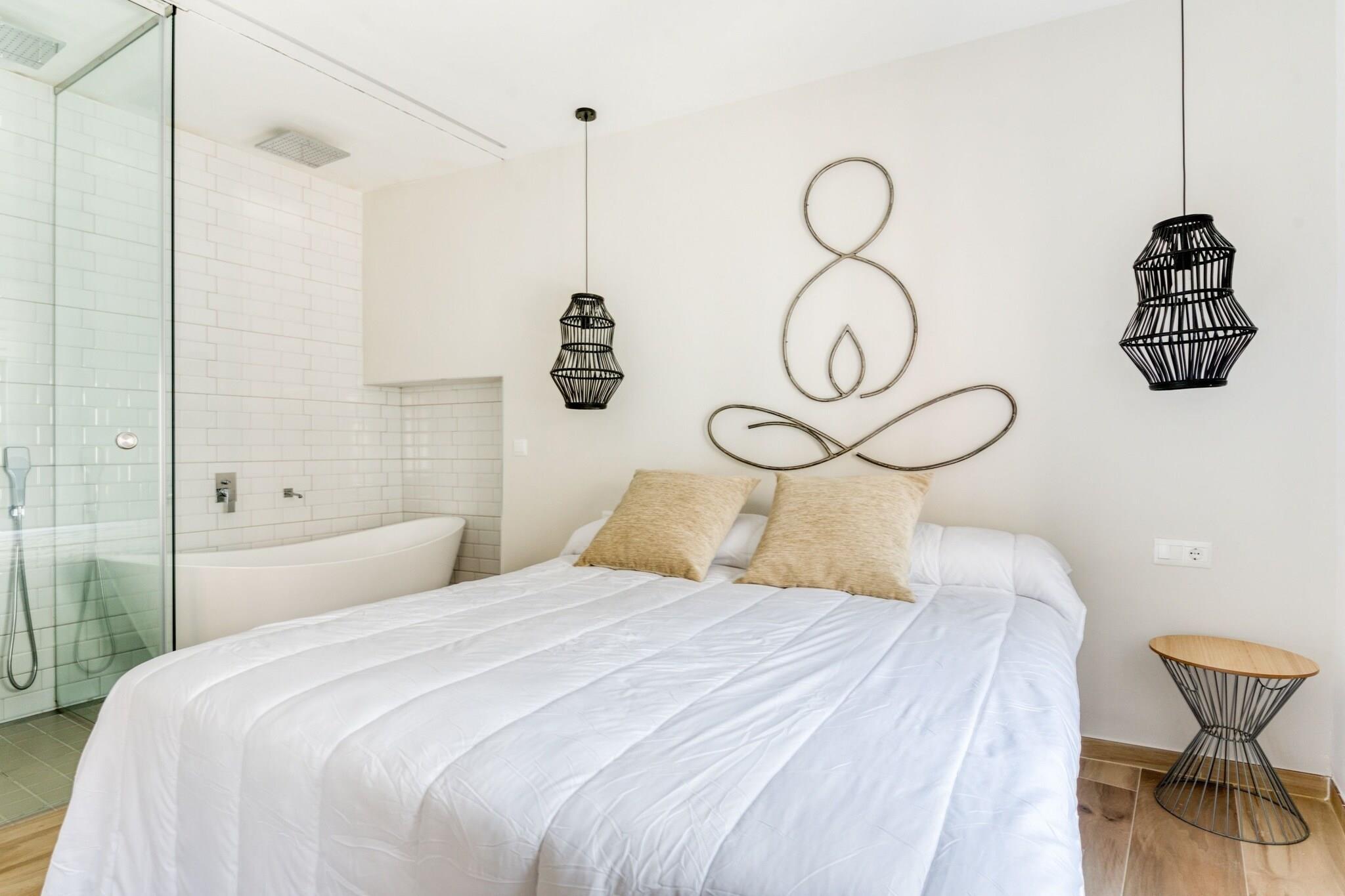 'Casa Arrels' besteht aus 2 unabhängigen Wohnungen, die sich gemeinsame Räume teilen. Für alle, die einen luxuriösen Aufenthalt suchen, um dem hektischen Alltag zu entfliehen, ist dieses Familienferienhaus in Tavernes de la Valldigna die perfekte Wahl. Das Haus verfügt über eine schöne Sauna und eine eigene Terrasse und ist ideal für 2 Familien. Das Zentrum von Tavernes de la Valldigna ist 500 m entfernt. Der Strand am Meer ist 6,7 km vom Haus entfernt. Es sind 2 Terrassen vorhanden. Im Erdgeschoss finden Sie eine doppelte Regendusche, eine voll ausgestattete Küche, ein Schlafsofa und ein Hammam mit einer zusätzlichen Badewanne. Die zweite Etage verfügt über einen Chill-out-Bereich mit Grill, Chromotherapie-Beleuchtung und perfektem Blick auf die Altstadt und die Berge von Tavernes. Es gibt eine Klimaanlage zur Kühlung und eines der Schlafzimmer hat ein römisches Bad.