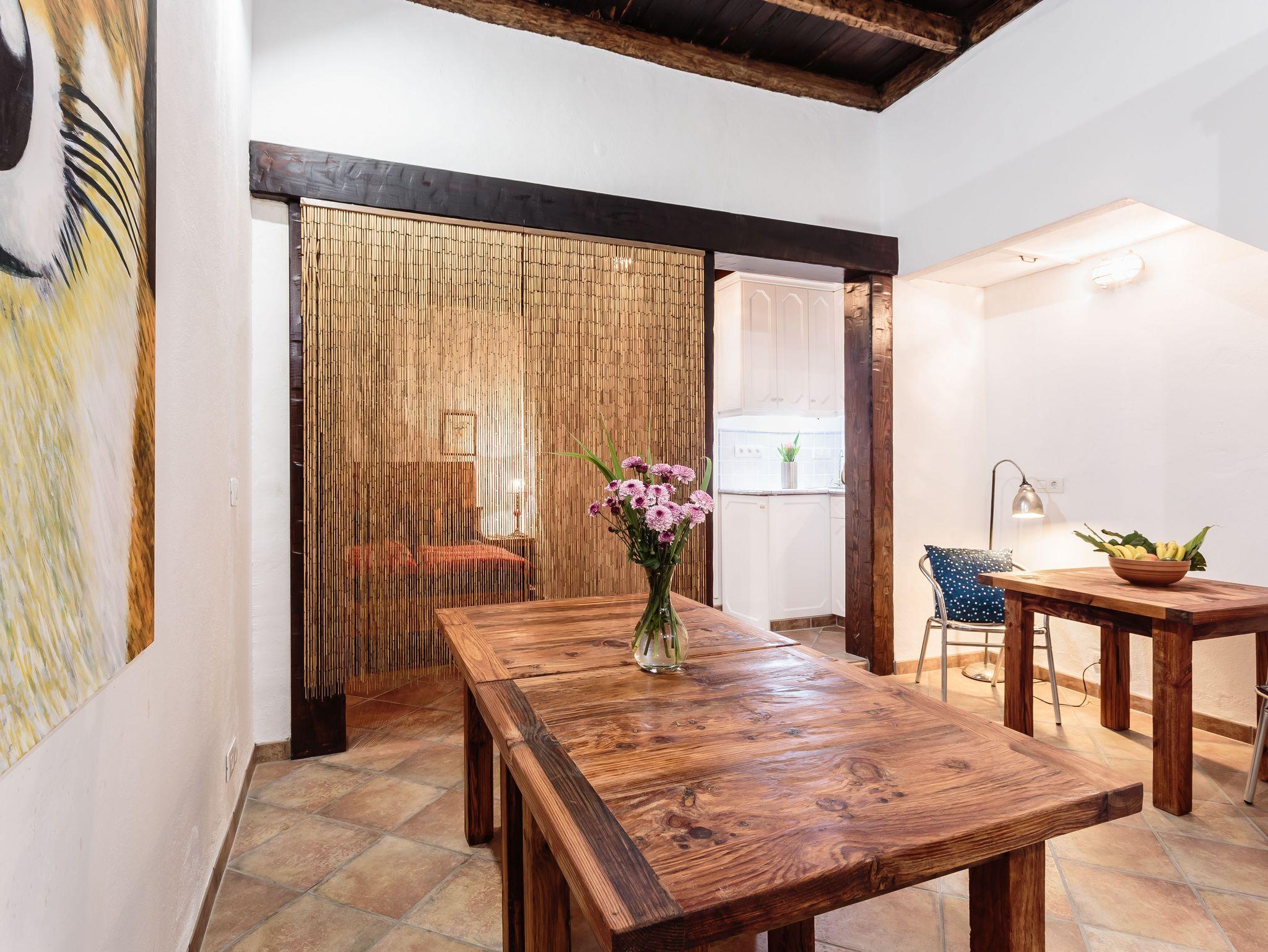 Tageslicht erhält das Studio nur durch ein kleines Fenster über der Tür, sowie Glasausschnitte in der authentischen Holzeingangstür, daher muss der Raum ergänzend meist auch tagsüber beleuchtet werden. Das Studio eignet sich am besten für Gäste, die viel Zeit im Freien verbringen möchten. Das fällt wegen der Strandnähe allerdings auch nicht schwer.
