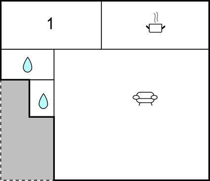 Badezimmer 6m2 (nr. 1) - WC. Warmes und kaltes Wasser. Badewanne