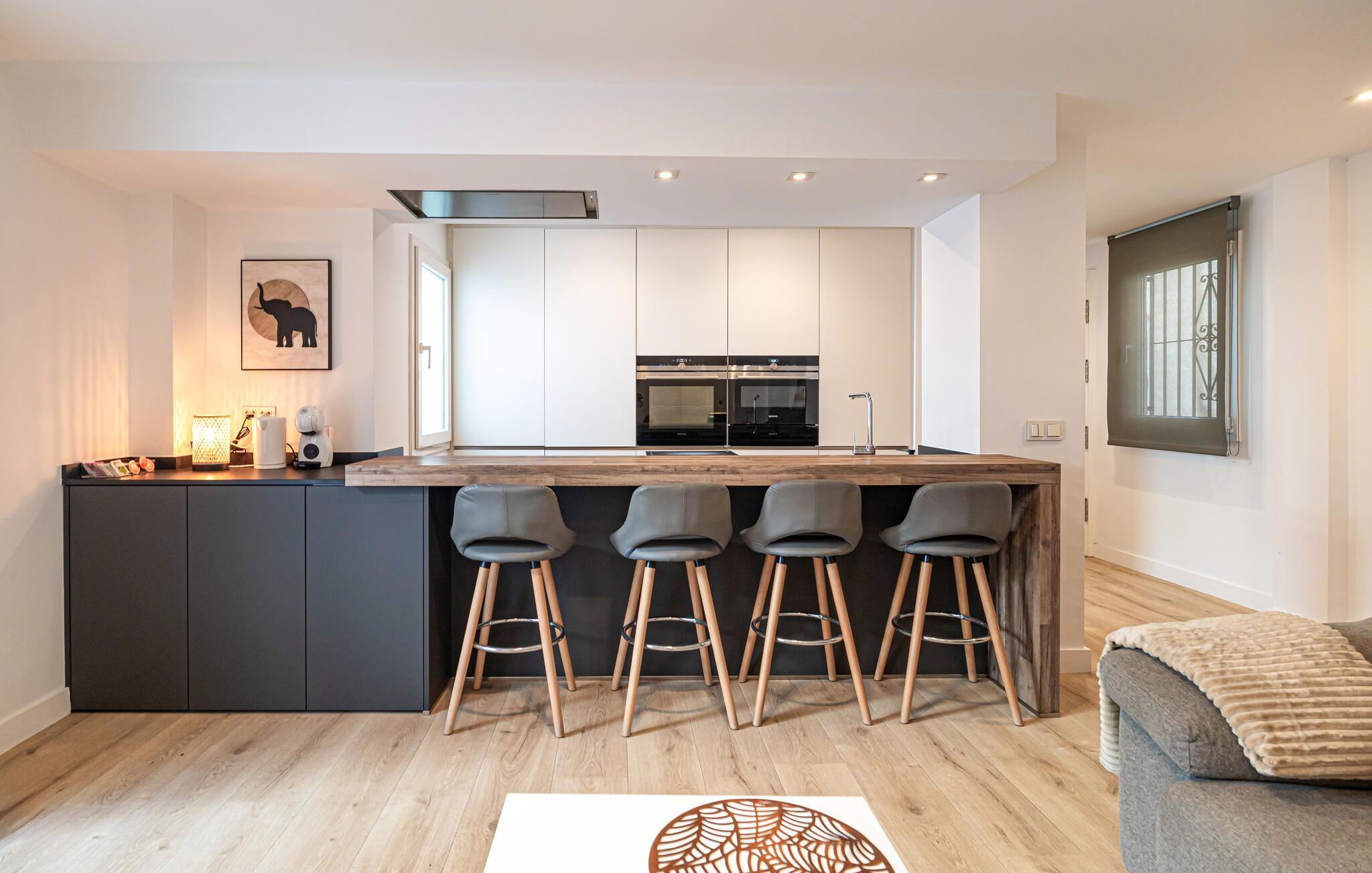 Diese geräumige und geschmackvoll eingerichtete Ferienwohnung liegt nur wenige Schritte vom Sandstrand entfernt und bietet Ihnen ein behagliches Refugium, während Sie Urlaub am Meer mit reizvollen Ausflügen kombinieren. Bereiten Sie mediterrane Mahlzeiten zu und planen Sie Ihre Unternehmungen bei entspannten Mahlzeiten in angenehmer Atmosphäre. Nach einem erlebnisreichen Tag können Sie es sich für einen Filmabend auf dem bequemen Sofa gemütlich machen.